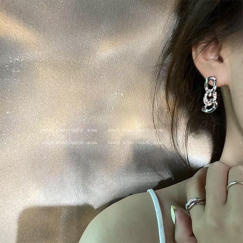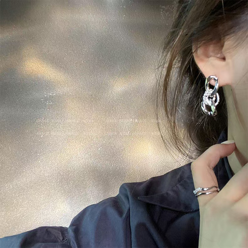 금속 체인 더블 링 귀걸이 디자인 센스 새로운 올 매치 귀걸이 여성용 롱 라이트 럭셔리 귀걸이 가을과 겨울 높은 감각스토어 가기