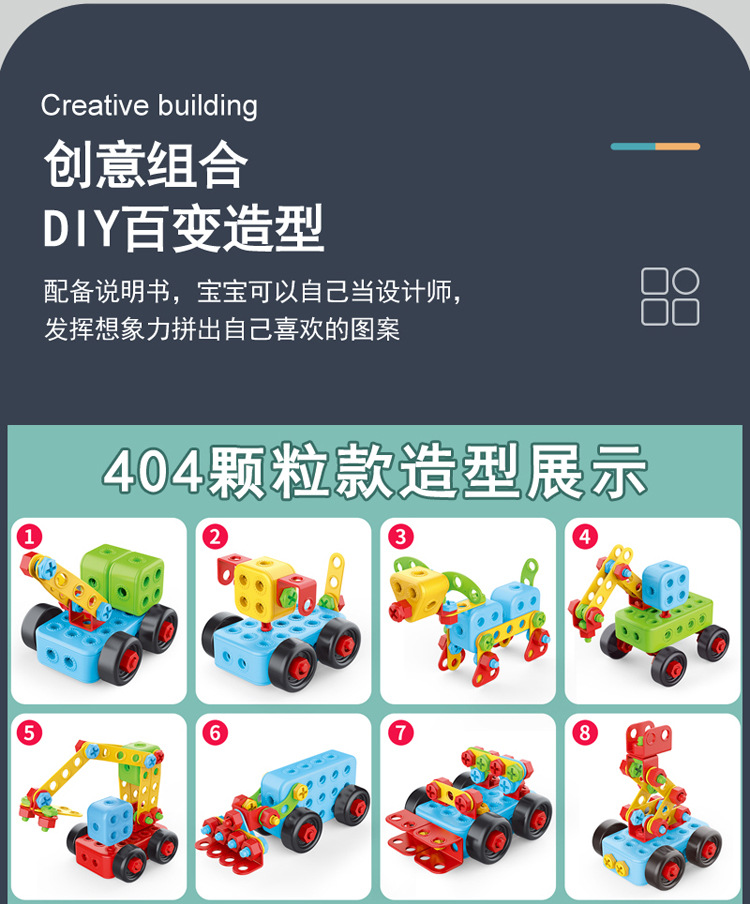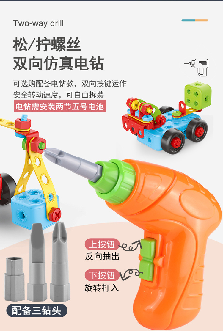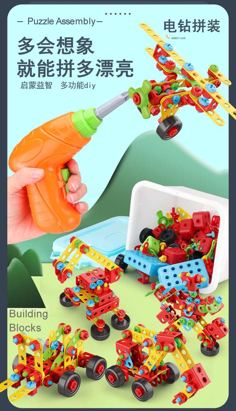 맞춤형 어린이 나사 장난감 전기 드릴 도구 상자 소년 교육 빌딩 블록 너트 조립 장난감 Amazon