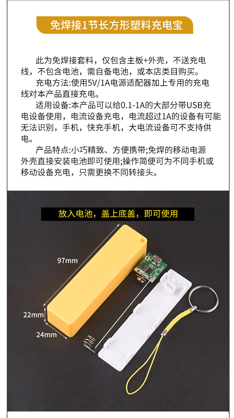 • 1节黄色塑壳+安卓口电路板+吊绳
