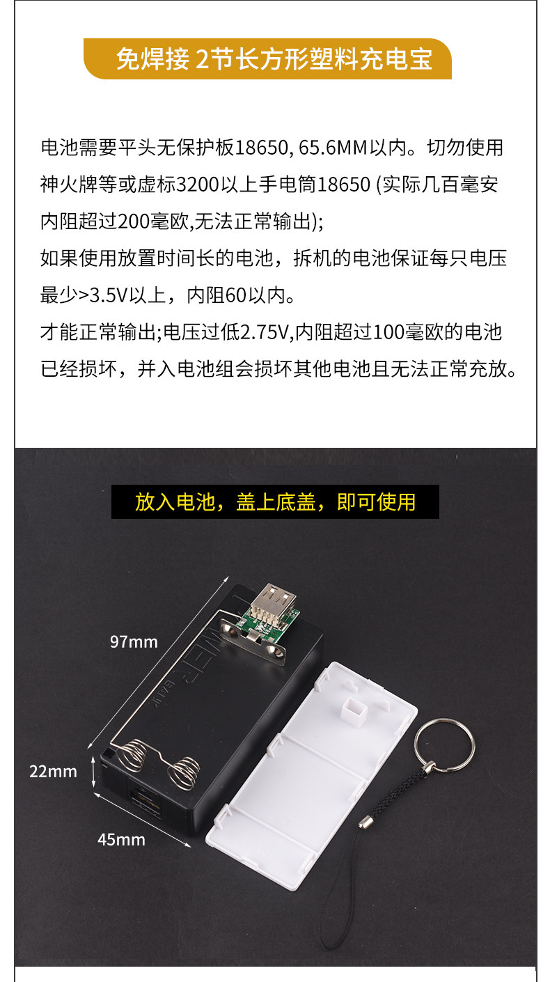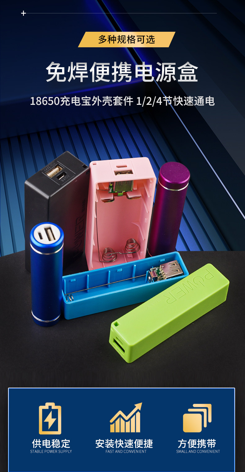 免焊便携移动电源盒1/2节18650充电宝外壳套件 铝壳升压板diy