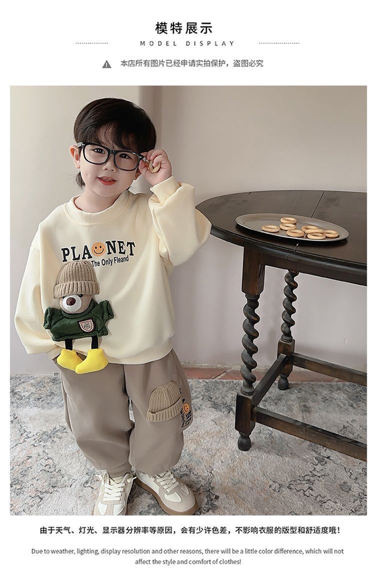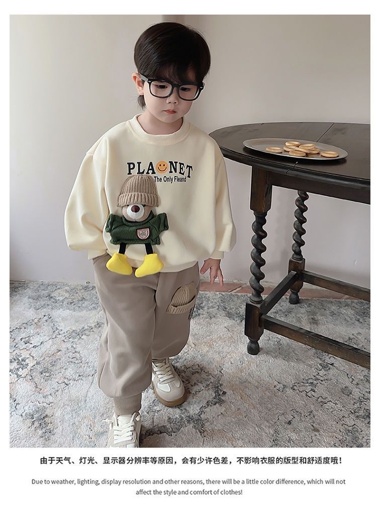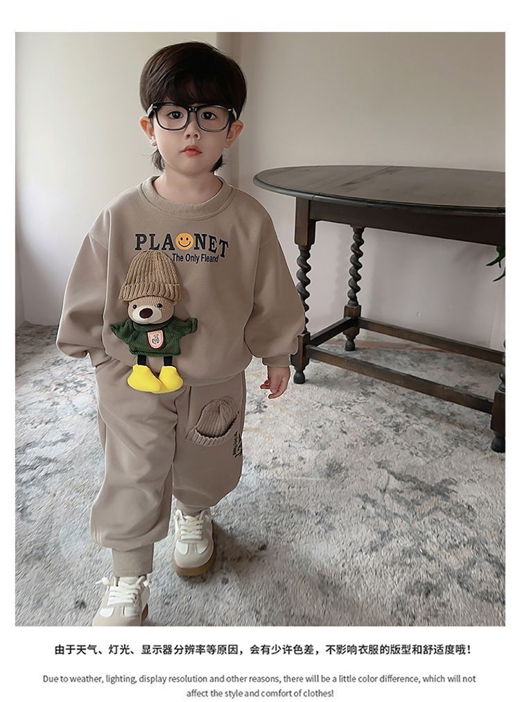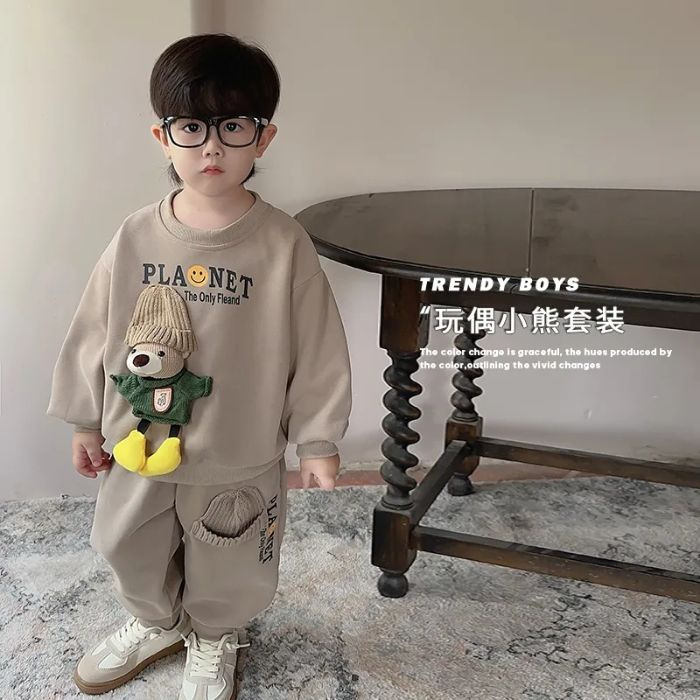 세트 남성 아동복 가을 폭발 만화 곰 투피스 2024 새로운 어린이 외국식 튀긴 거리 세트 잘 생겼다