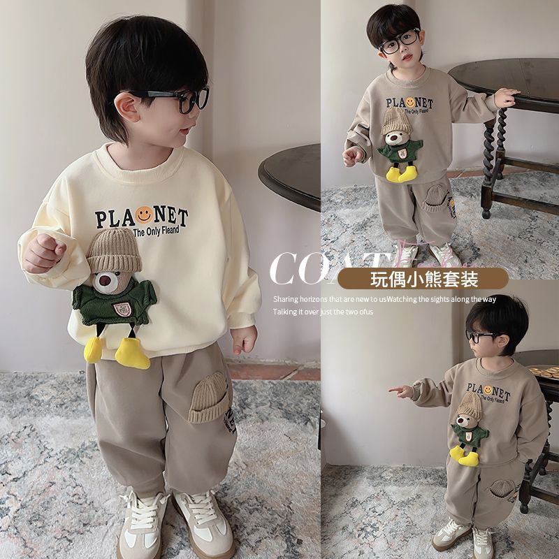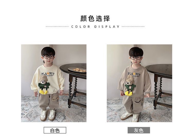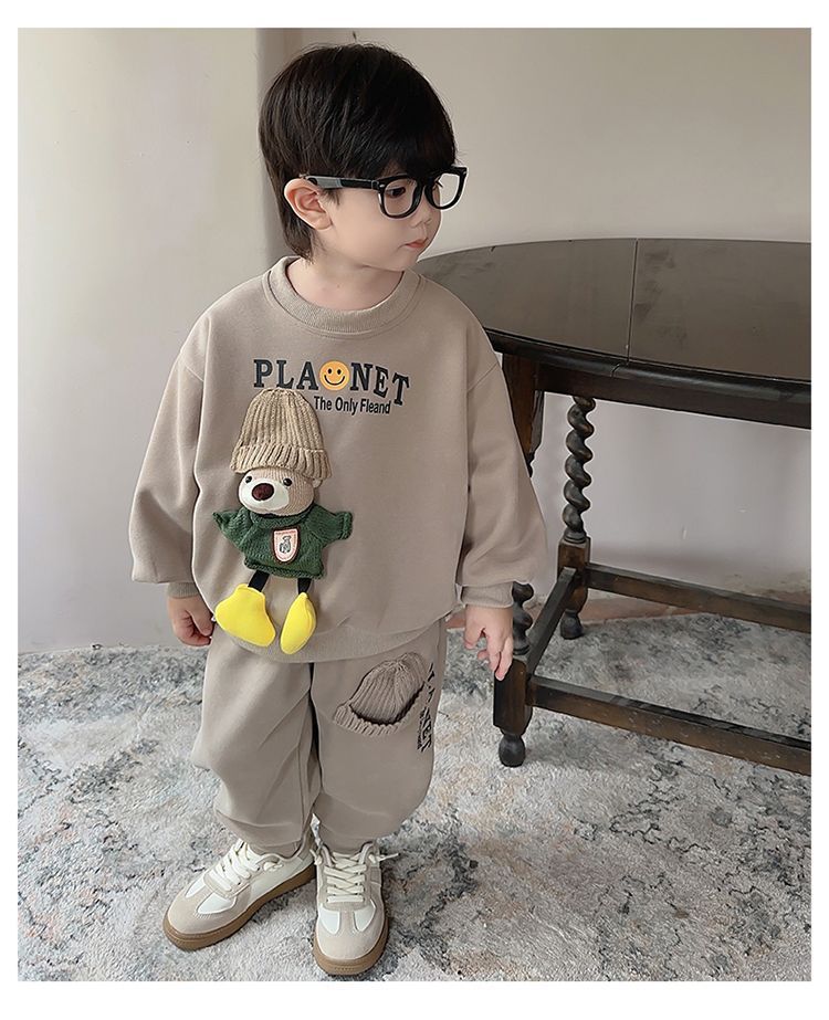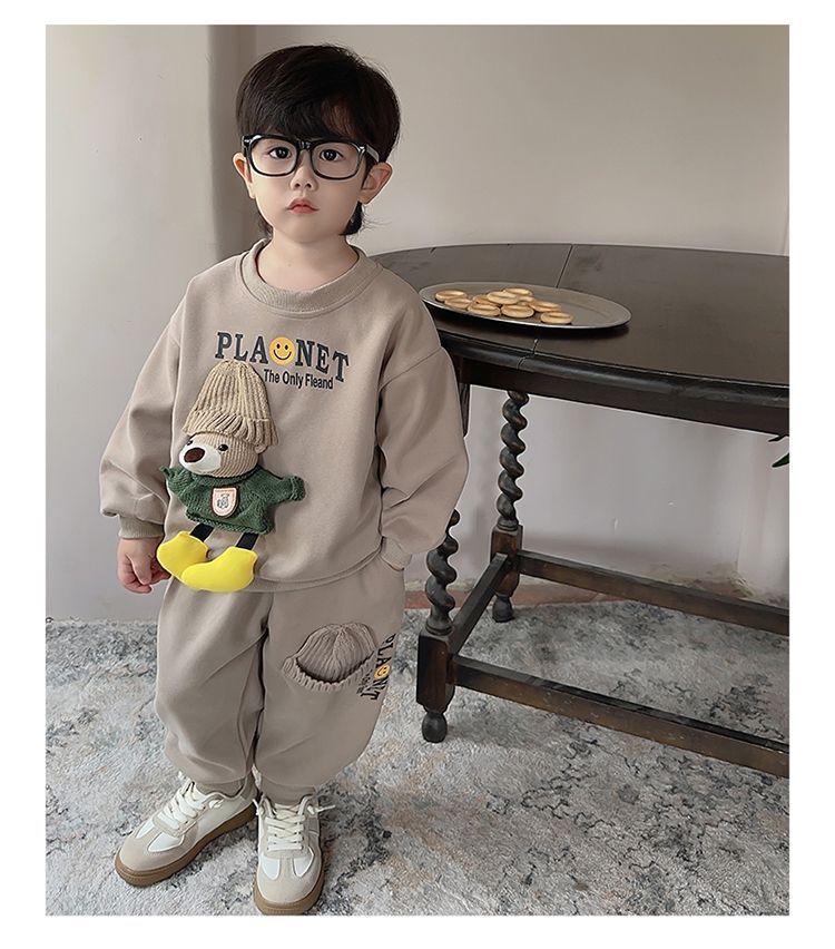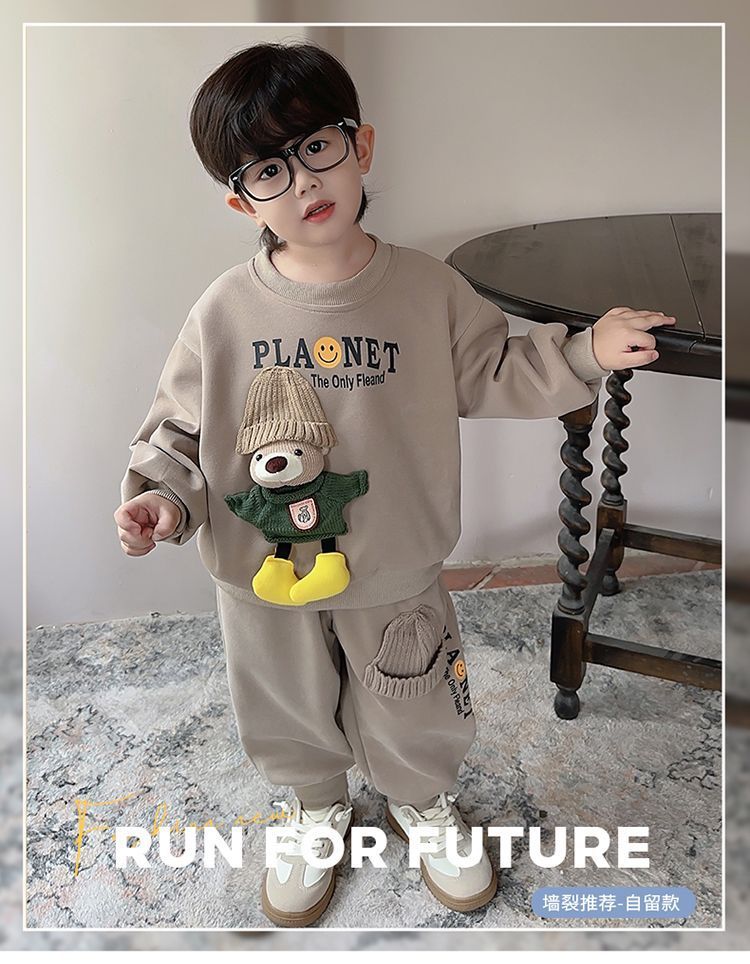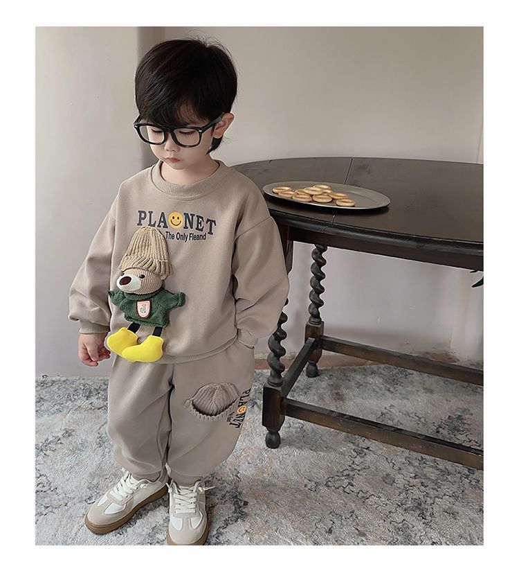 세트 남성 아동복 가을 폭발 만화 곰 투피스 2024 새로운 어린이 외국식 튀긴 거리 세트 잘 생겼다스토어 가기