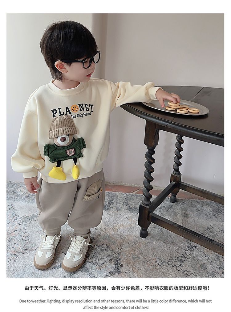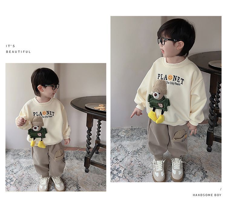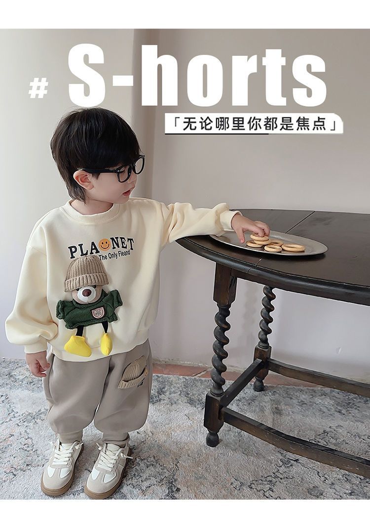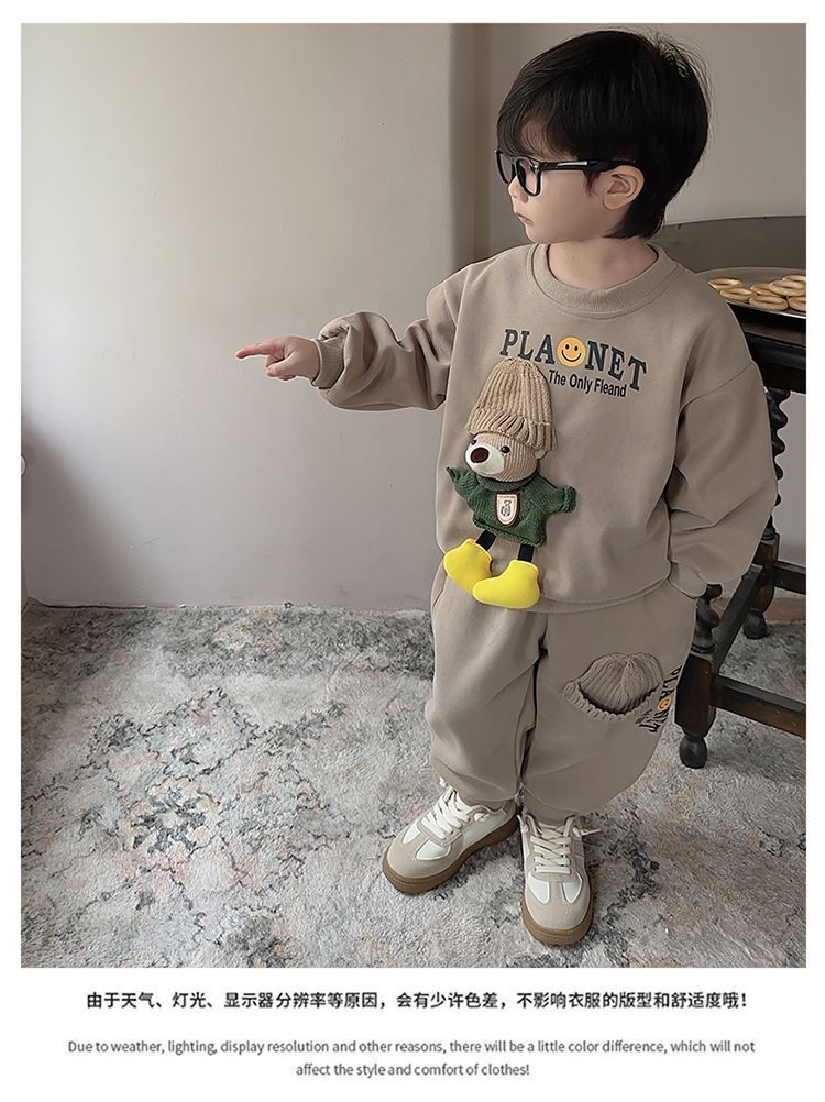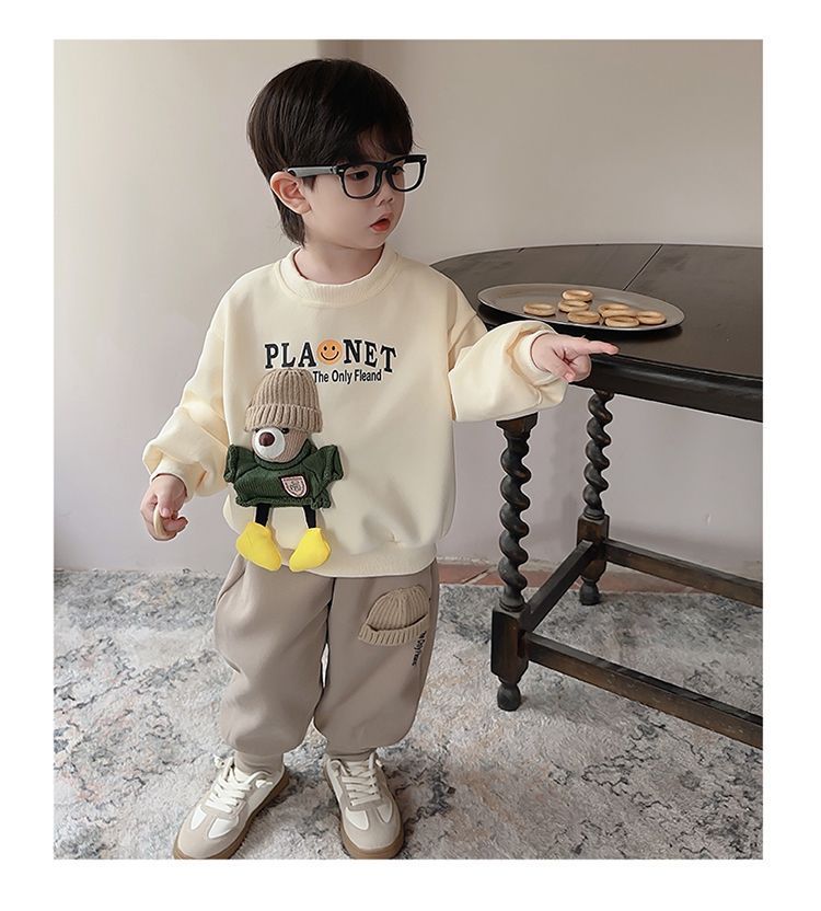 세트 남성 아동복 가을 폭발 만화 곰 투피스 2024 새로운 어린이 외국식 튀긴 거리 세트 잘 생겼다스토어 가기