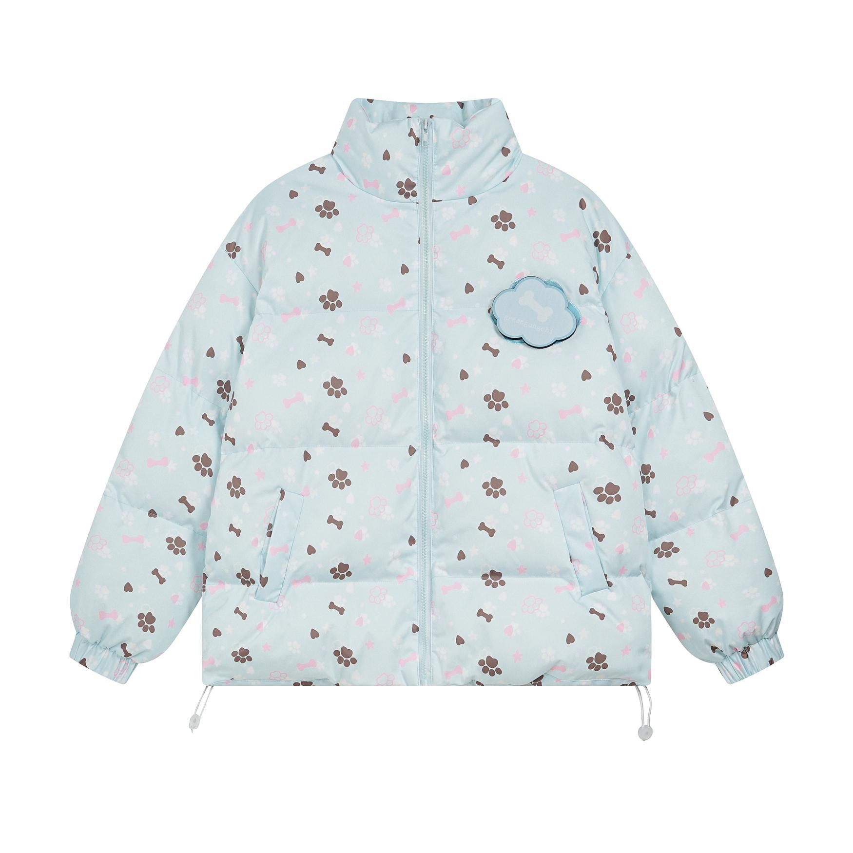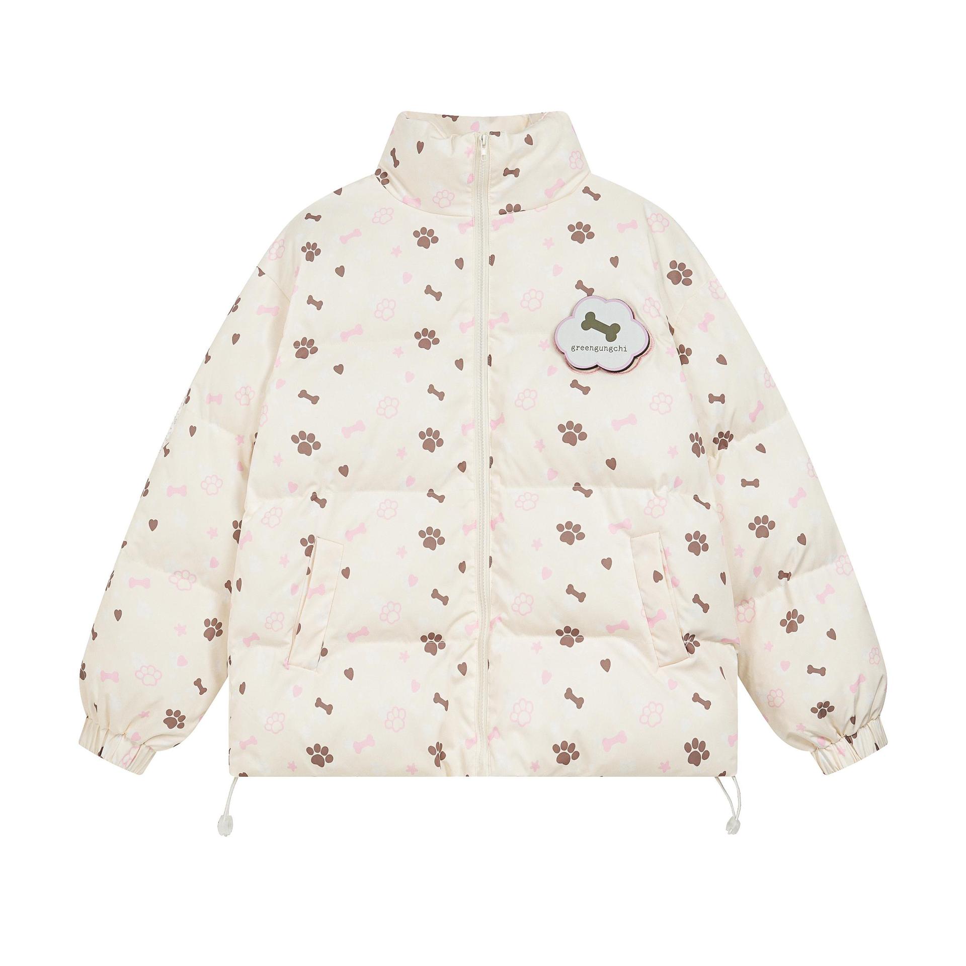National Tide American Retro Fun Cartoon Bone 전체 인쇄 코튼 패딩 재킷 남성 및 여성 도파민 신선한 니치 코튼 패딩 재킷스토어 가기