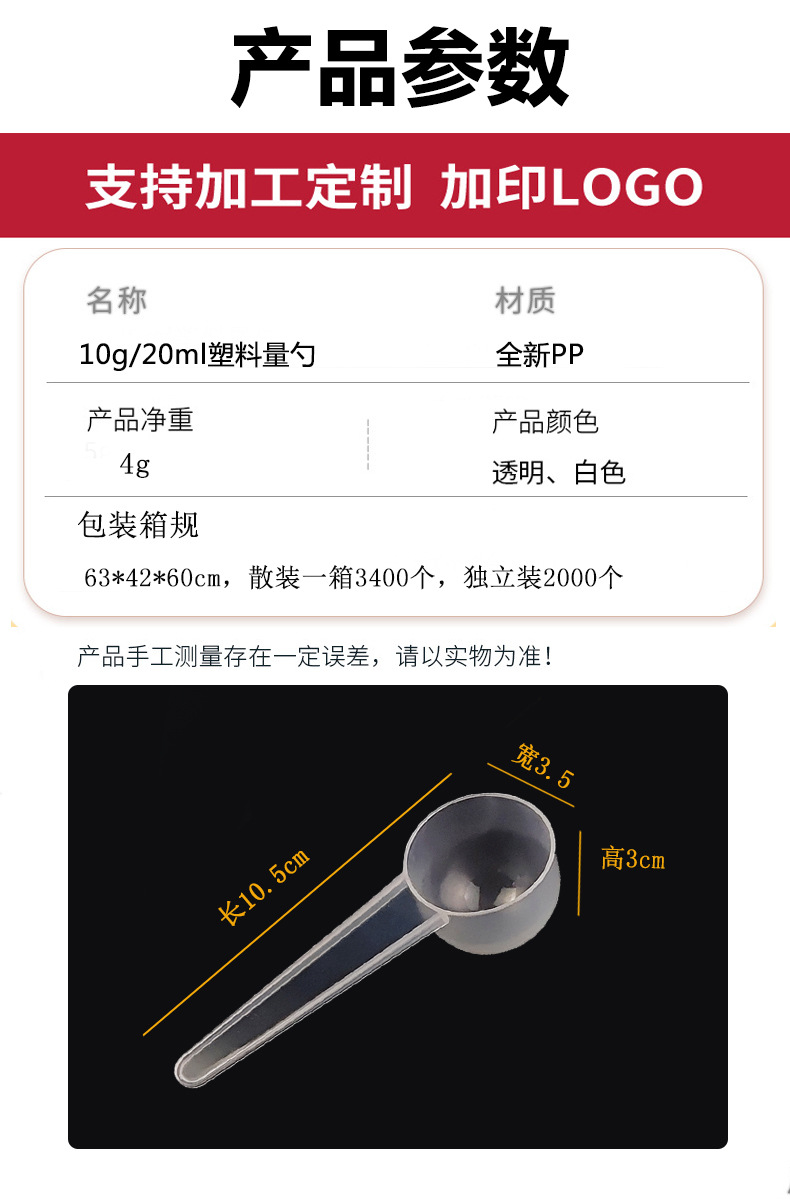 식품 학년 10g 숟가락 20 ml 둥근 바닥 투명 측정 숟가락 가루 가루 가루 가루 그램 숟가락 독립적 인 포장