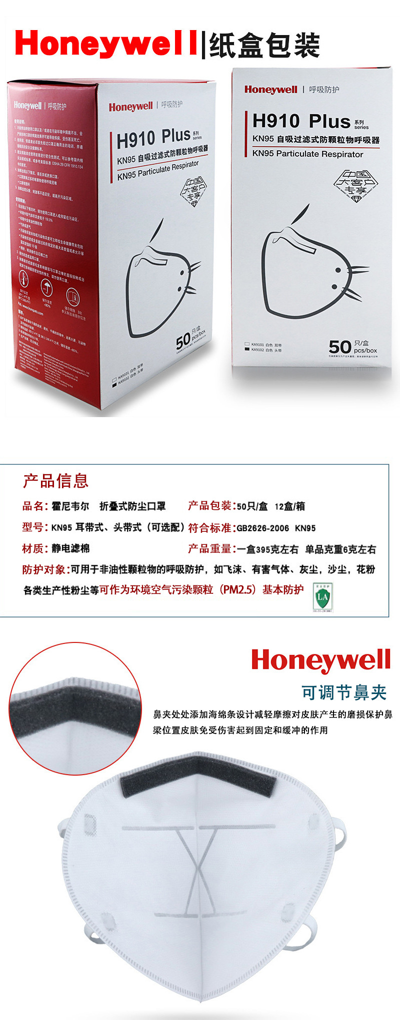 Honeywell KN95 일회용 먼지 마스크 파우더 헤이즈 H910 헤드셋 이어밴드 부직포 마스크