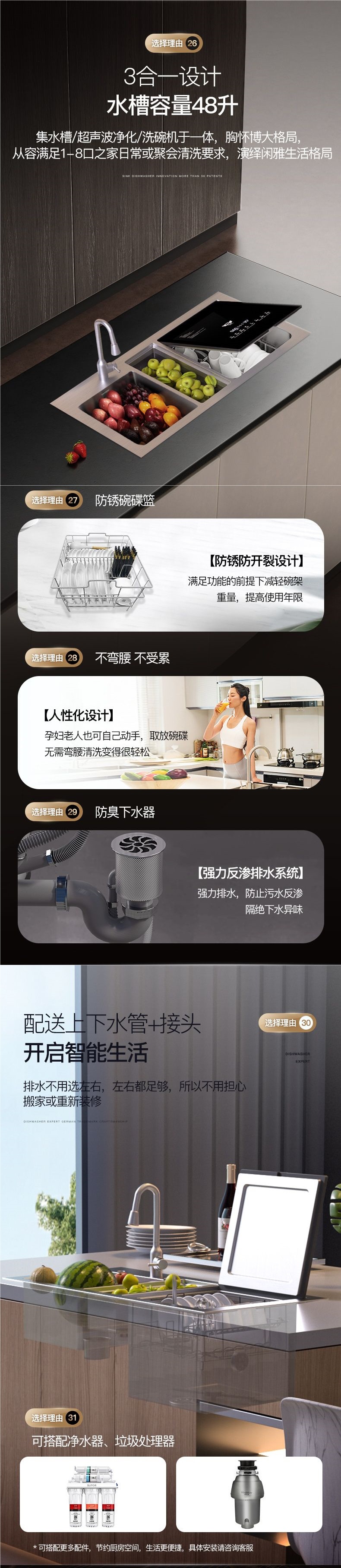 Desi 주방 싱크 식기 세척기 가정용 지능형 자동 건조 및 소독 초음파 긴 광장 너무 쉬운 산소 사용스토어 가기
