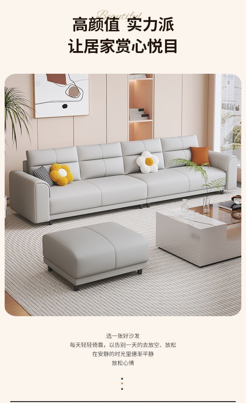 현대 심플 라이트 럭셔리 2023 새로운 스타일 고양이 스크래치 가죽 소파 거실 가구 중소 아파트 스트레이트 로우 워시프리 기술 가죽스토어 가기