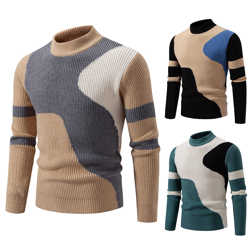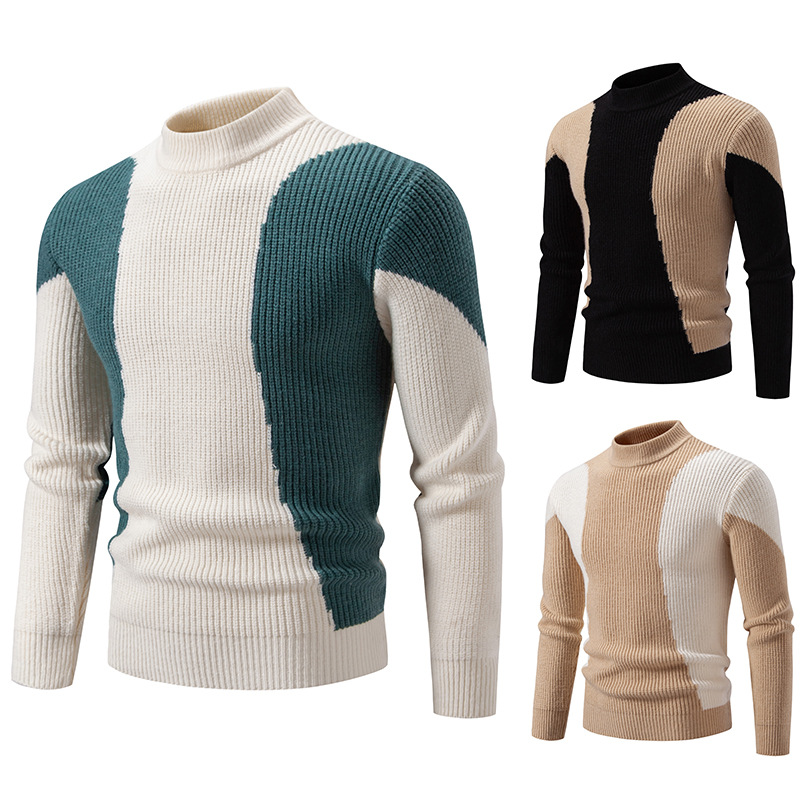 2025년 신상 남성 하프 터틀넥 배색 니트 스웨터 빅사이즈 캐주얼 이너웨어