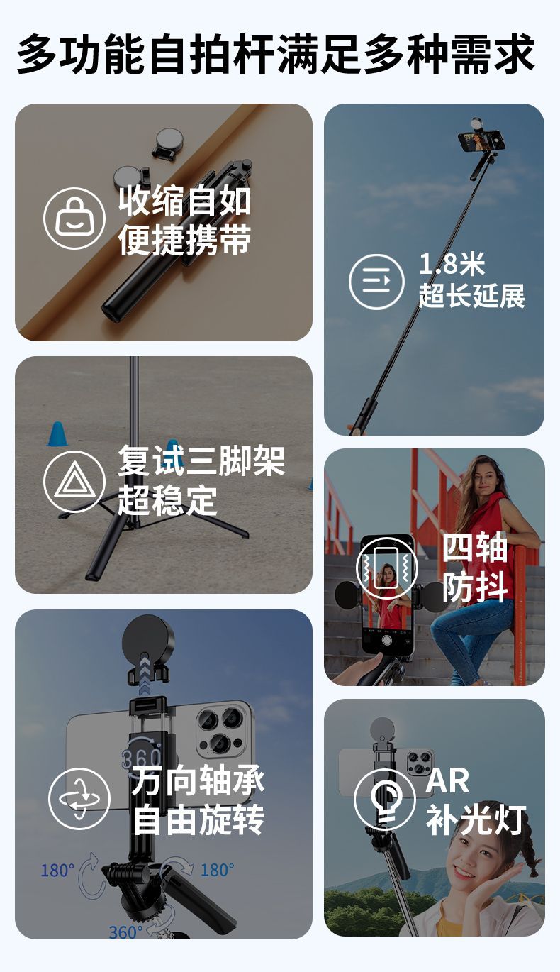 핸들, 휴대폰 셀카봉, 손떨림 방지 삼각대, 360도 회전 짐벌 안정기, 셀카 아티팩트 브래킷이 포함된 R16