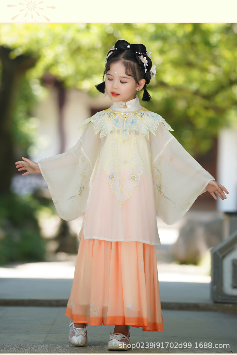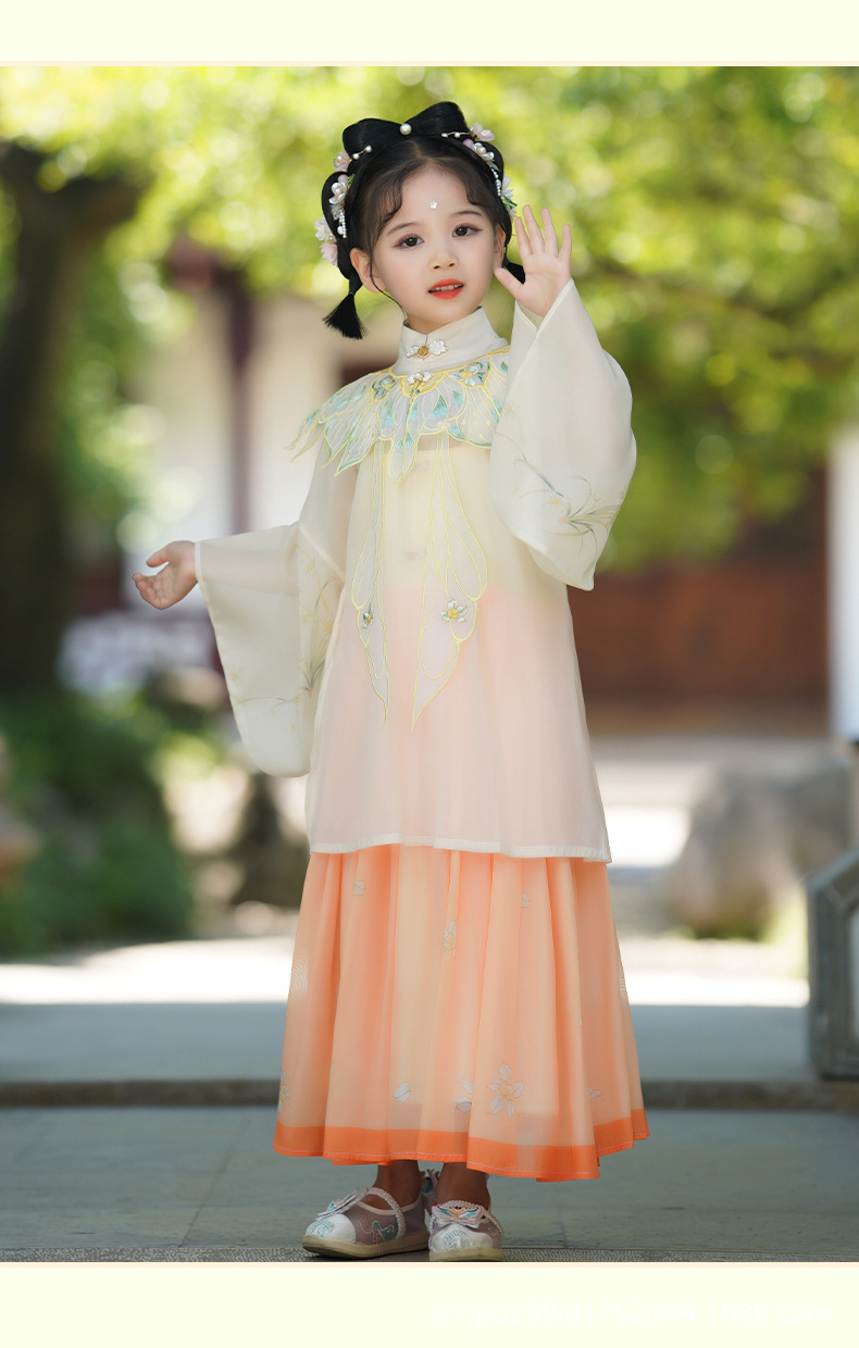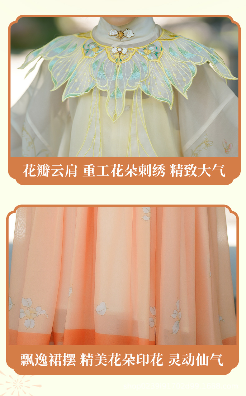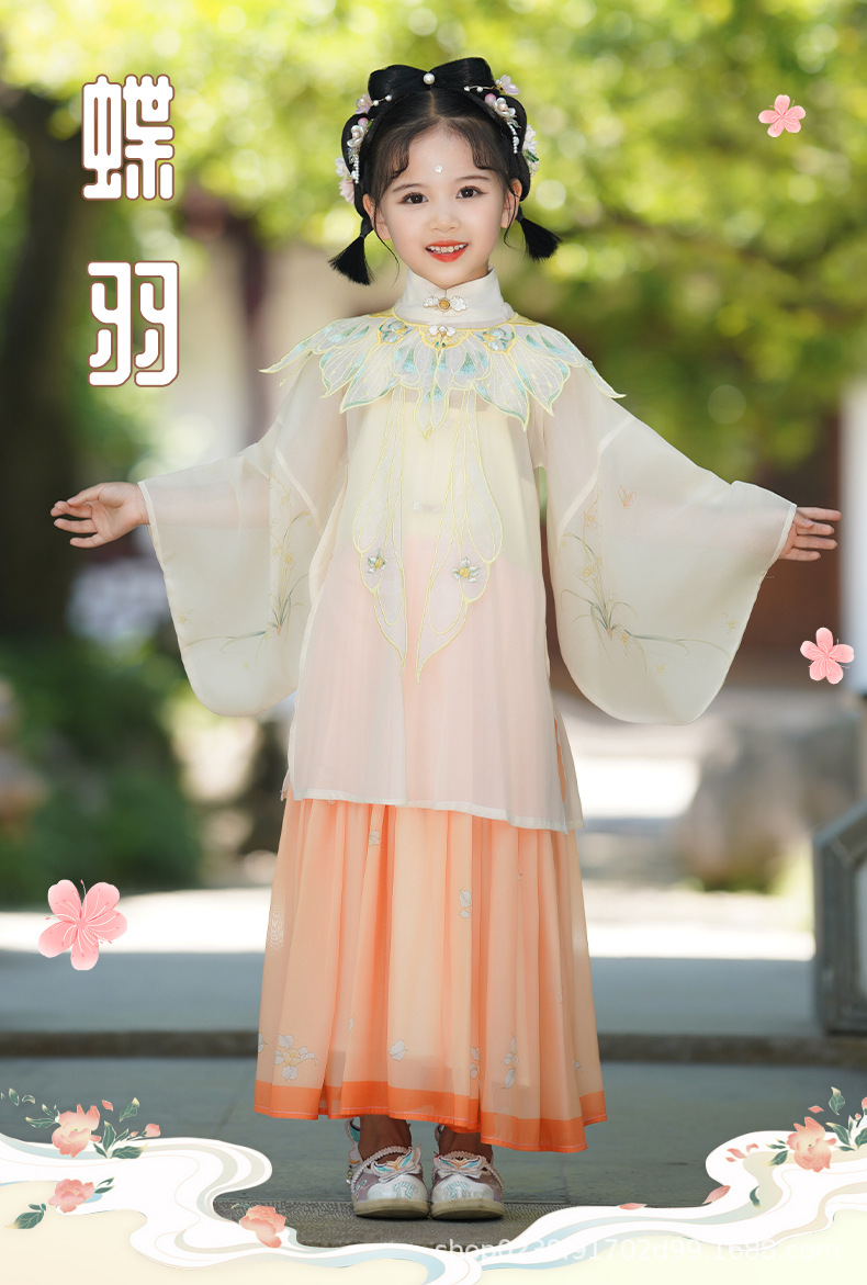 [나비 깃털] 한푸 부모-자녀 세트 어머니와 딸 소녀 명나라 만든 오비큐 플래켓 개선 큰 소매 셔츠 중국 스타일 슈퍼 불멸의 구름 어깨