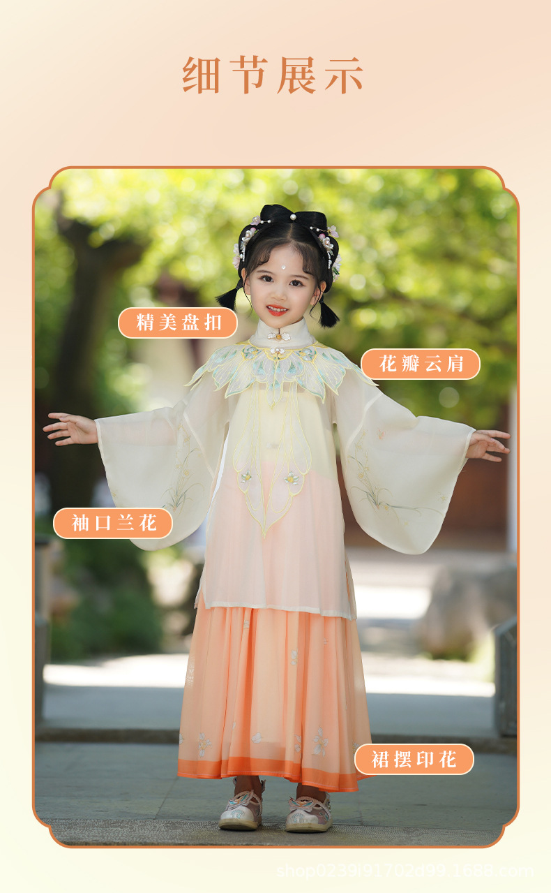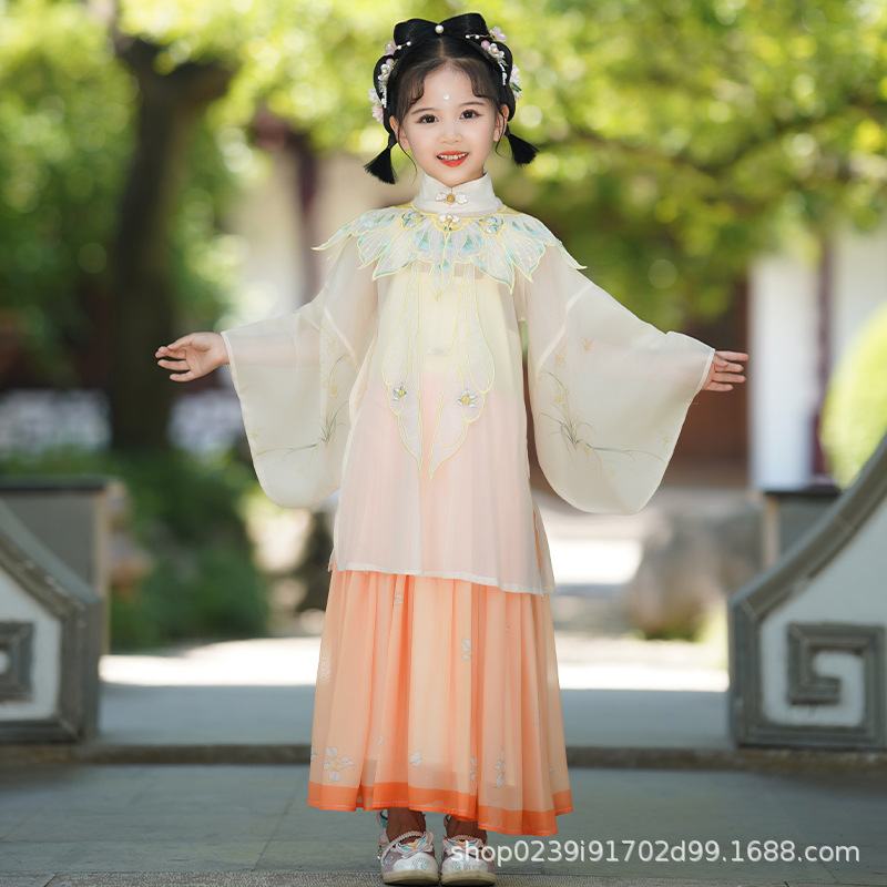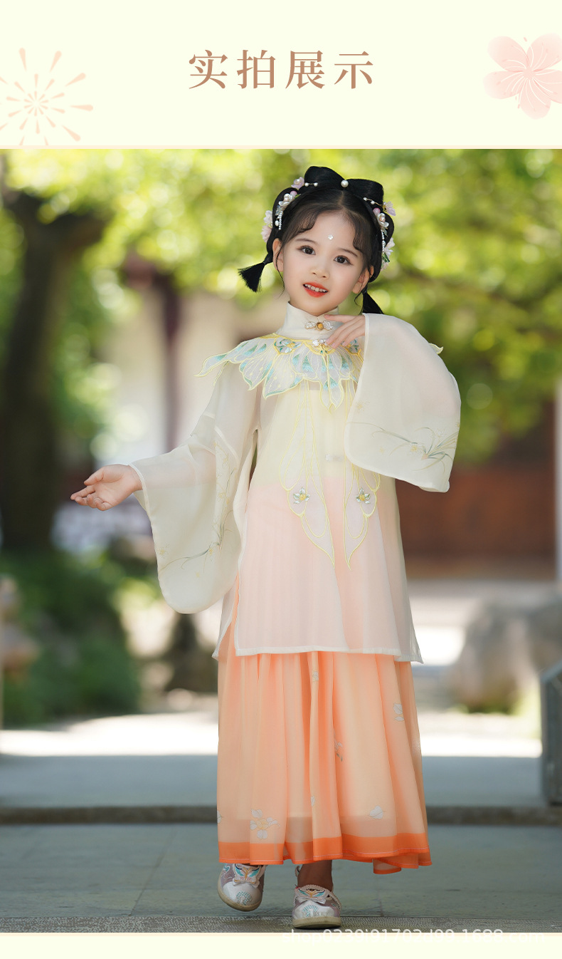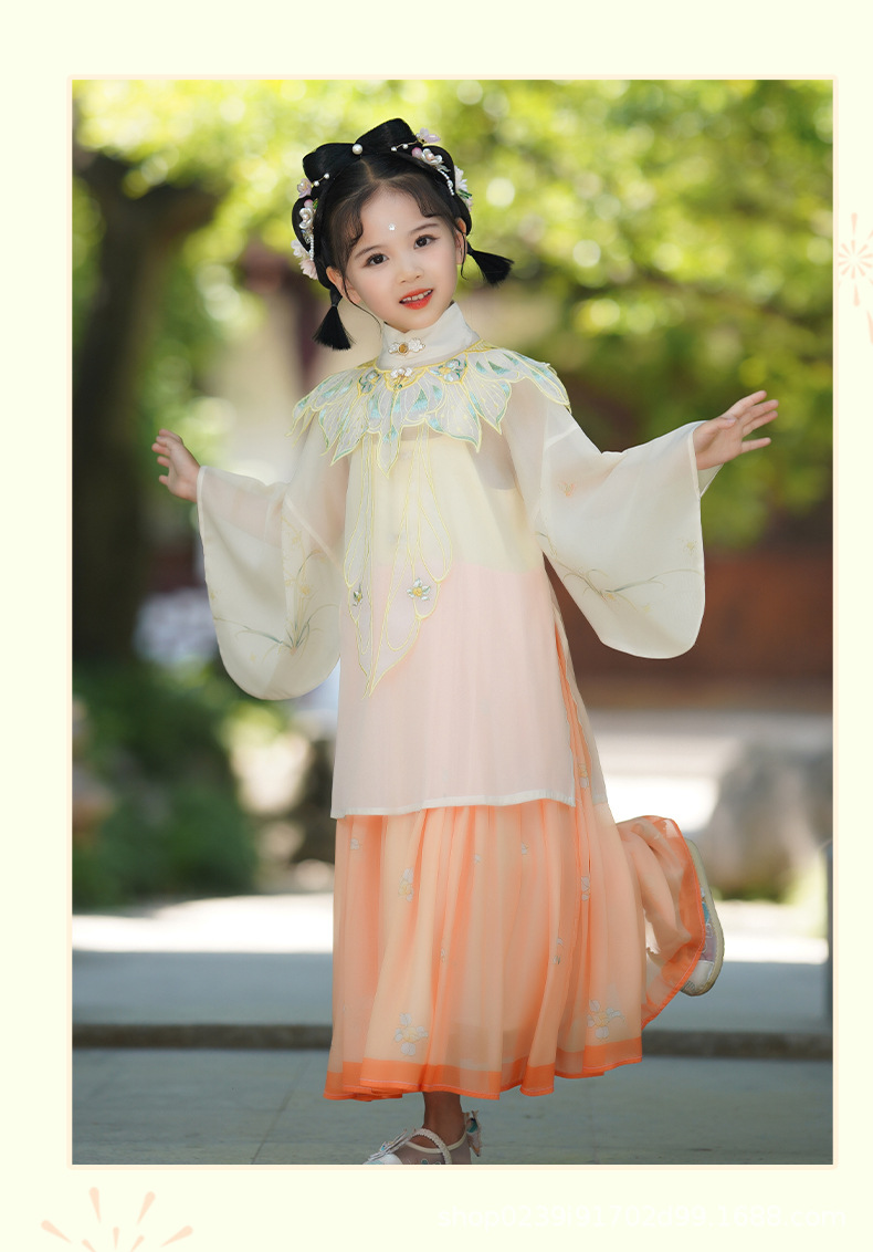 [나비 깃털] 한푸 부모-자녀 세트 어머니와 딸 소녀 명나라 만든 오비큐 플래켓 개선 큰 소매 셔츠 중국 스타일 슈퍼 불멸의 구름 어깨