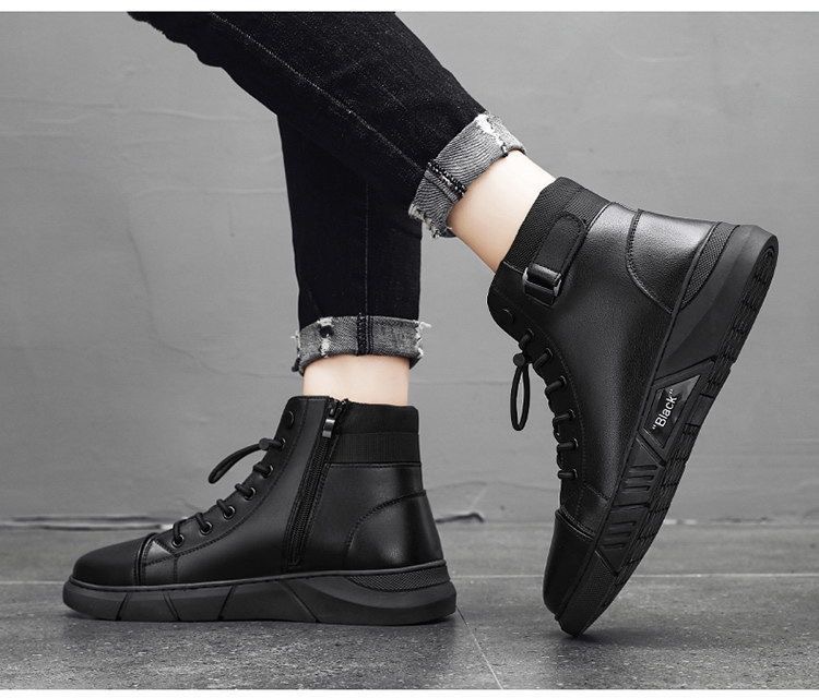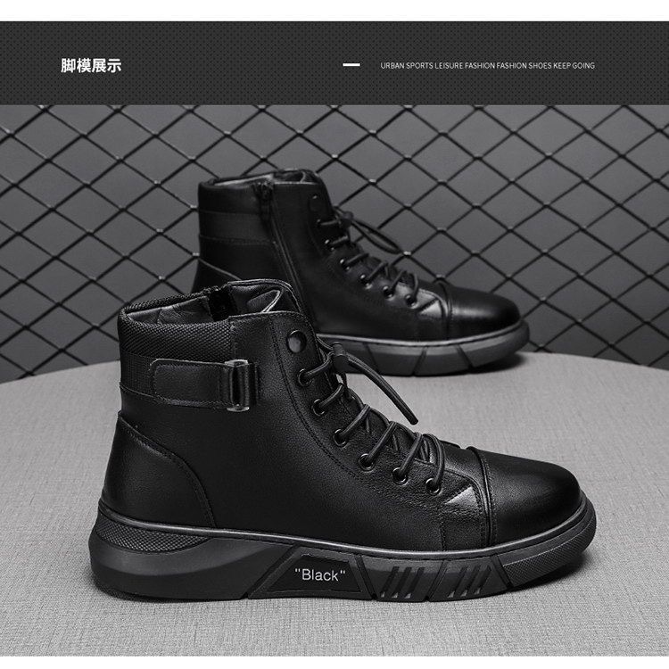 가을 남성 신발 새로운 하이 탑 마틴 부츠 남성용 캐주얼 가죽 부츠 유행 올매치 기모 따뜻한 코튼 신발 짧은 부츠