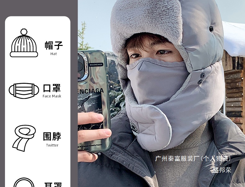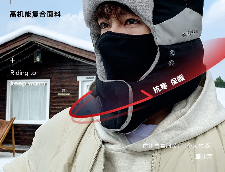 남자 사이클링 방풍 헤드 기어 동북 면 모자 남자 귀 보호 배터리 자동차 겨울 겨울 보호 마스크 레이 펑 모자