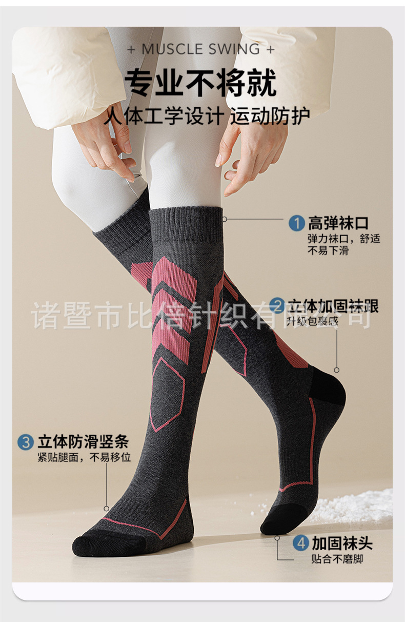 전문 스키 양말 여성의 겨울 울 따뜻한 패딩 테리 마이크로 압력 스포츠 긴 수건 바닥 등산 종아리 양말