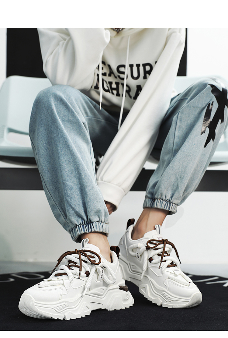인기있는 남성 신발 가을과 겨울 2024 새로운 트렌드 올 매치 청소년 스포츠 레저 높이 흰색 아버지 패션 신발스토어 가기