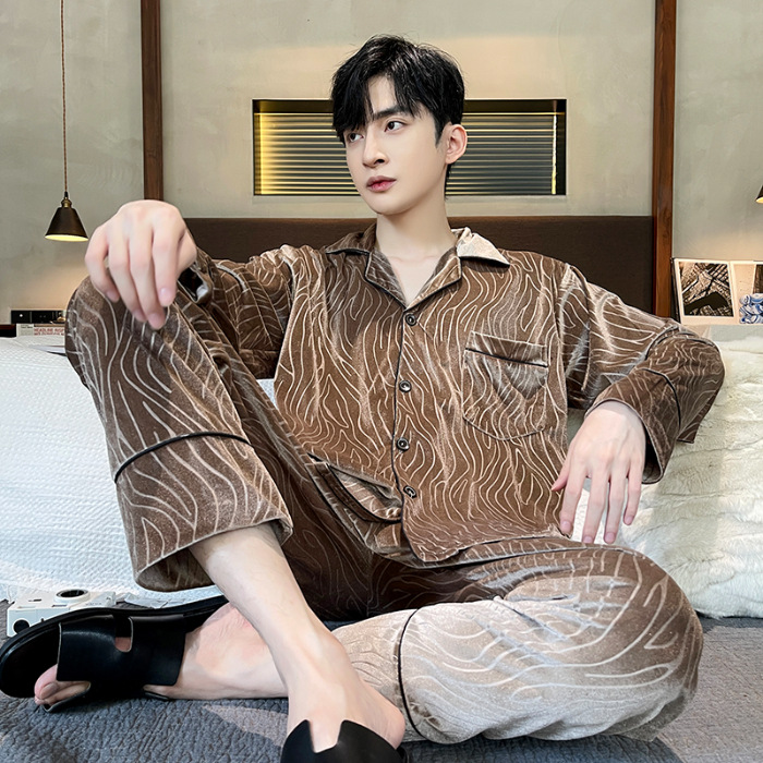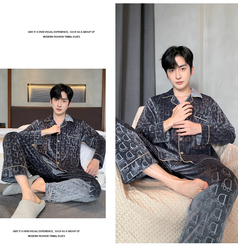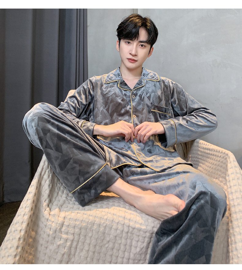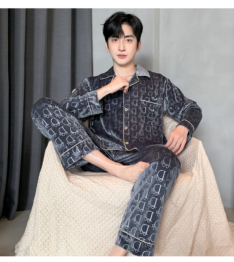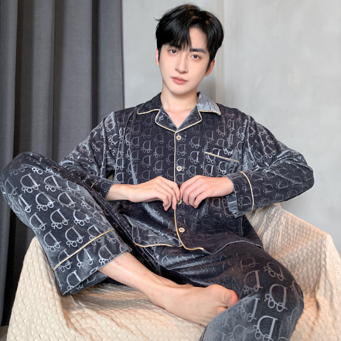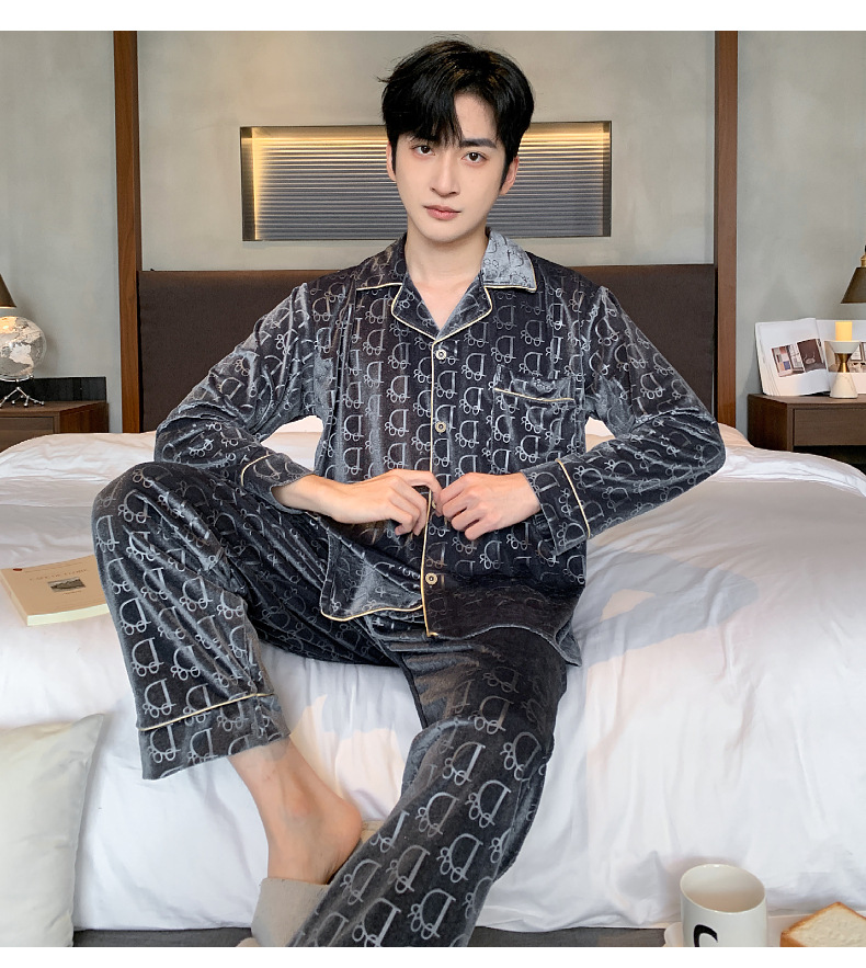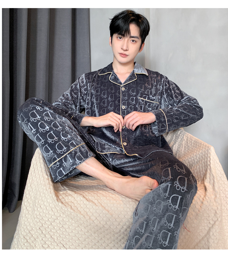 잠옷 남자 봄과 가을 골드 벨벳 얇은 긴 소매 플러스 사이즈 캐주얼 편안한 카디건 겉옷 홈 세트스토어 가기