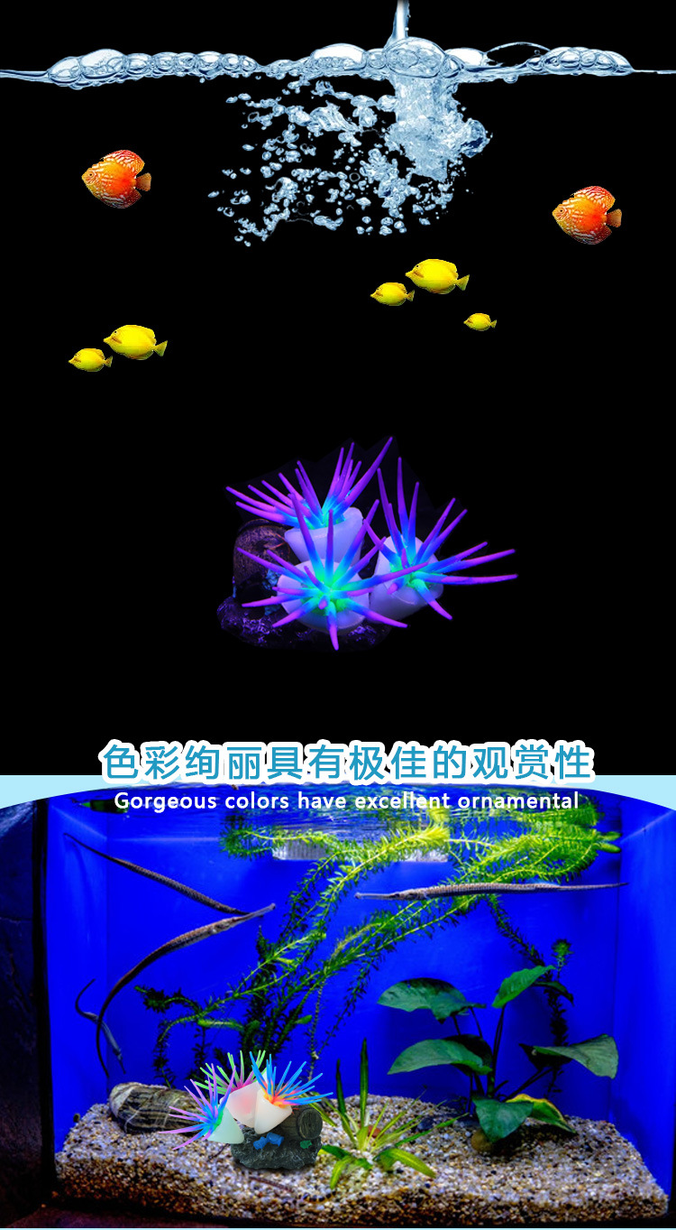 국경 간 전자 상거래 수족관 조경 수조 장식 실리콘 소프트웨어 시뮬레이션 산호 아네모네 3 꽃 아네모네 공급
