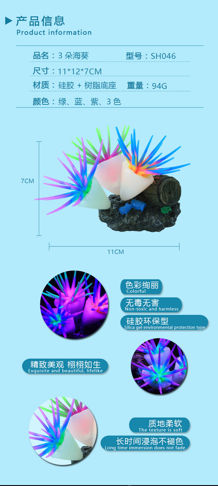 국경 간 전자 상거래 수족관 조경 수조 장식 실리콘 소프트웨어 시뮬레이션 산호 아네모네 3 꽃 아네모네 공급스토어 가기