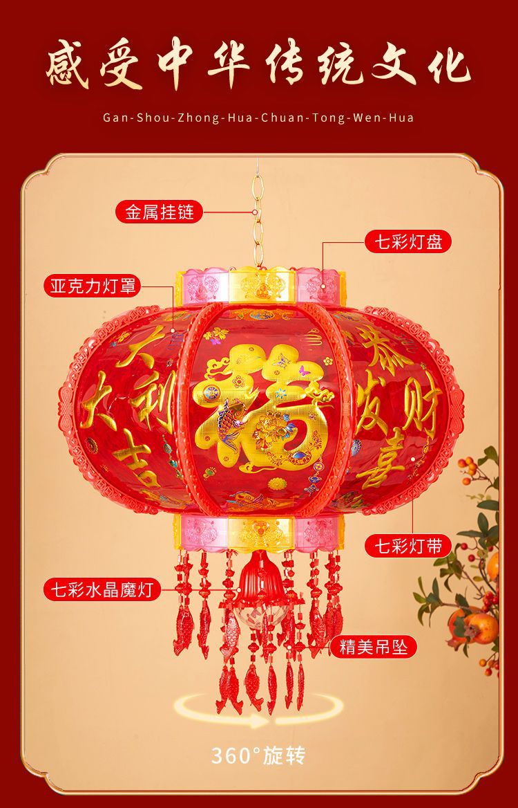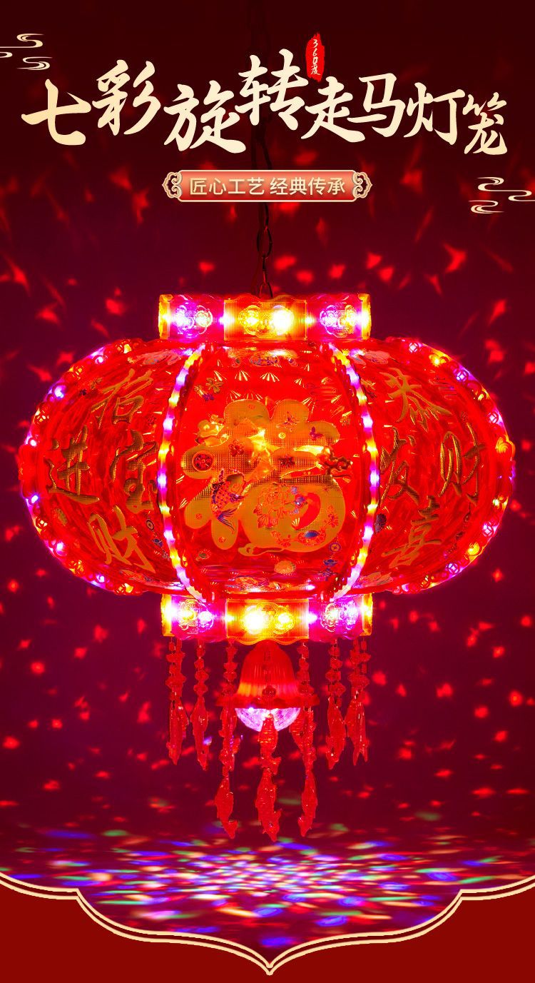 2025 다채로운 LED 말 랜턴 회전 크리스탈 포춘 장식 라이트 발코니 이동 봄 축제 새해 랜턴스토어 가기