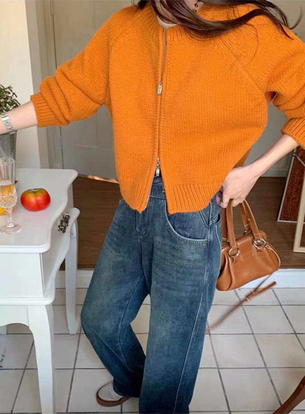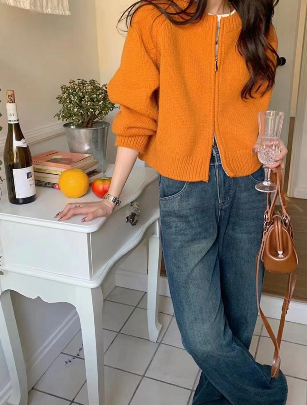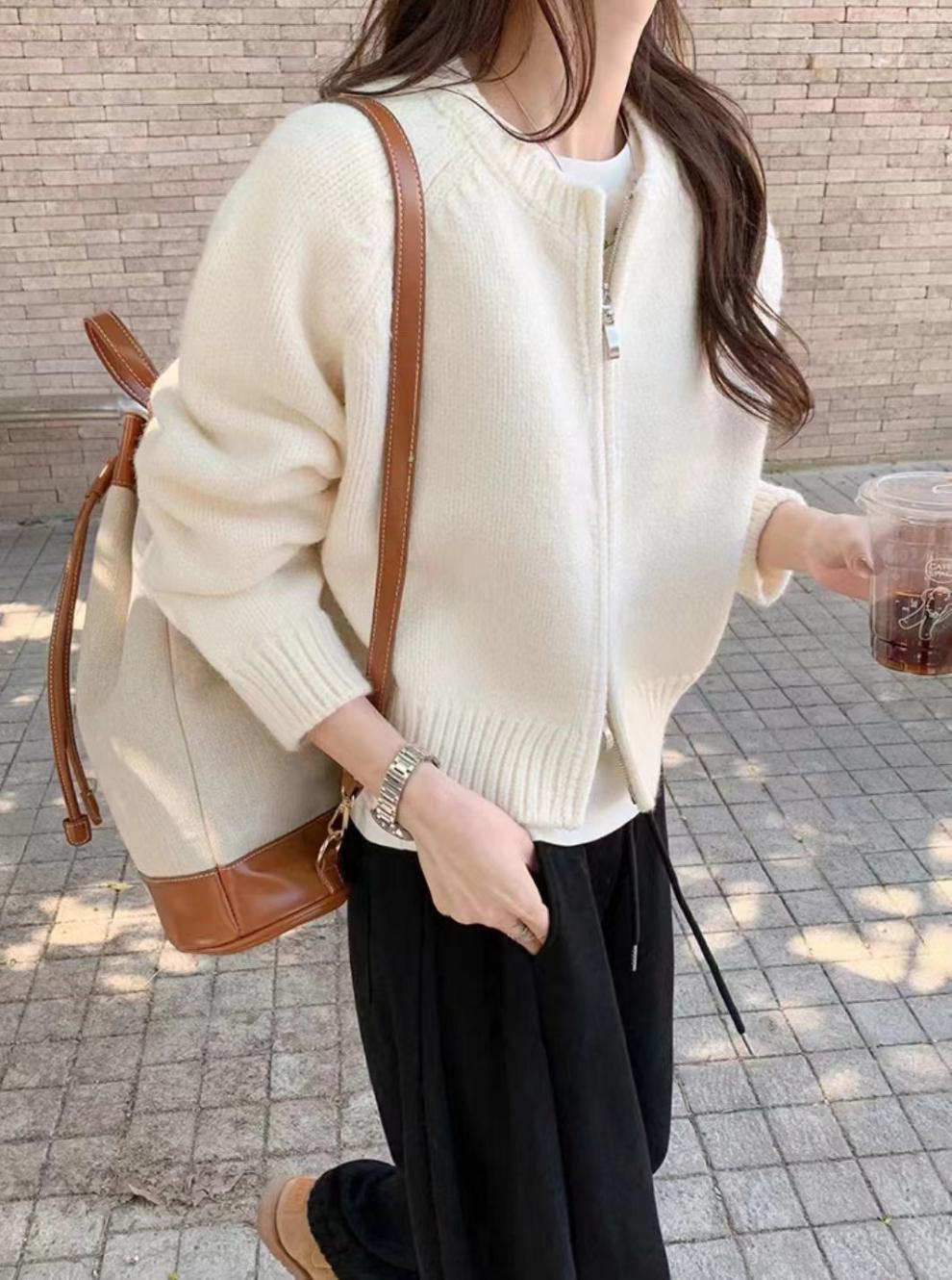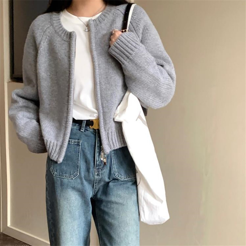 2 회색 짧은 스웨터 재킷 여성의 가을과 겨울 2024 새로운 느슨한 지퍼 카디건 긴 소매 니트 탑스토어 가기
