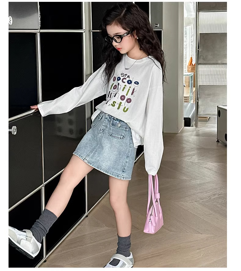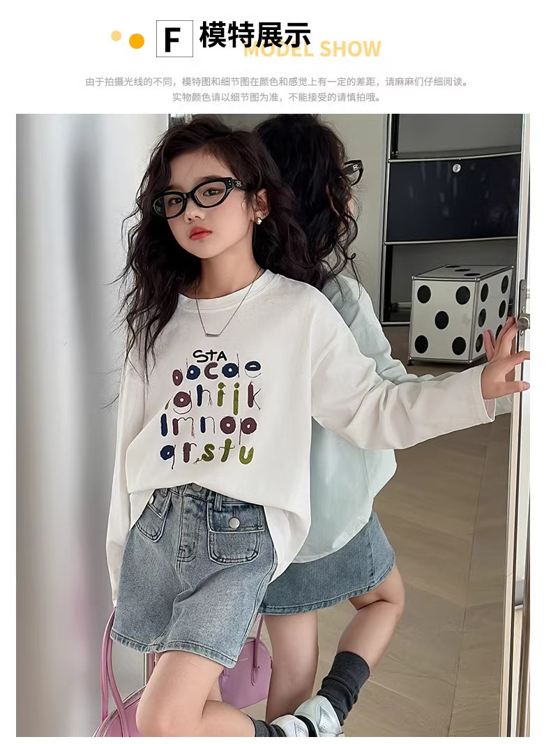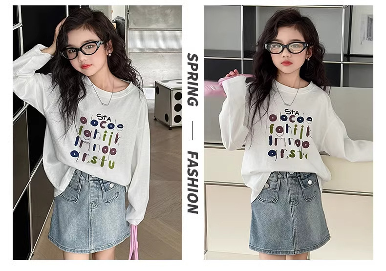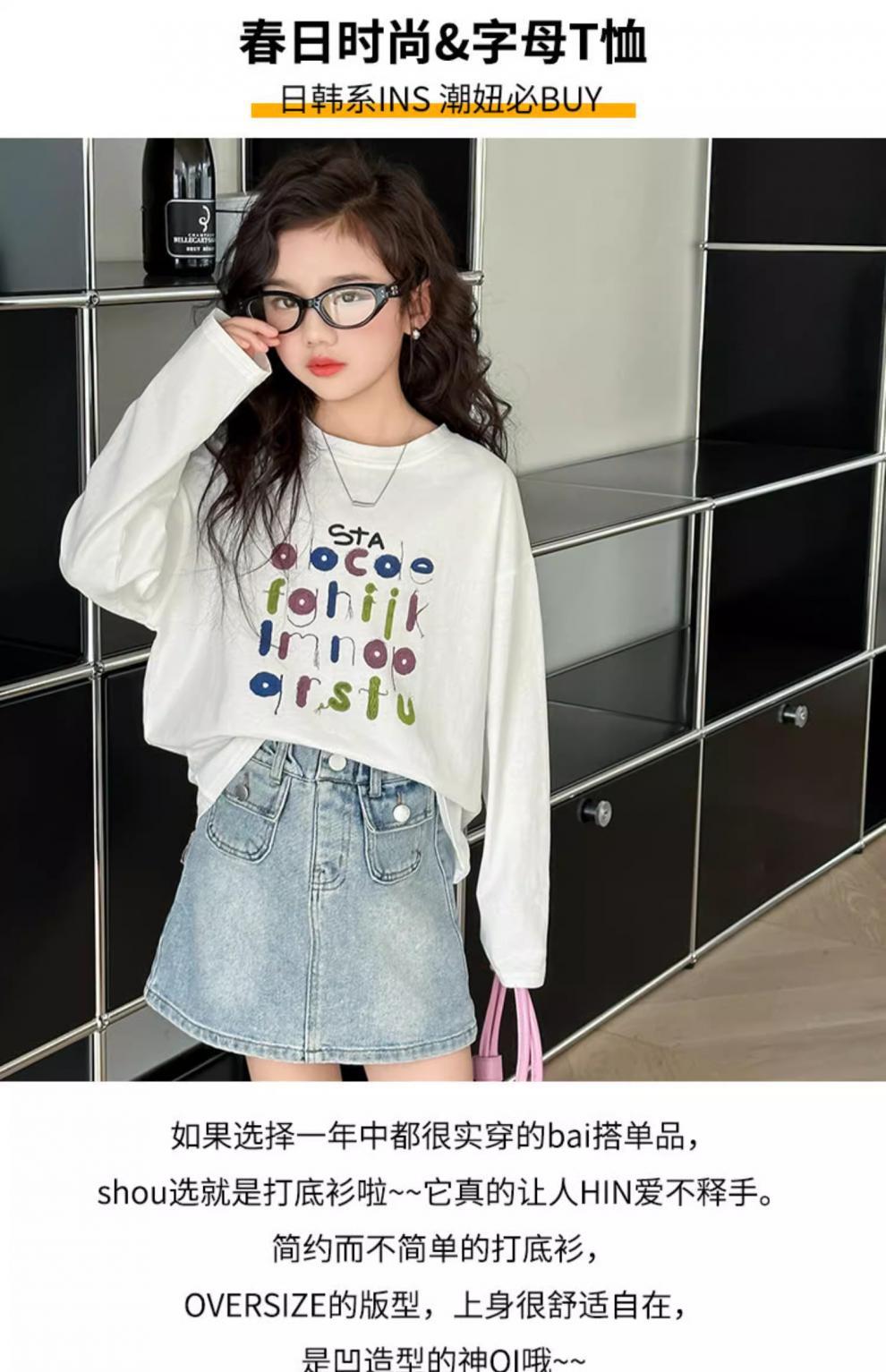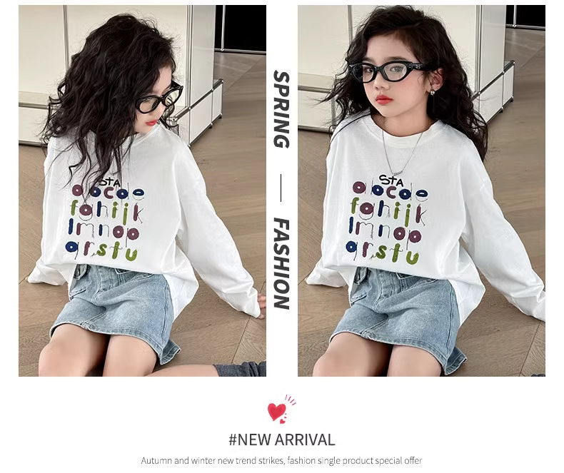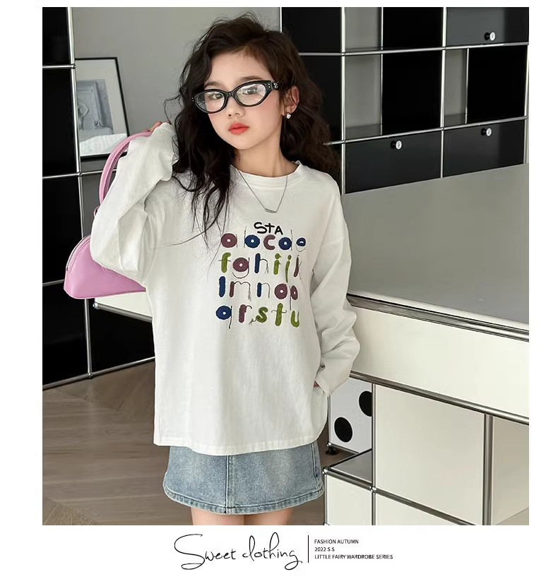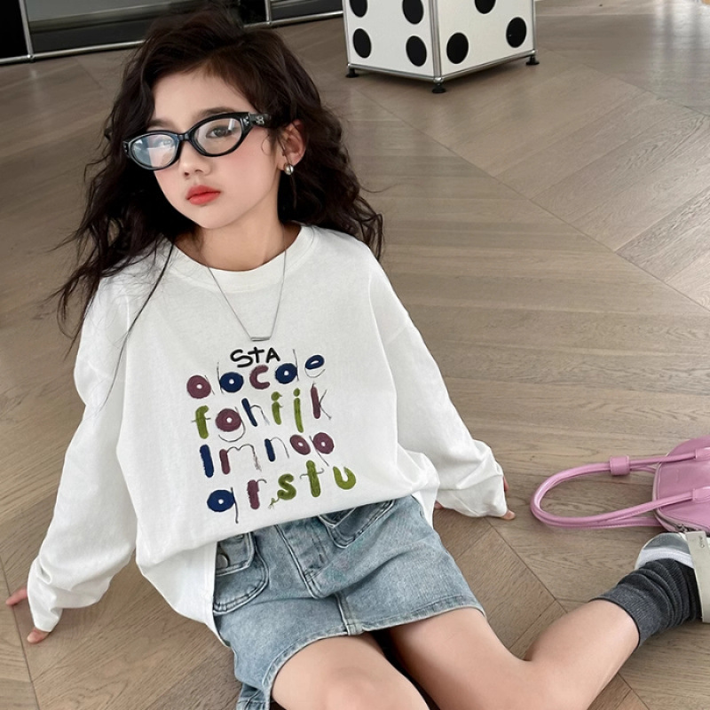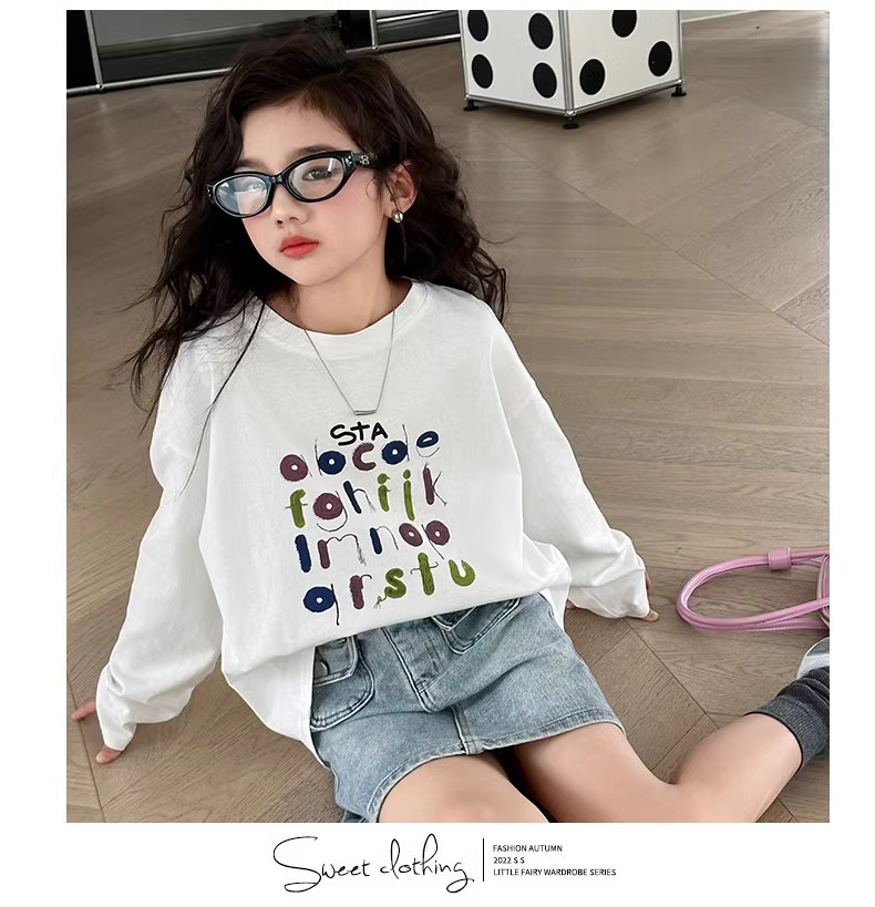 소녀의 봄 옷베이스 셔츠 흰색 순수한 면 패션 인쇄 어린이 봄과 가을 긴 소매 티셔츠 서양식 소녀 가을 옷스토어 가기