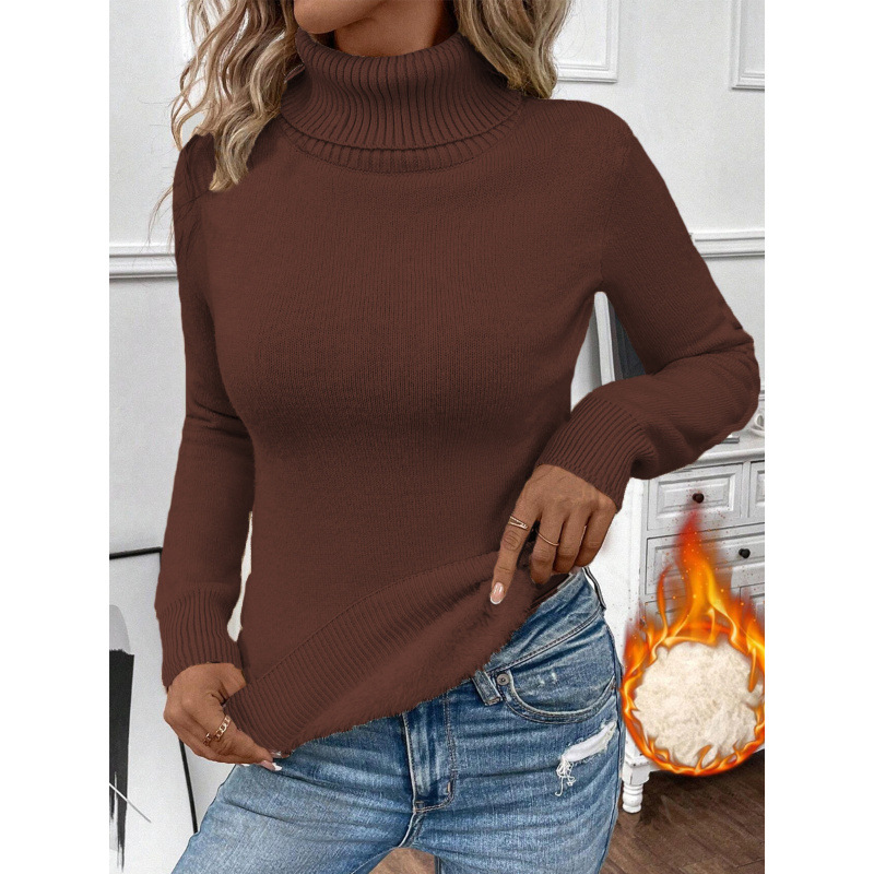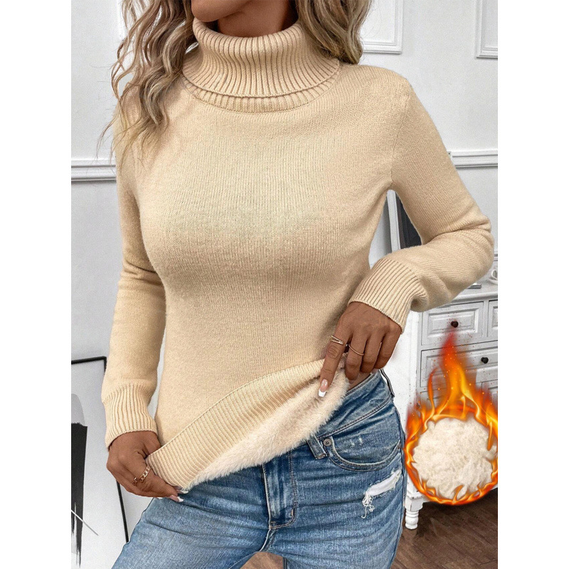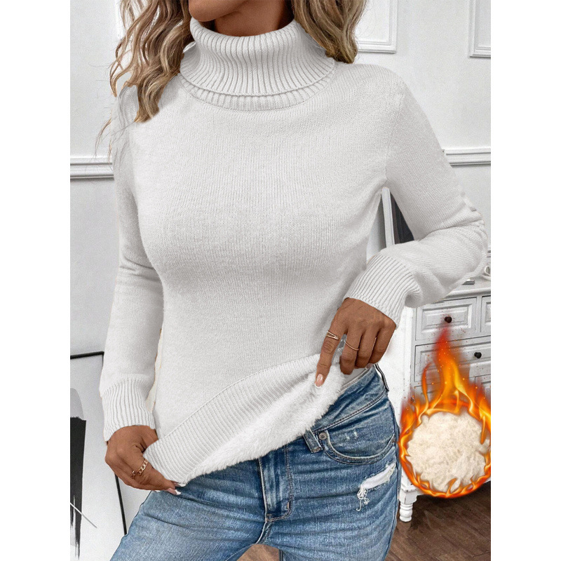 기모 두꺼운 터틀넥 스웨터 여성의 2024 내부 따뜻한 풀오버 서양식 원피스 밍크 니트베이스 셔츠 봄과 여름