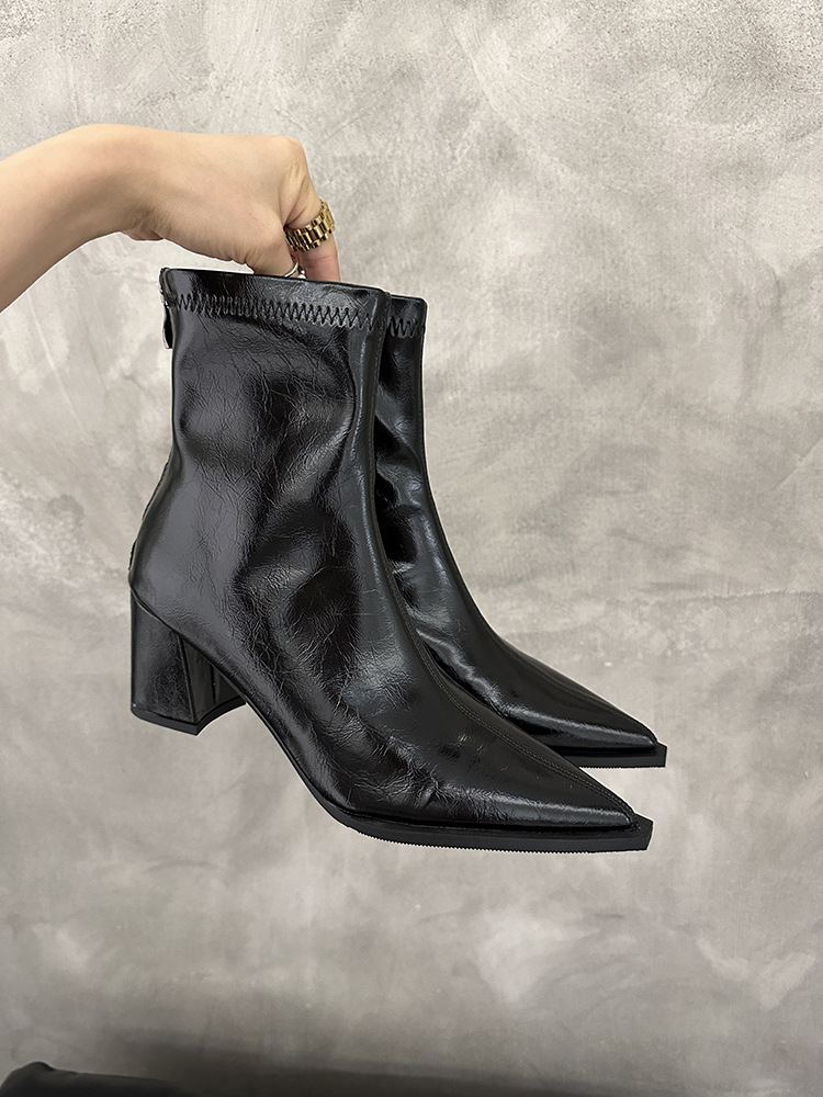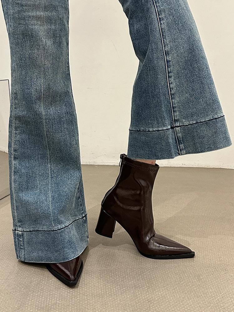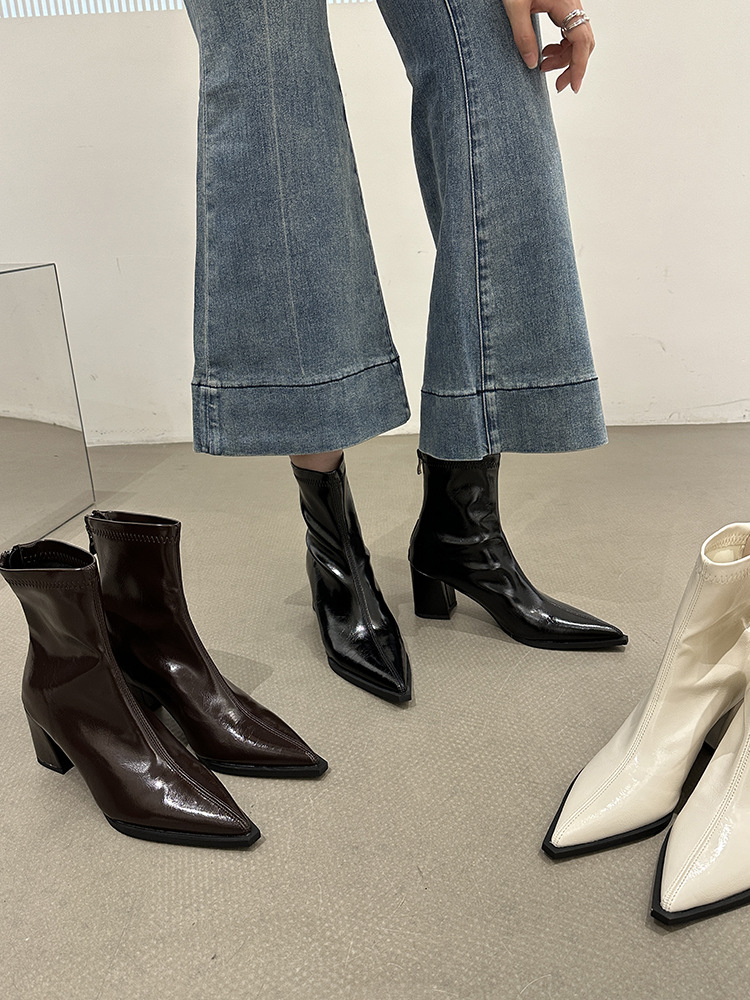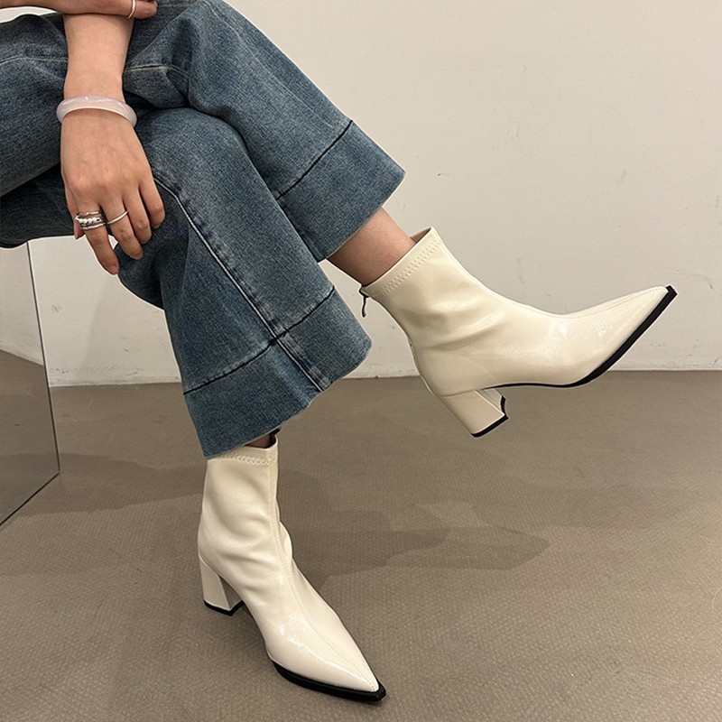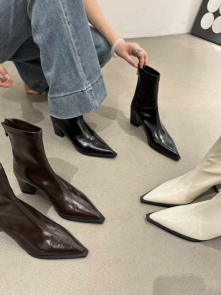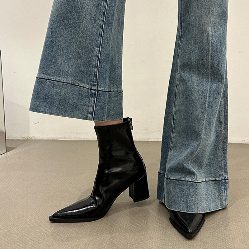 뾰족코 숏부츠 여성 신상 2025 가을 겨울 여성 부츠 하이힐 숏부츠 독특한 디자인 슬림 부츠 굵은 굽 부츠스토어 가기