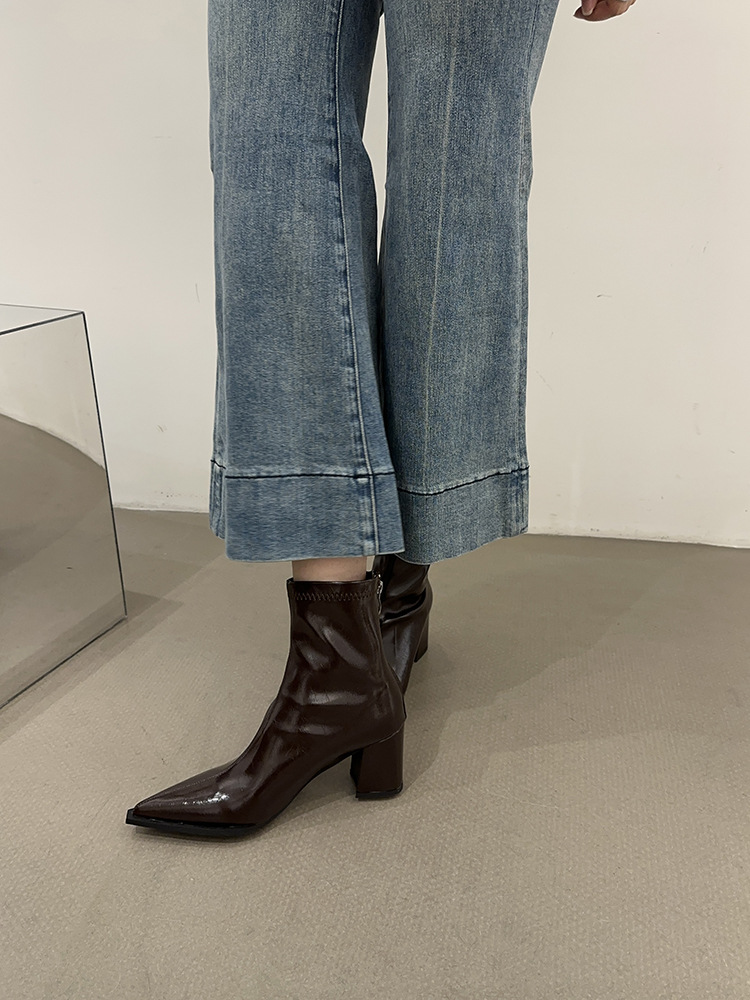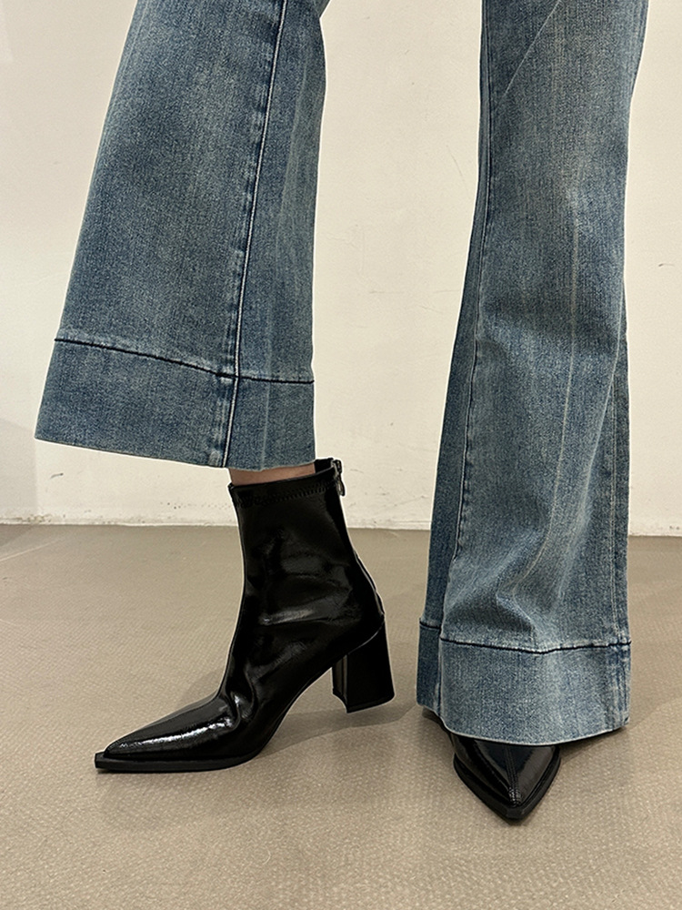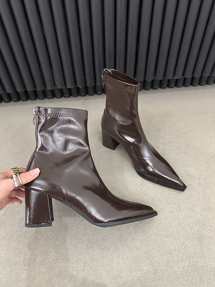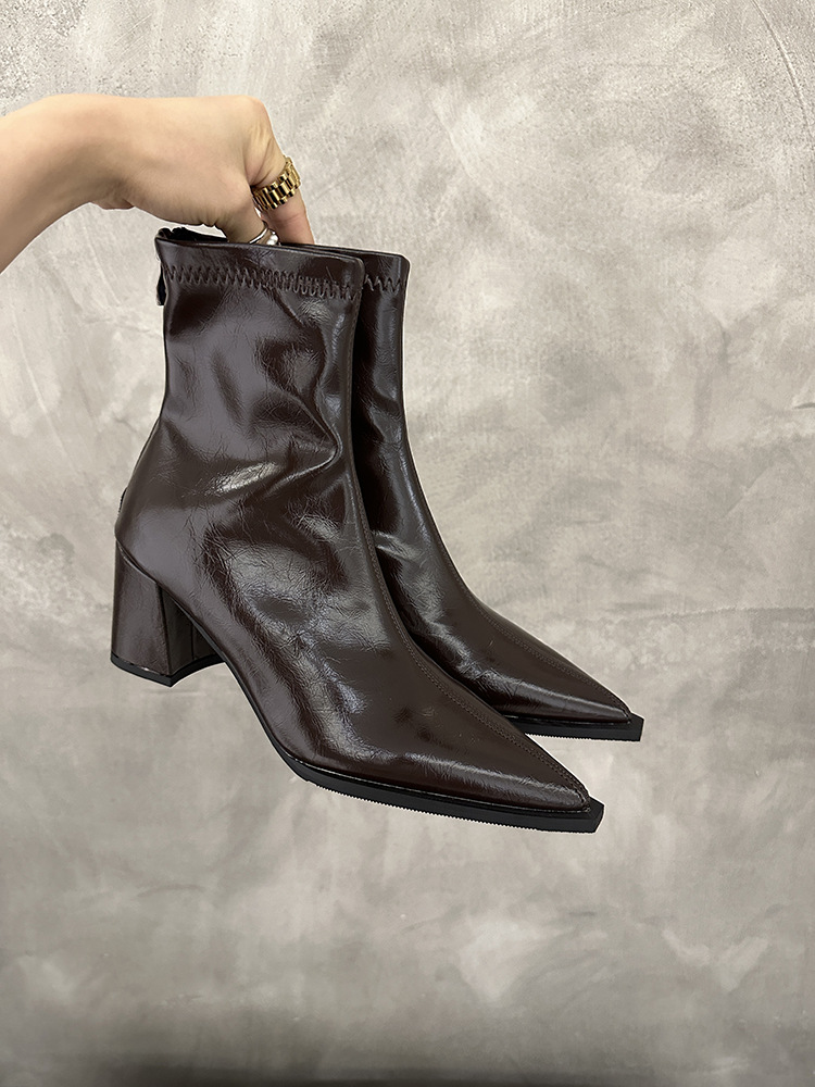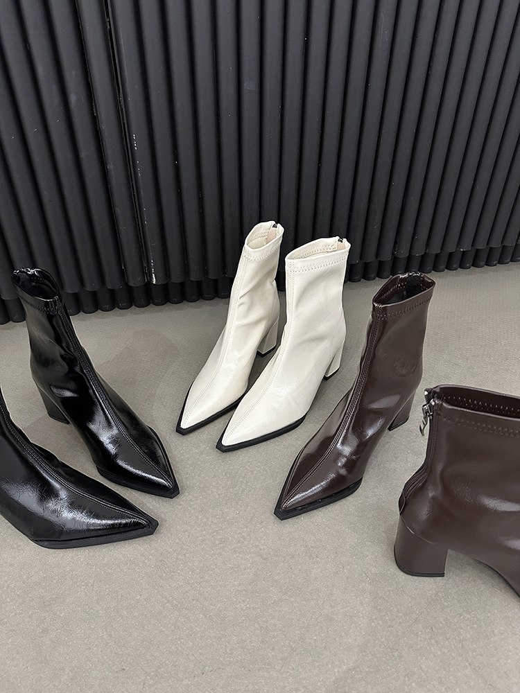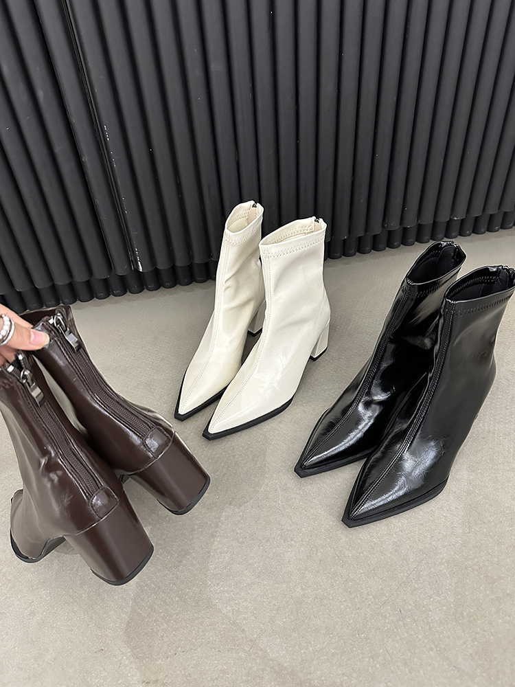 뾰족코 숏부츠 여성 신상 2025 가을 겨울 여성 부츠 하이힐 숏부츠 독특한 디자인 슬림 부츠 굵은 굽 부츠스토어 가기