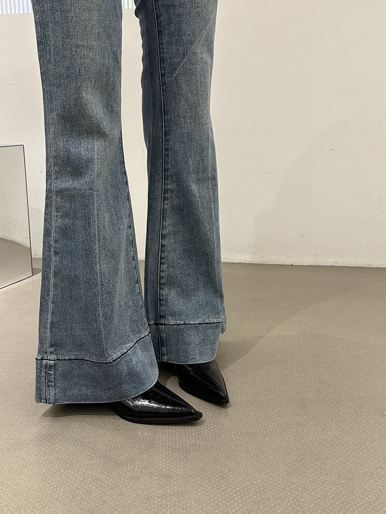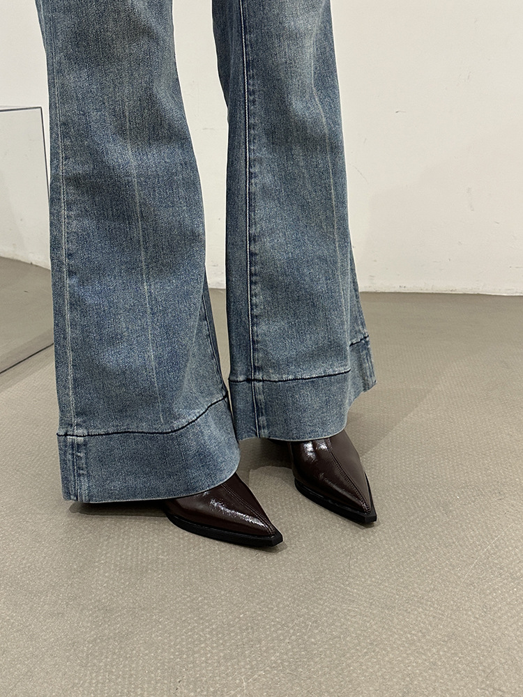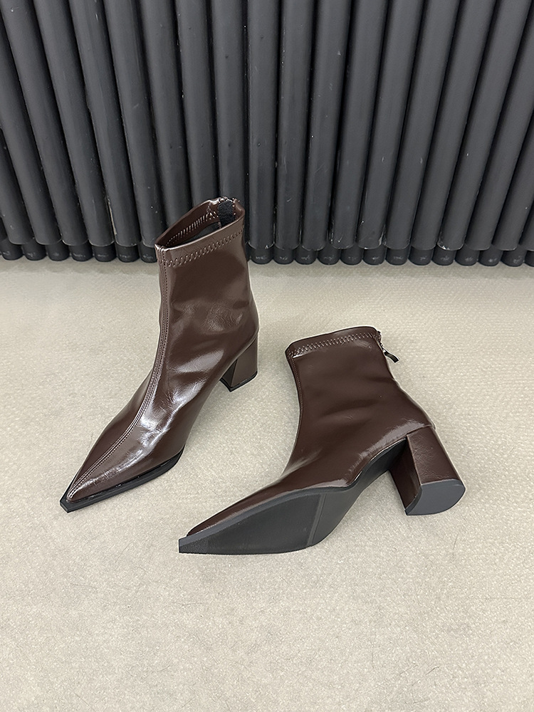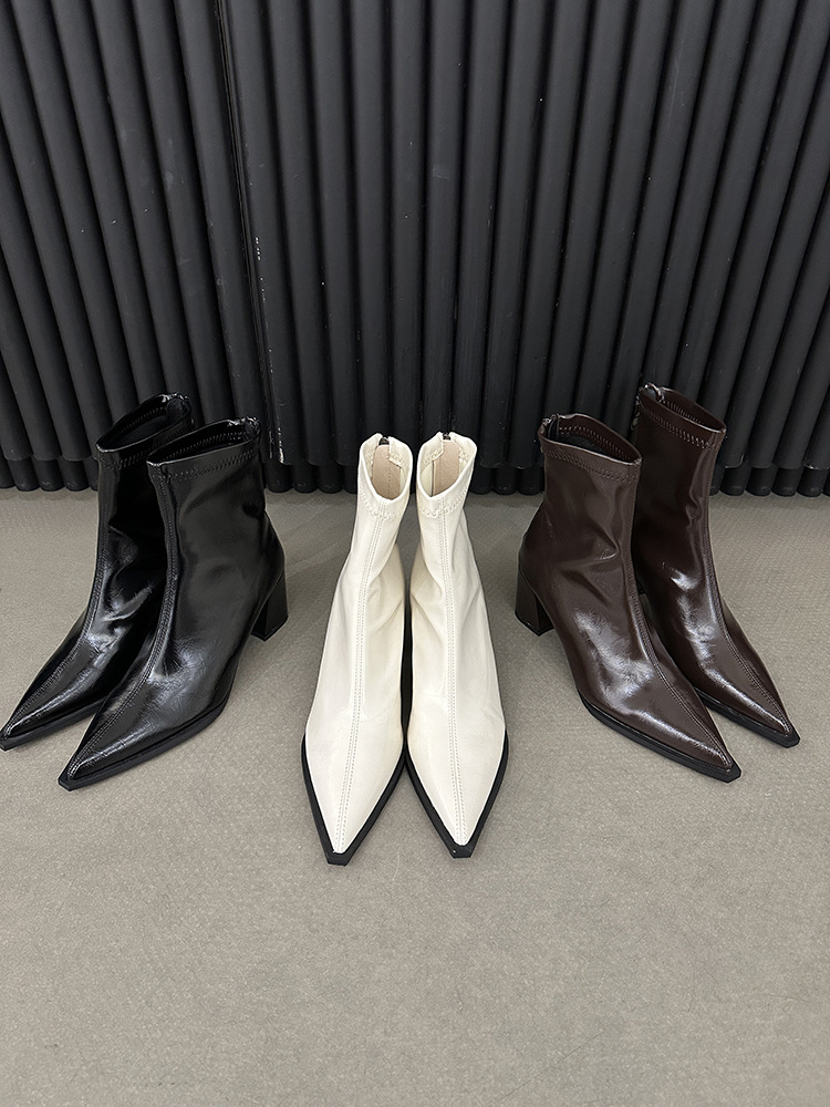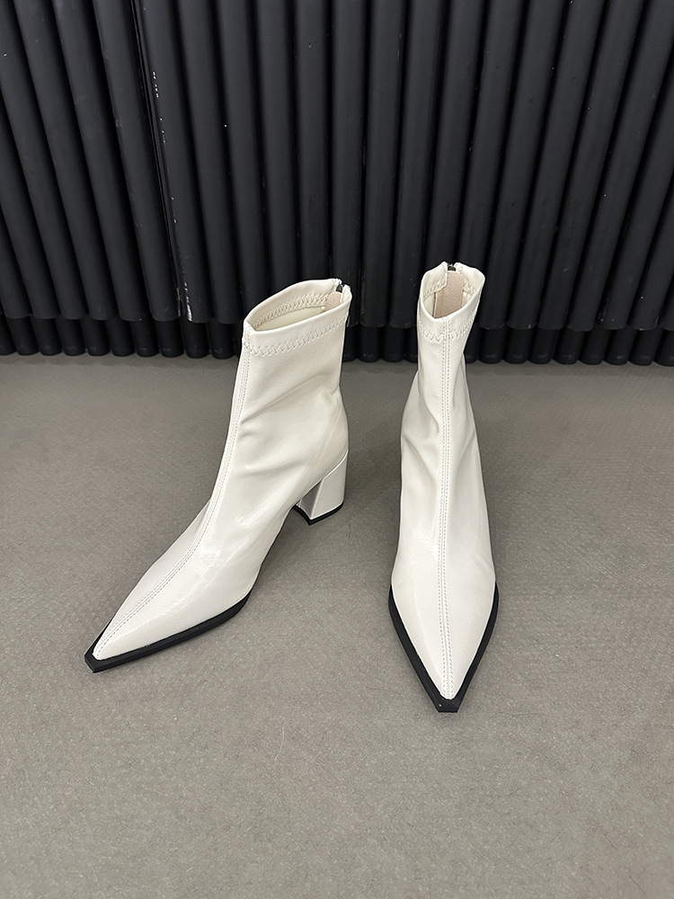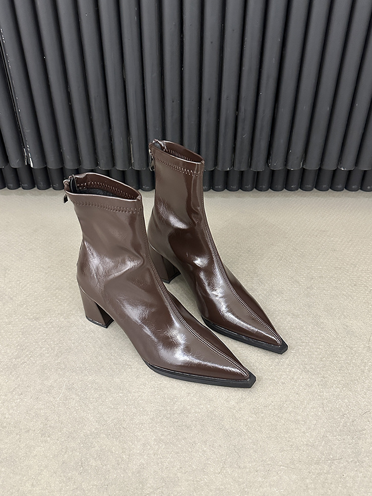 뾰족코 숏부츠 여성 신상 2025 가을 겨울 여성 부츠 하이힐 숏부츠 독특한 디자인 슬림 부츠 굵은 굽 부츠스토어 가기