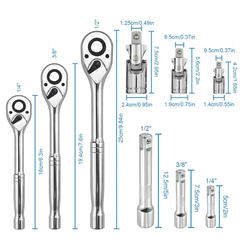 훌루 핸들 래칫 렌치 24 개 큰, 중간 및 작은 파리 1/2 3/8 1/4 양방향 빠른 렌치 자동 수리 도구