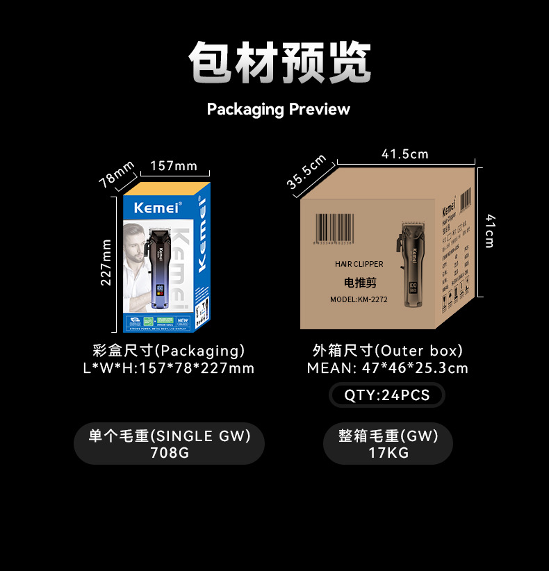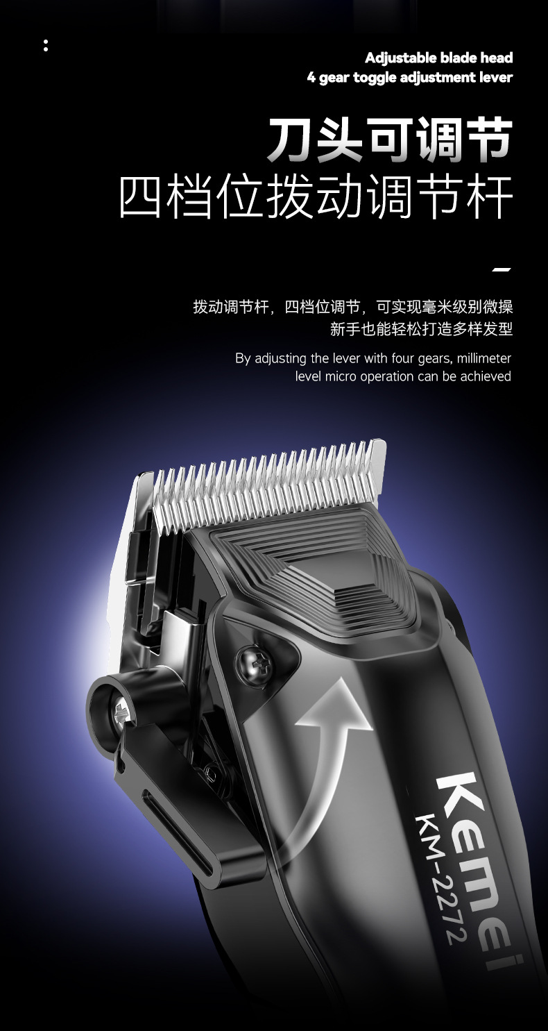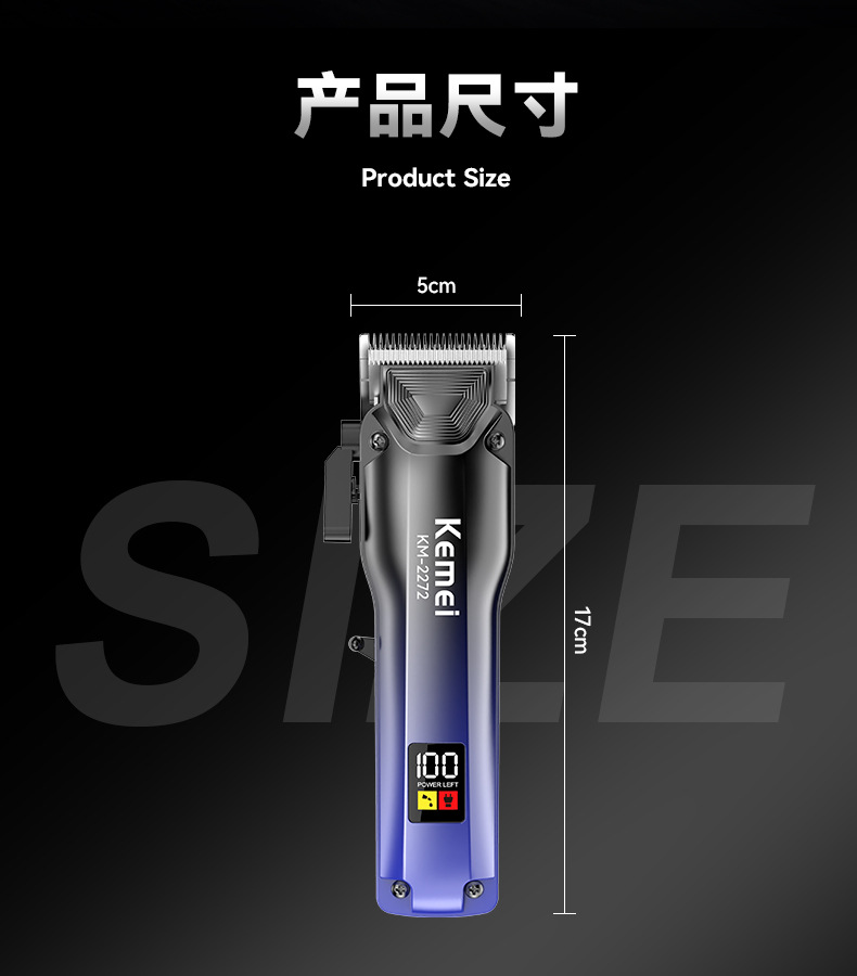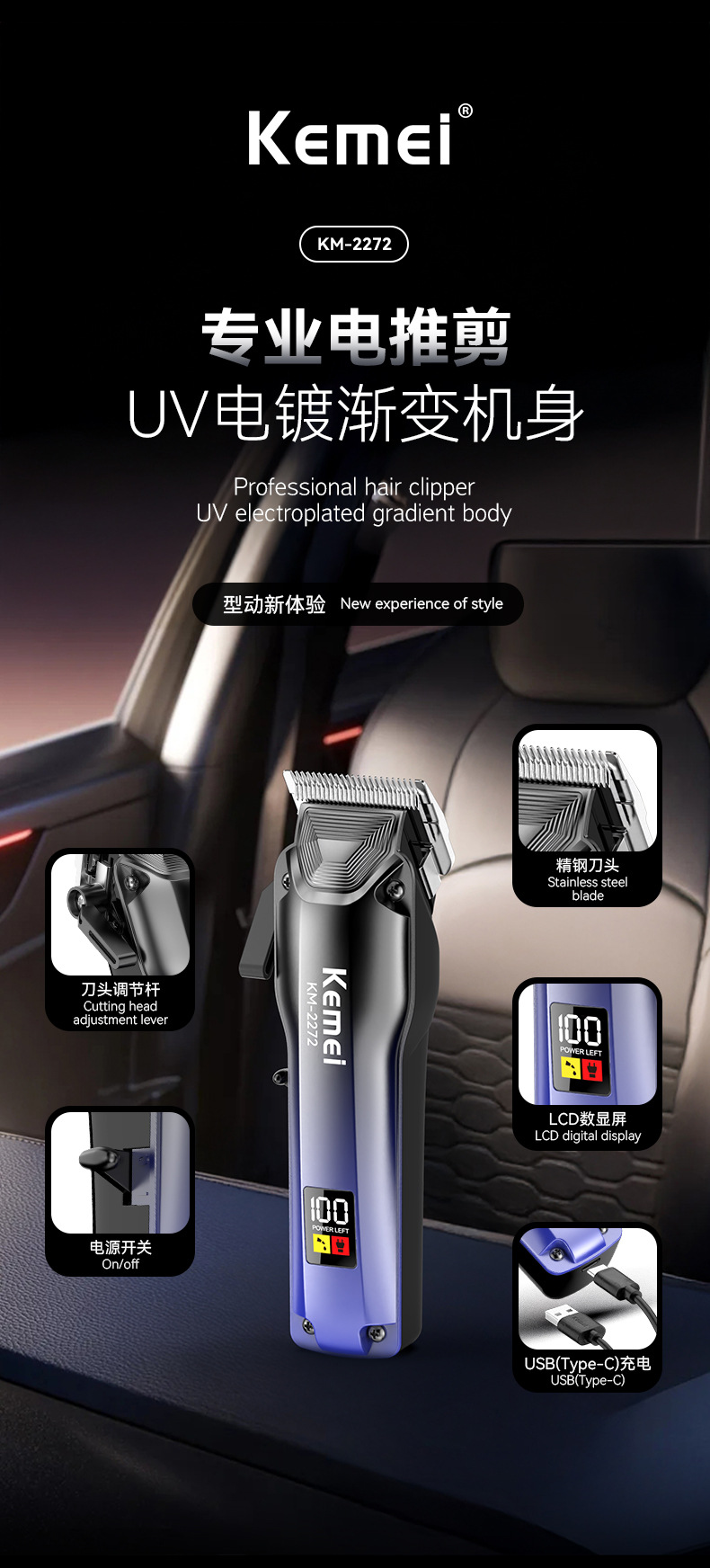 Kemei KM-2272 새로운 그라디언트 색상 디지털 디스플레이 헤어 클리퍼 헤어 살롱 전문 브러시리스 전기 클리퍼 USB 고속 충전 클리퍼