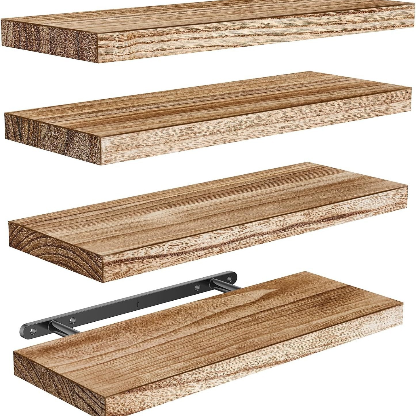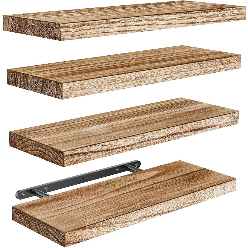 재고 아마존 나무 떠 다니는 선반 오동 나무 탄화 벽 매달려 선반 국경 간 거실 침실 서스펜션 랙