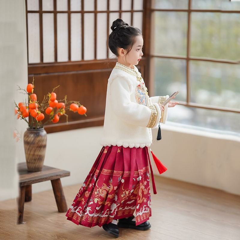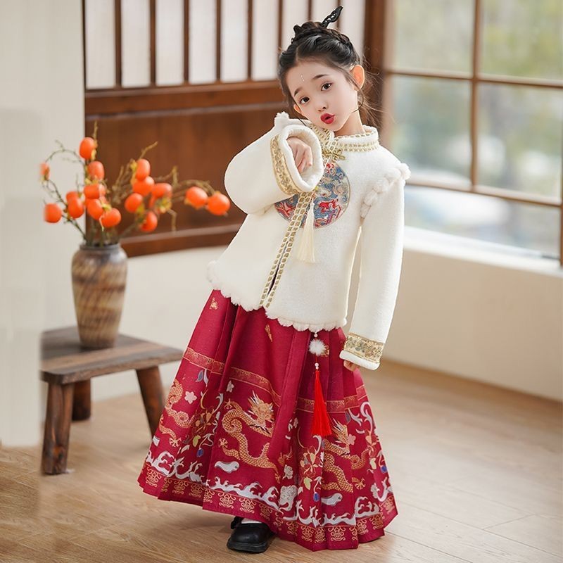 드래곤과 피닉스 청샹 말 얼굴 치마 소녀 겨울 한푸 기모 어린이 치마 원피스 2024 년 새 드래곤 년 옷스토어 가기