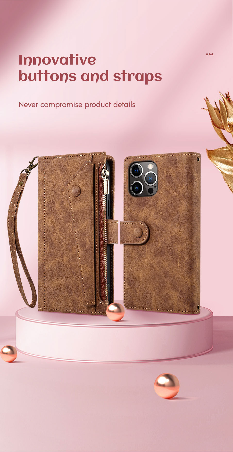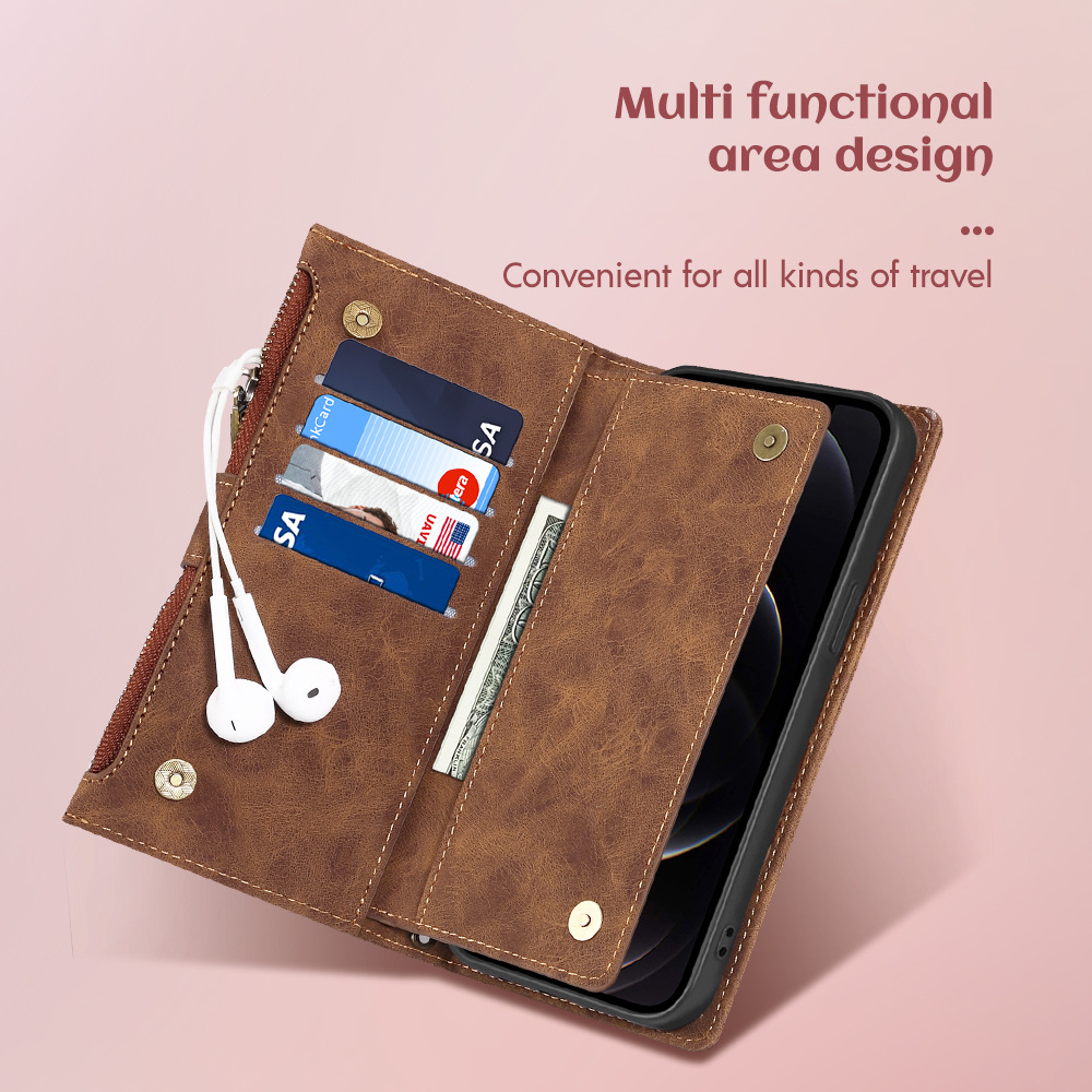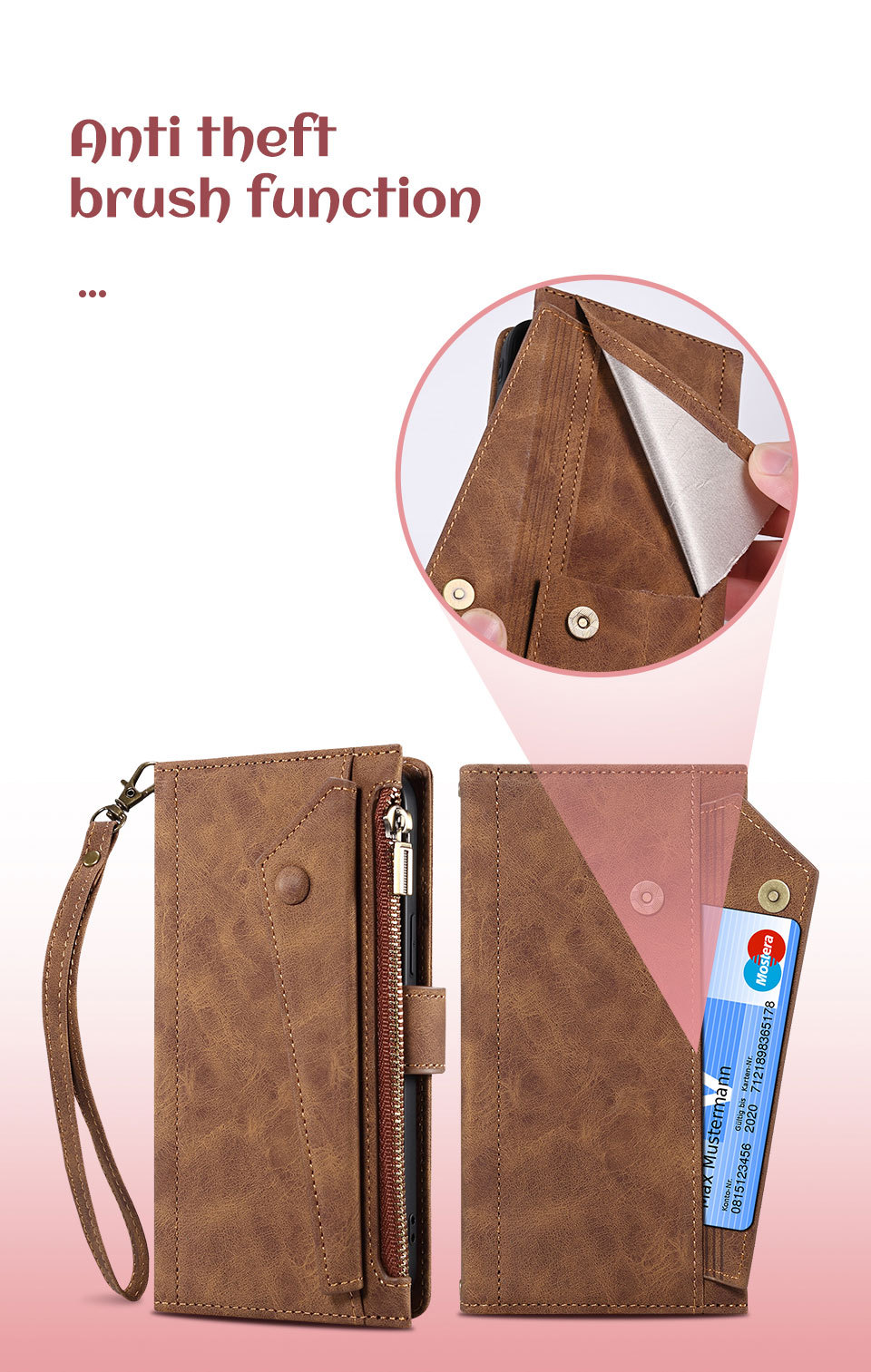 아이폰 16Pro 도난 방지 브러시 카드 플립 폰 가죽 케이스 삼성 S24FE 패션 크로스 바디 보호 케이스