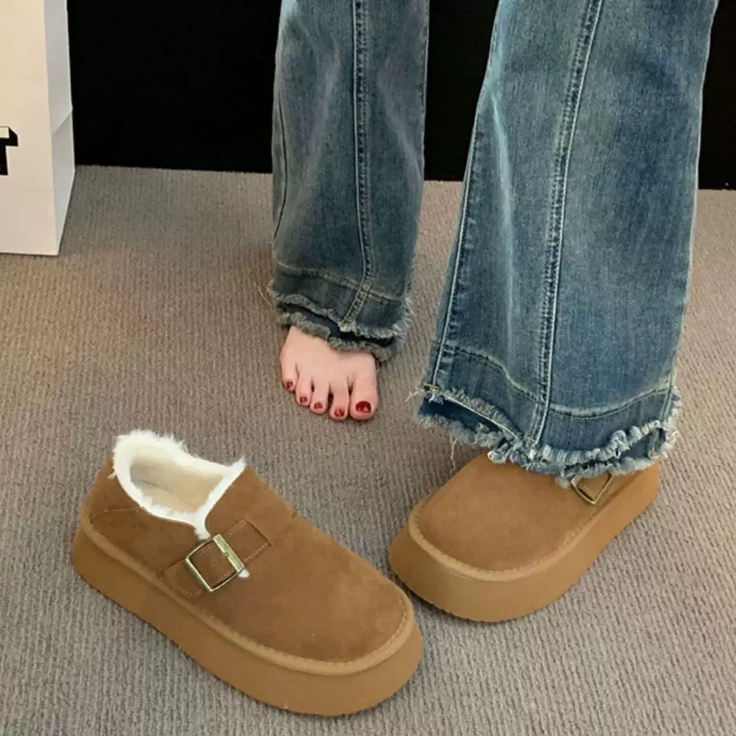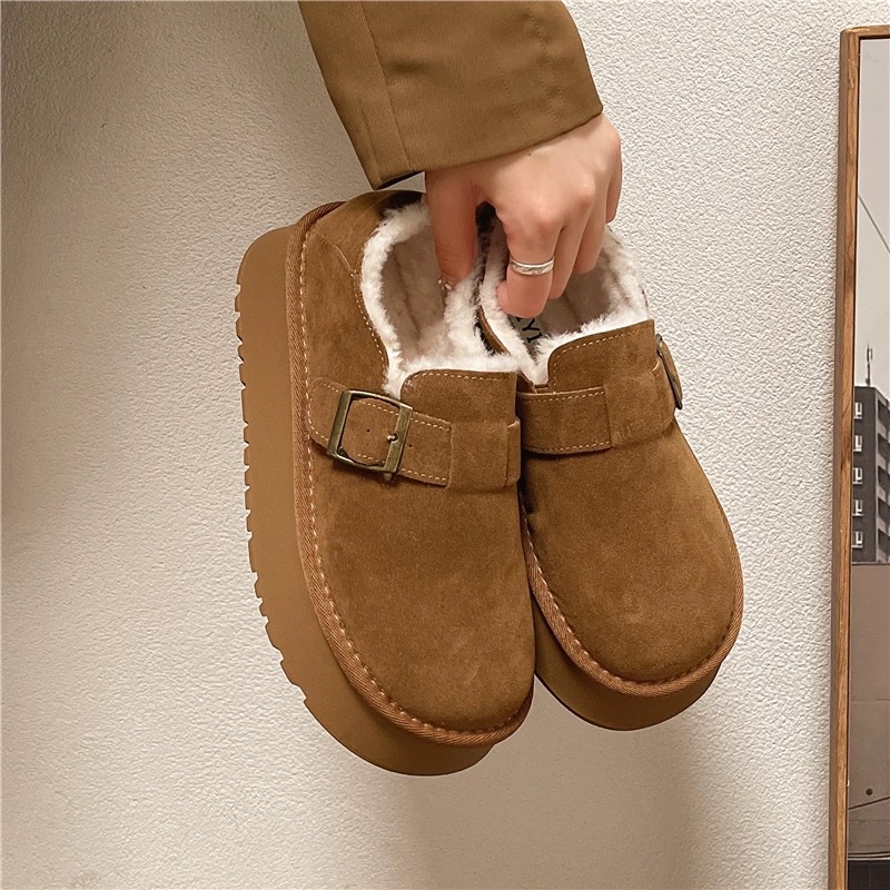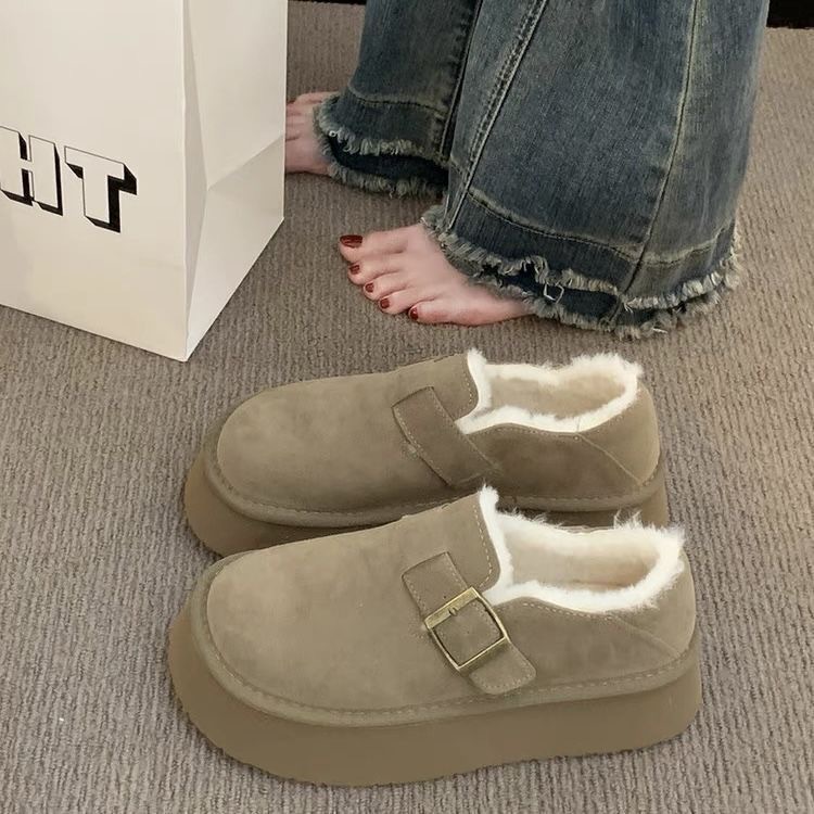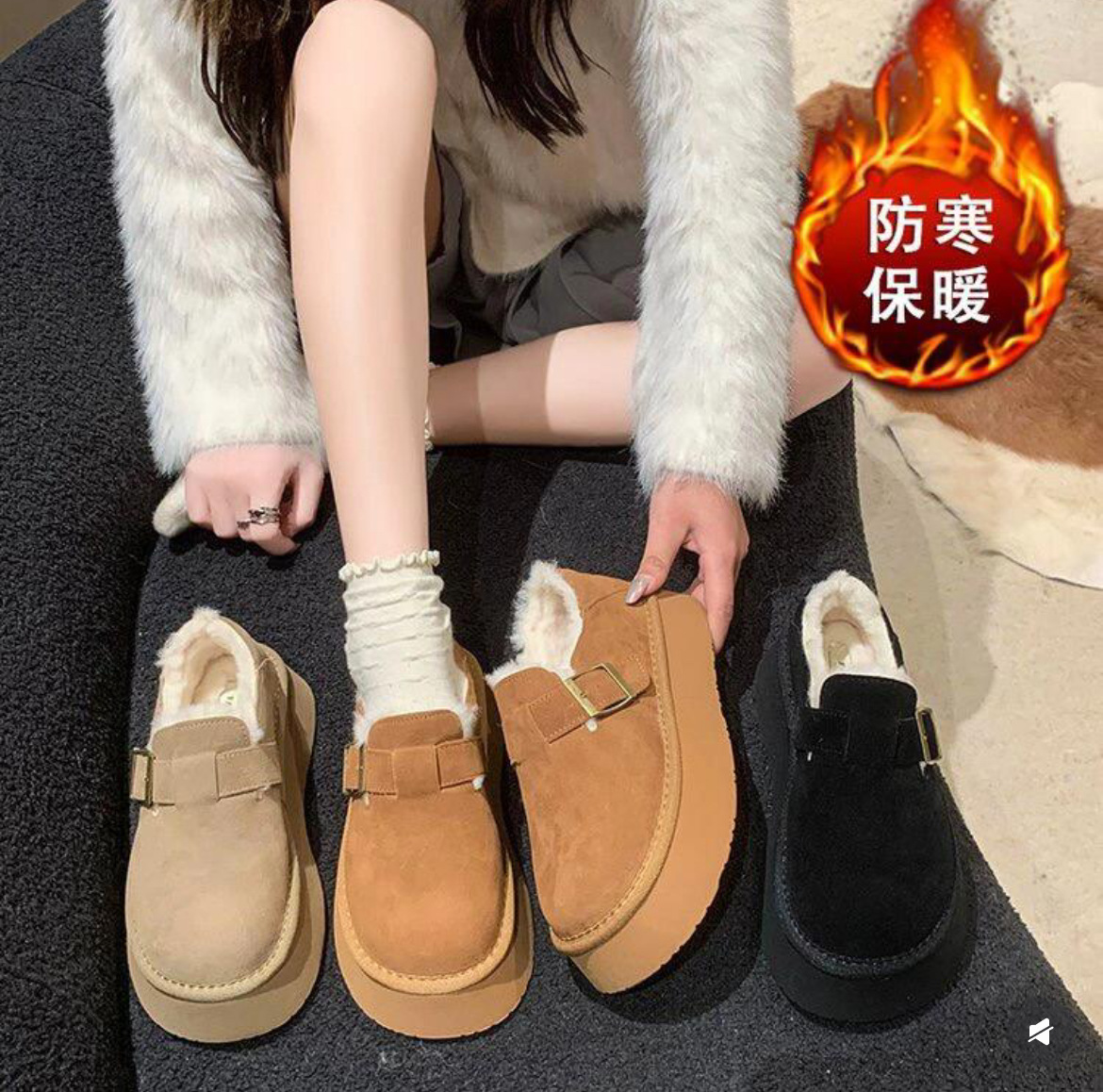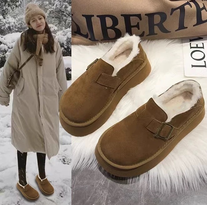 두꺼운 바닥 버클 기모 따뜻한 Birkenth 신발 낮은 스노우 부츠 2024 겨울 새로운 방수 짧은 부츠 미끄럼 방지 코튼 신발스토어 가기