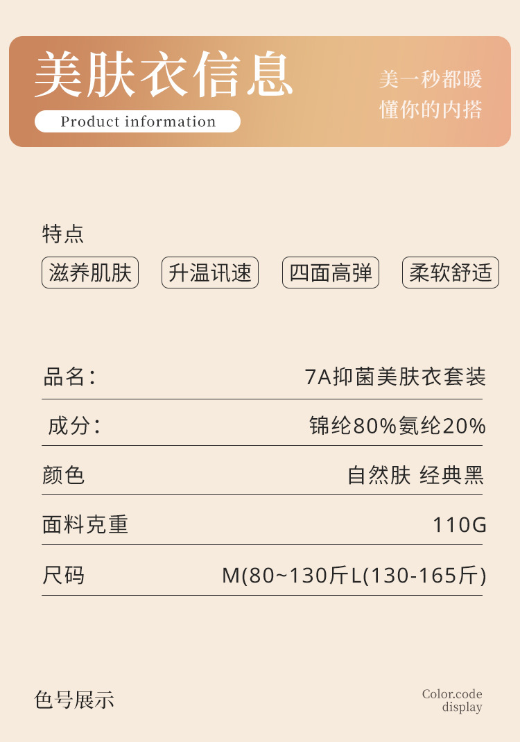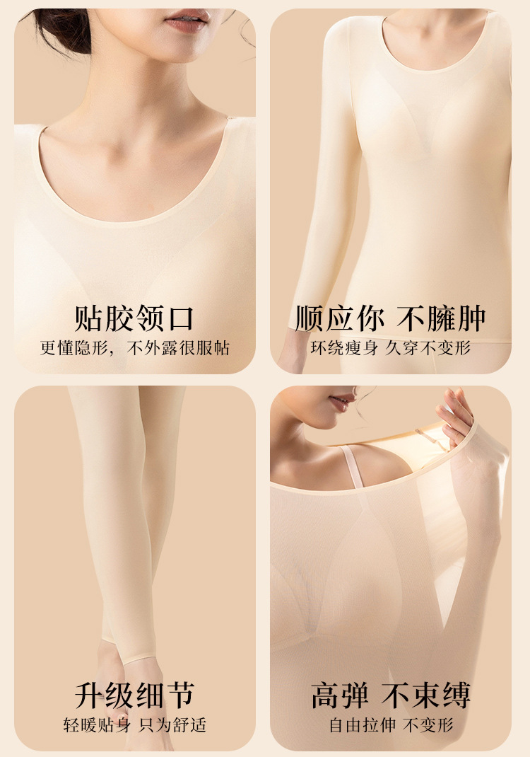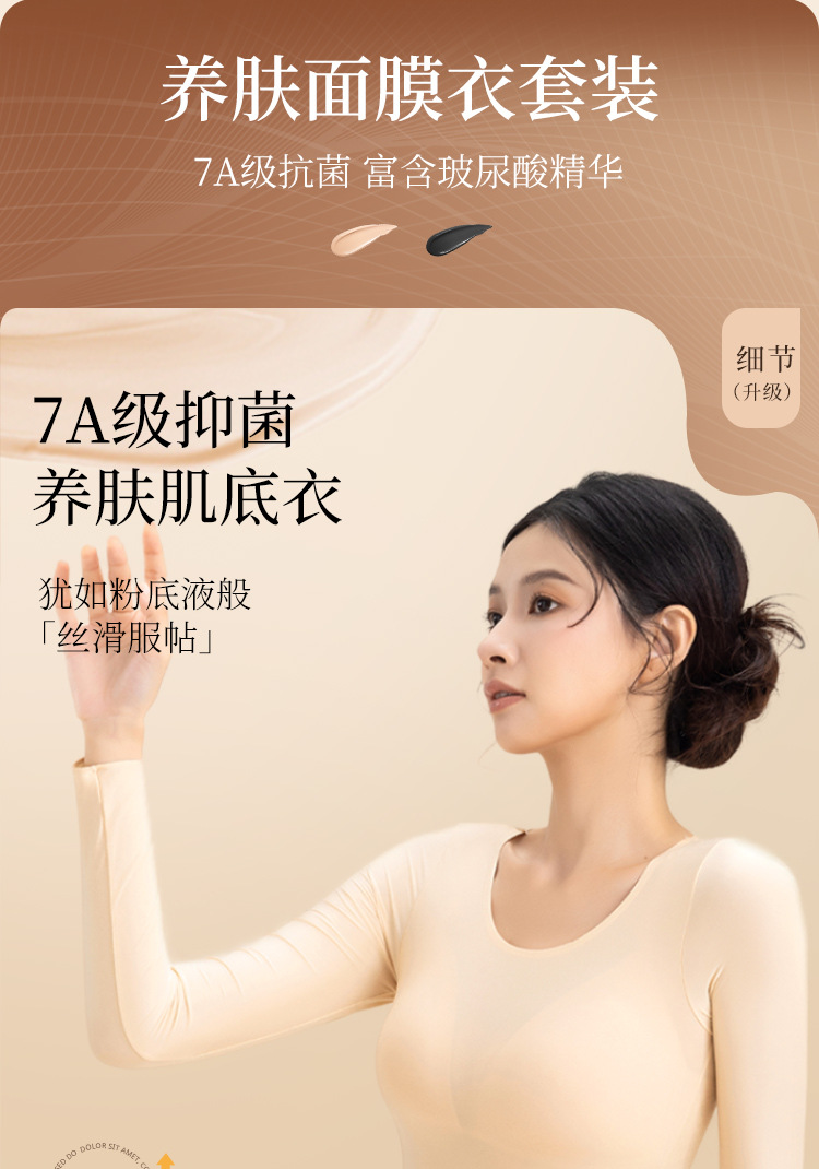 7a Bacteriostatic 울트라 얇은 피부 미화 의류 난방베이스 긴팔 가을 옷 긴팔 가을 바지 Hyaluronic Acid Muscle Base 여성용 따뜻한 세트스토어 가기