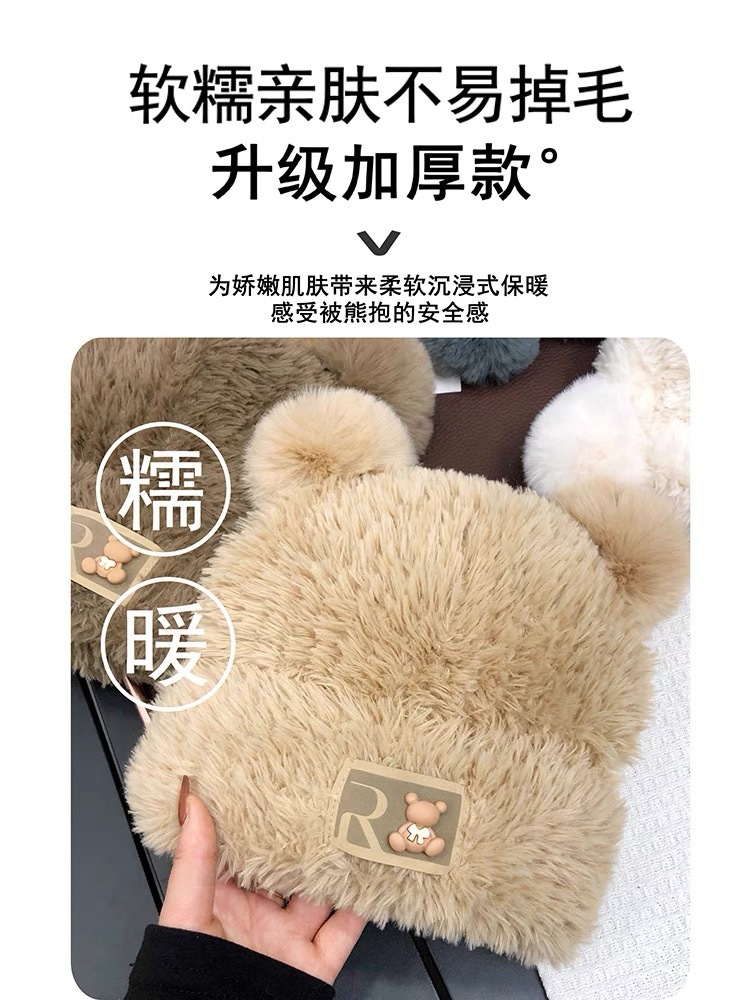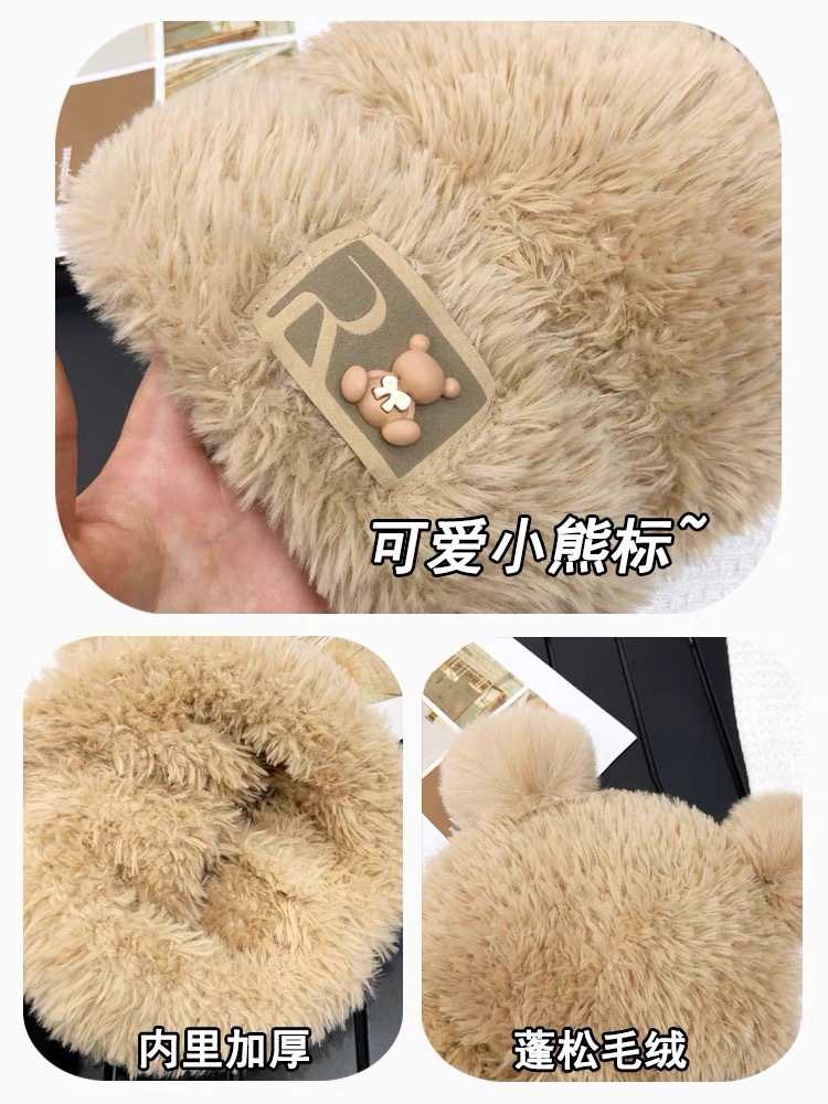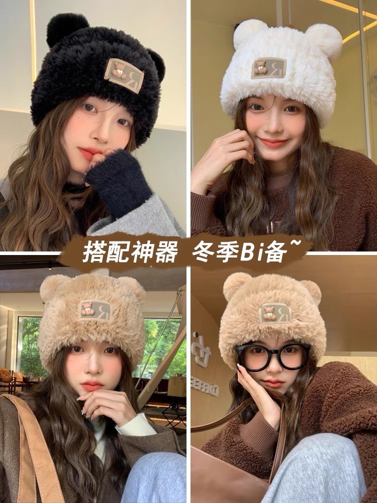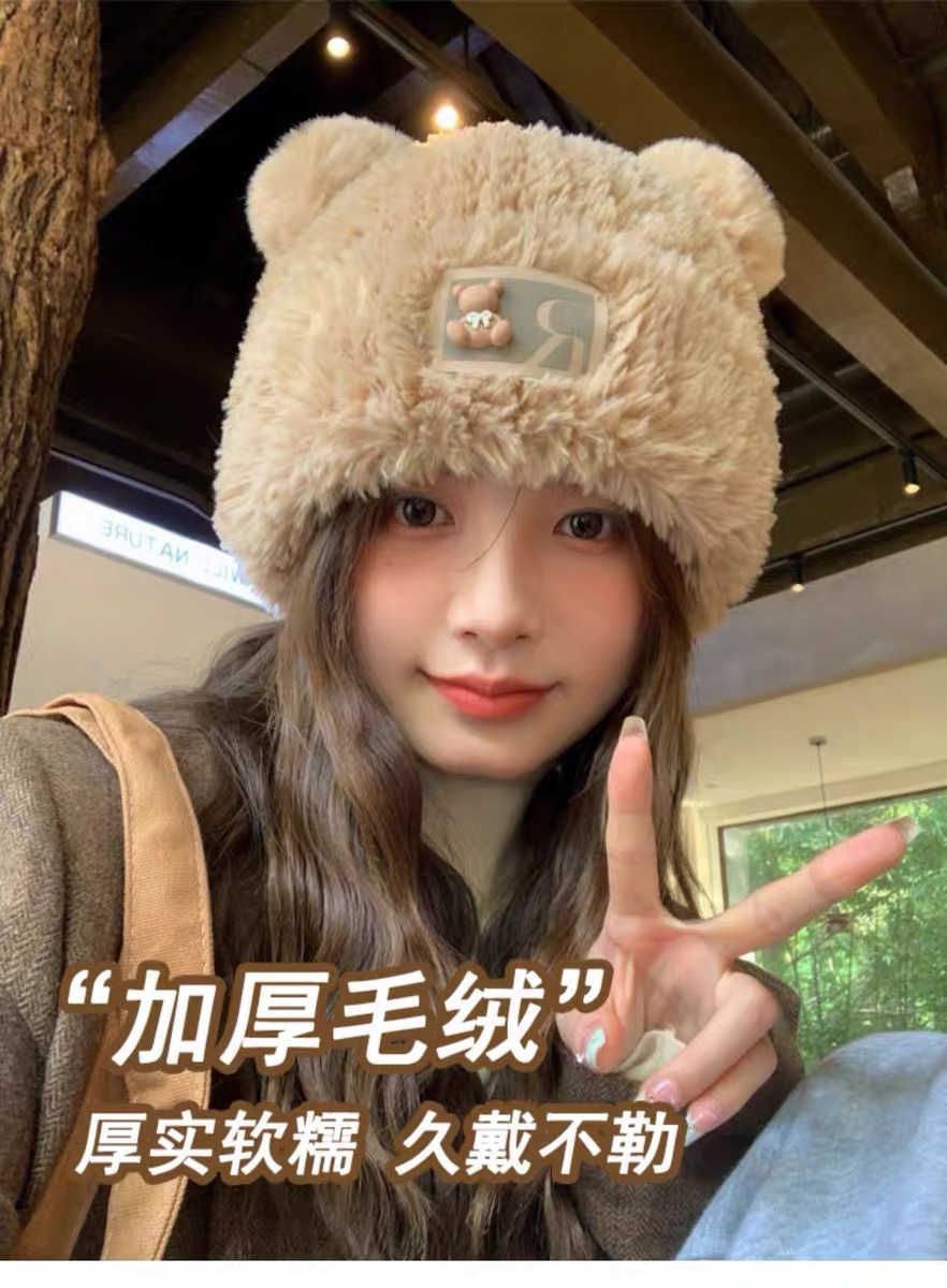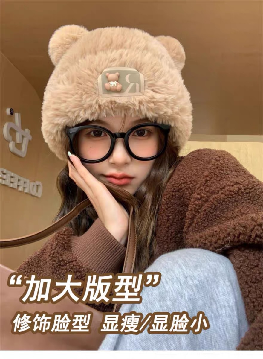 귀여운 곰돌이 모직 모자 여성용 겨울 2025년 인기 플러시 따뜻한 모자 가을 겨울 큰 머리 둘레 니트 모자스토어 가기
