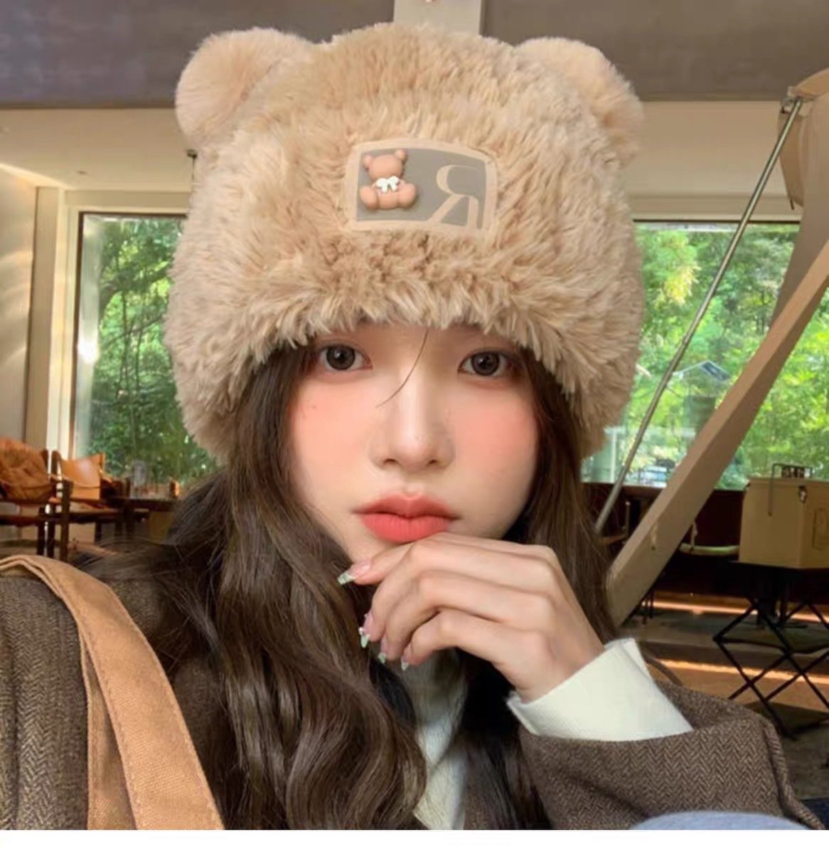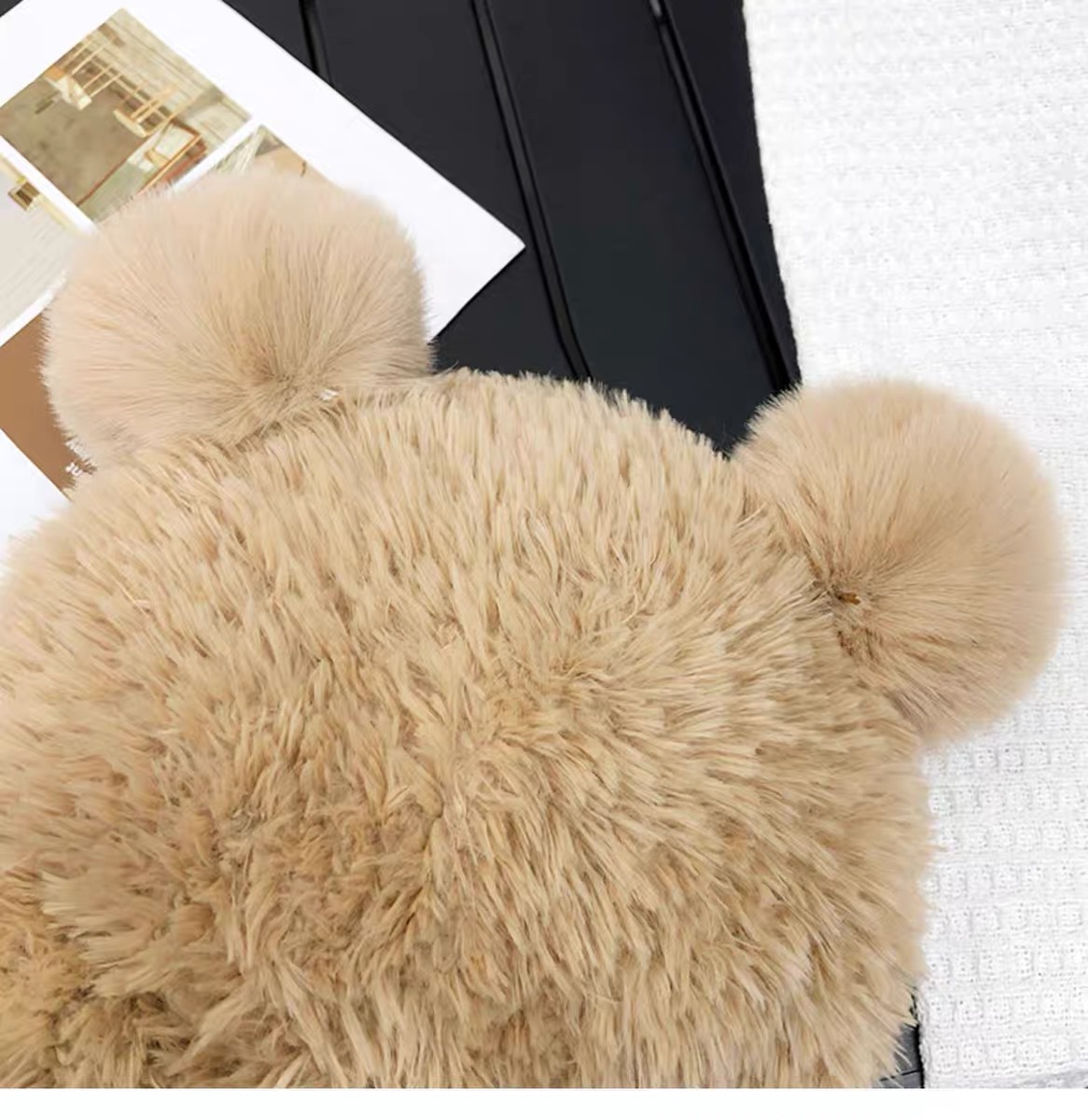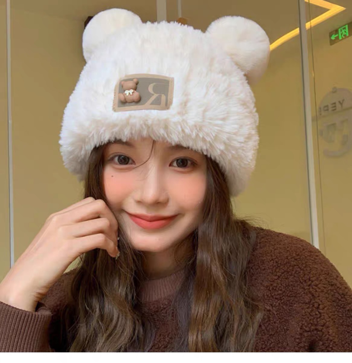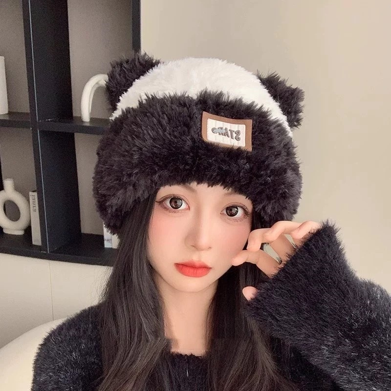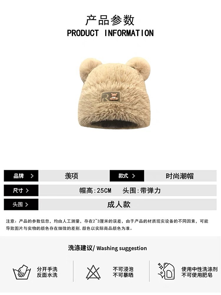 귀여운 곰돌이 모직 모자 여성용 겨울 2025년 인기 플러시 따뜻한 모자 가을 겨울 큰 머리 둘레 니트 모자스토어 가기