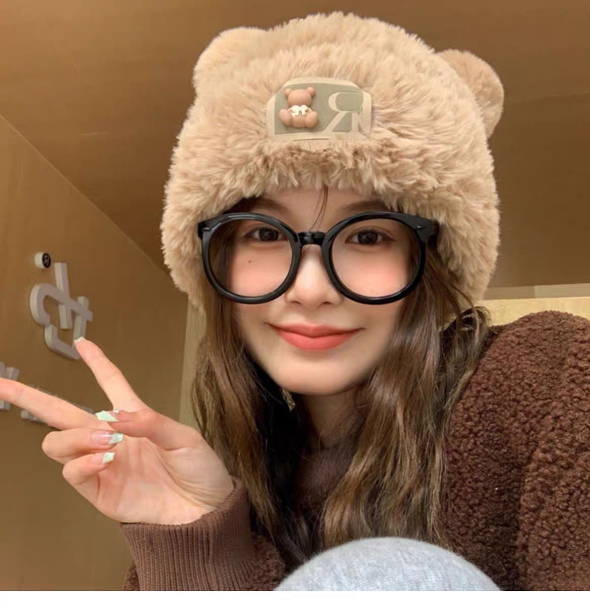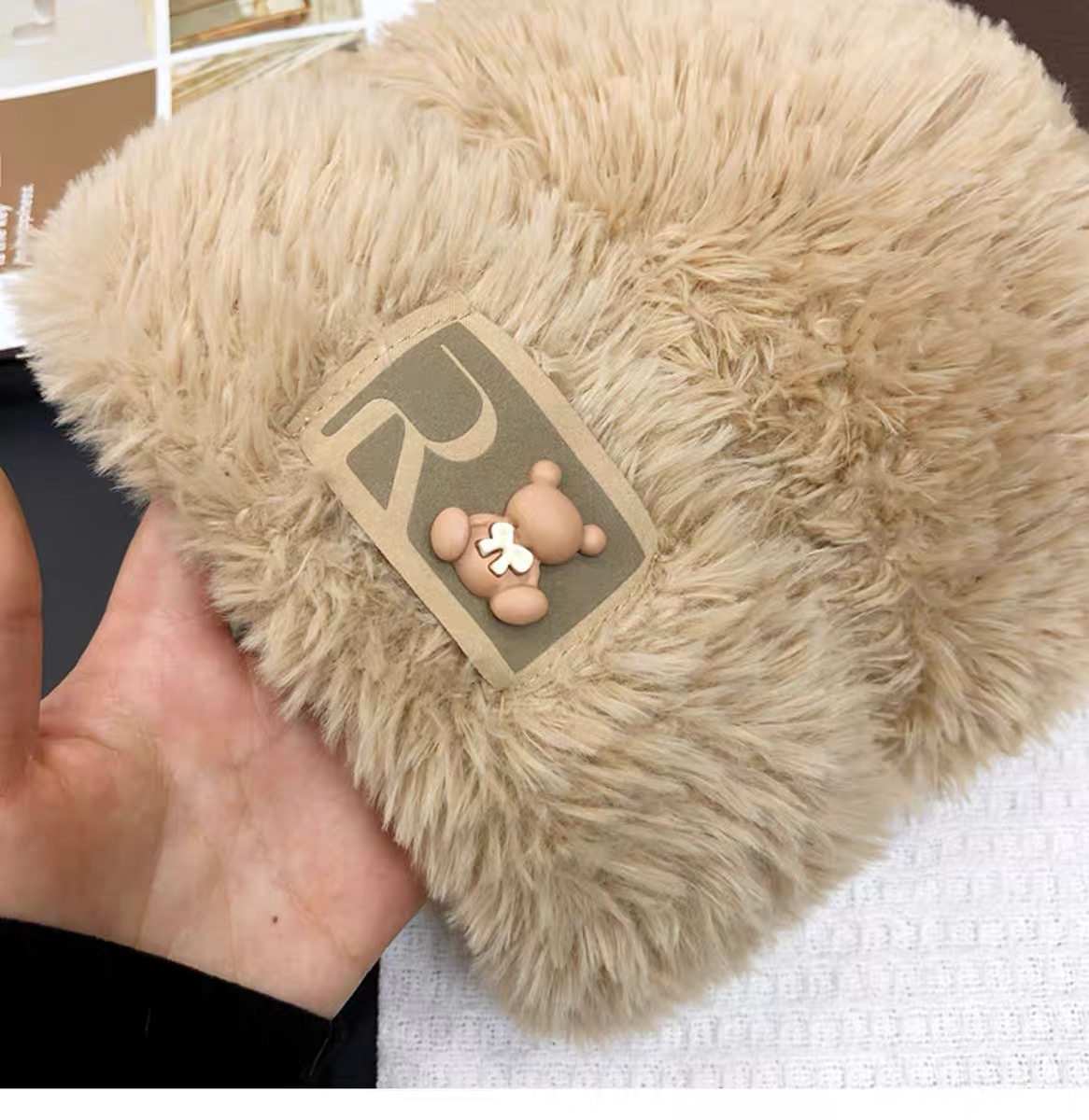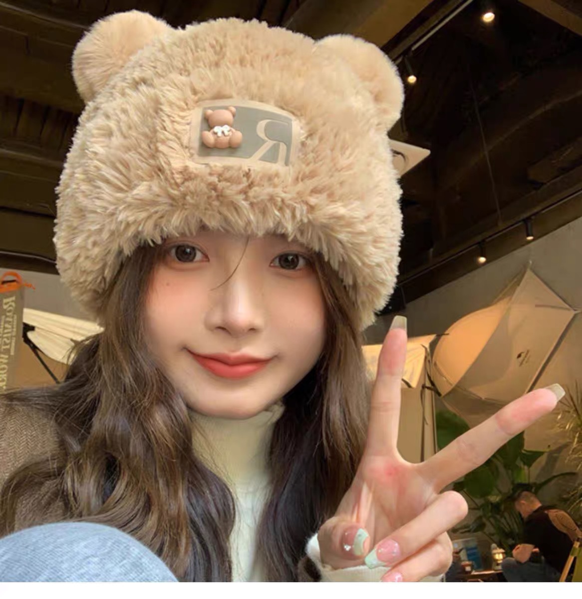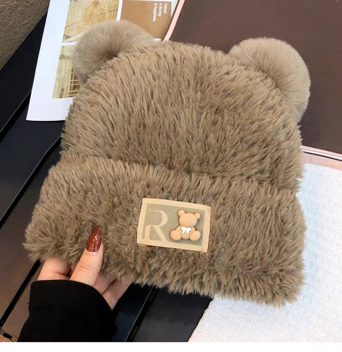 귀여운 곰돌이 모직 모자 여성용 겨울 2025년 인기 플러시 따뜻한 모자 가을 겨울 큰 머리 둘레 니트 모자스토어 가기