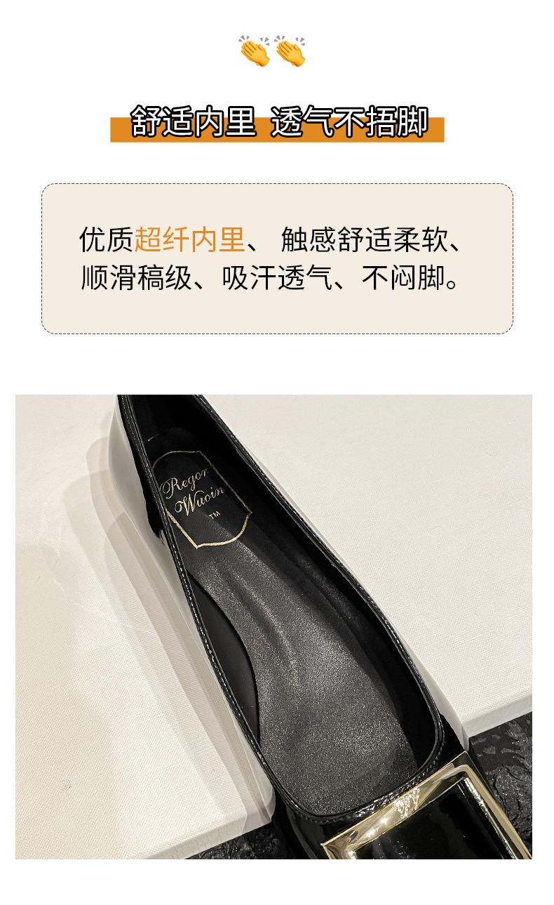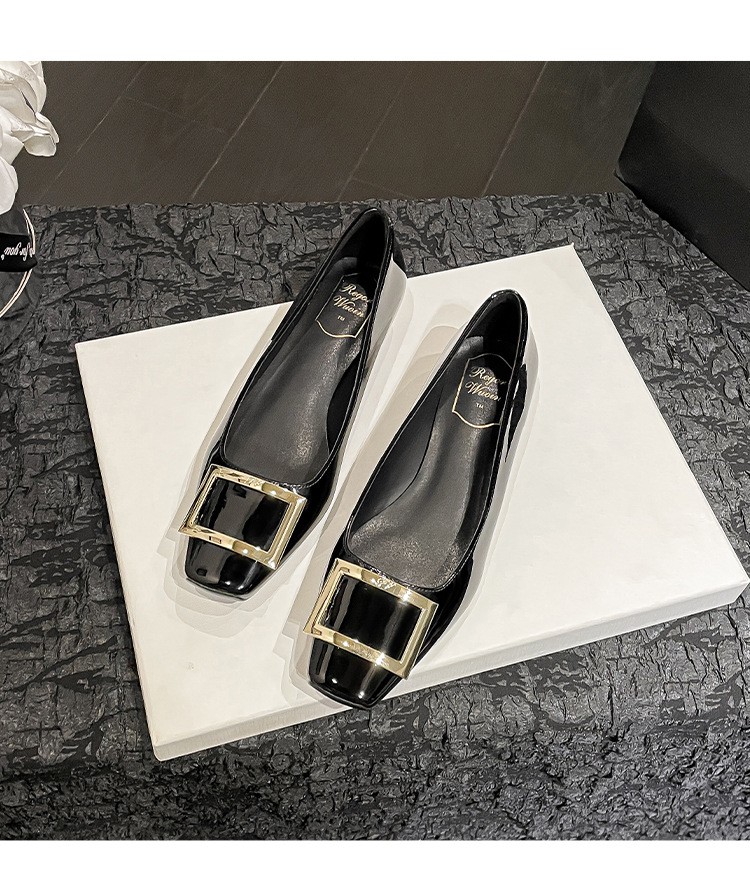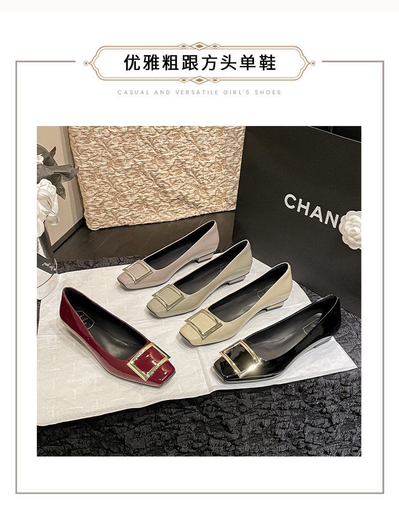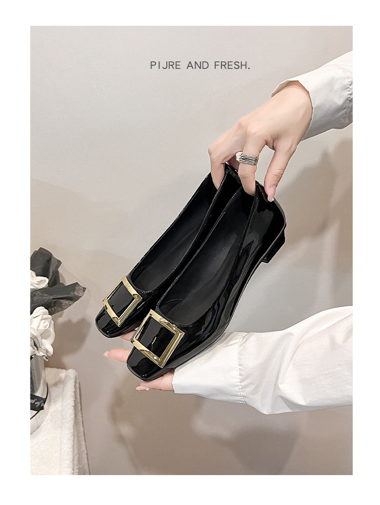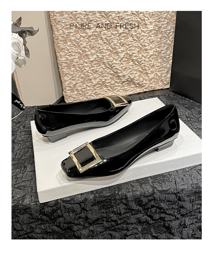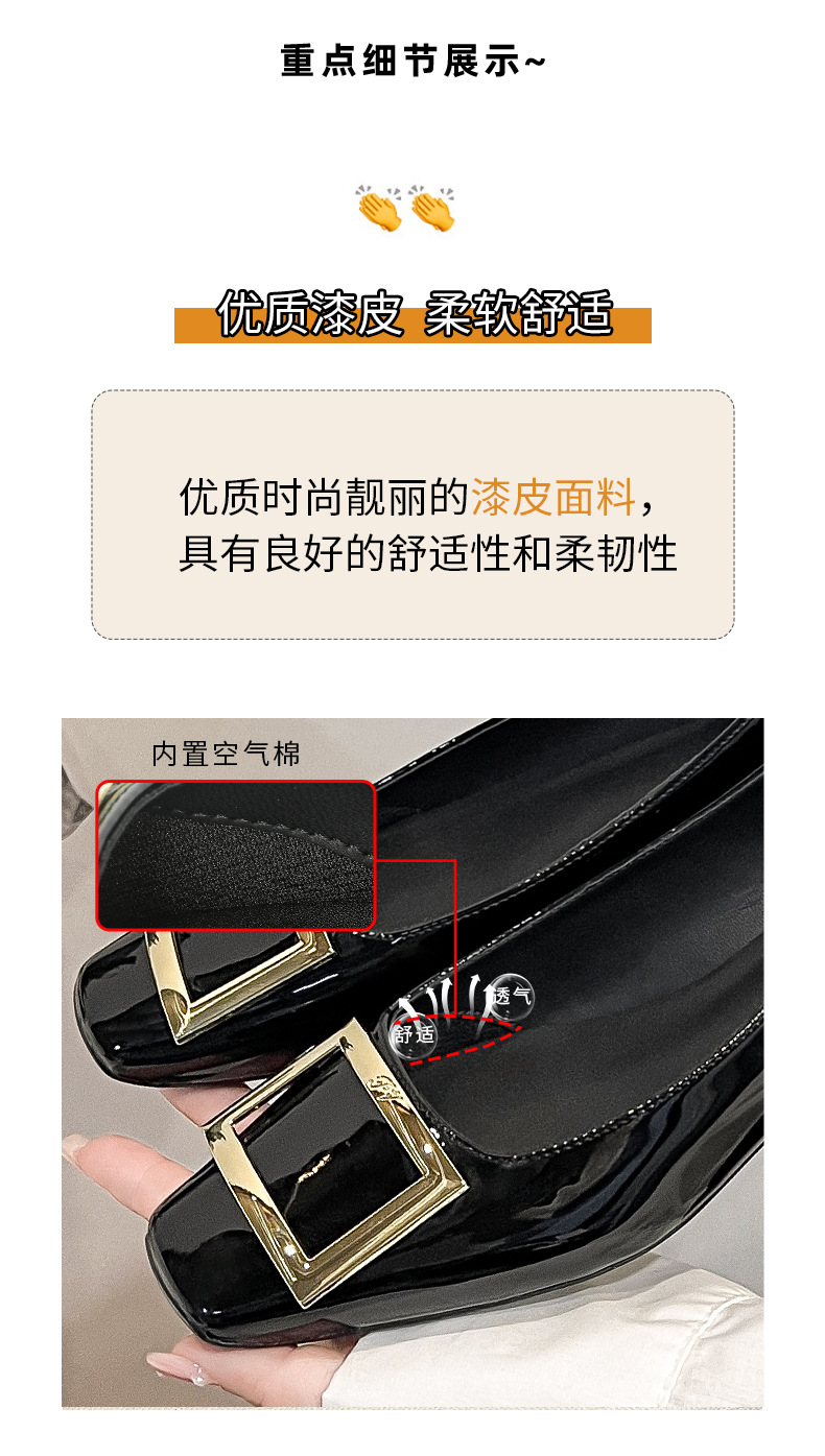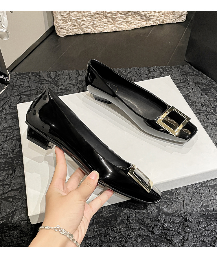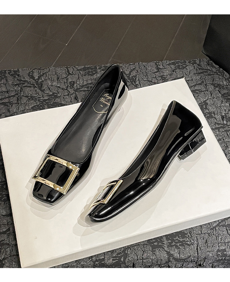네드 스퀘어 토 여성 신발 사각 버클 블랙 두꺼운 힐 특허 가죽 신부 들러리 신발 통근 신발 웨딩 신발 rv 얕은 여성 신발스토어 가기