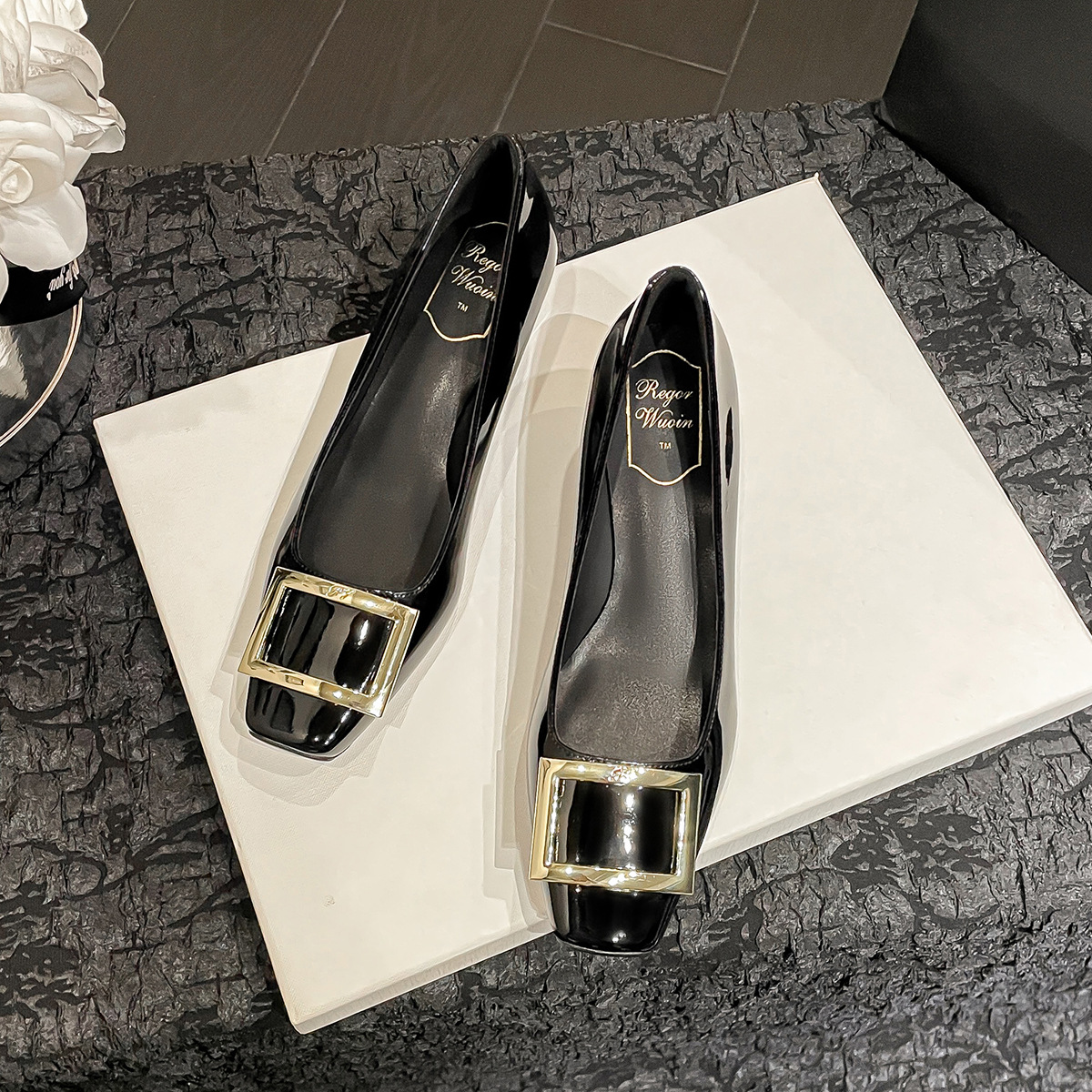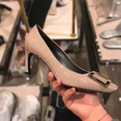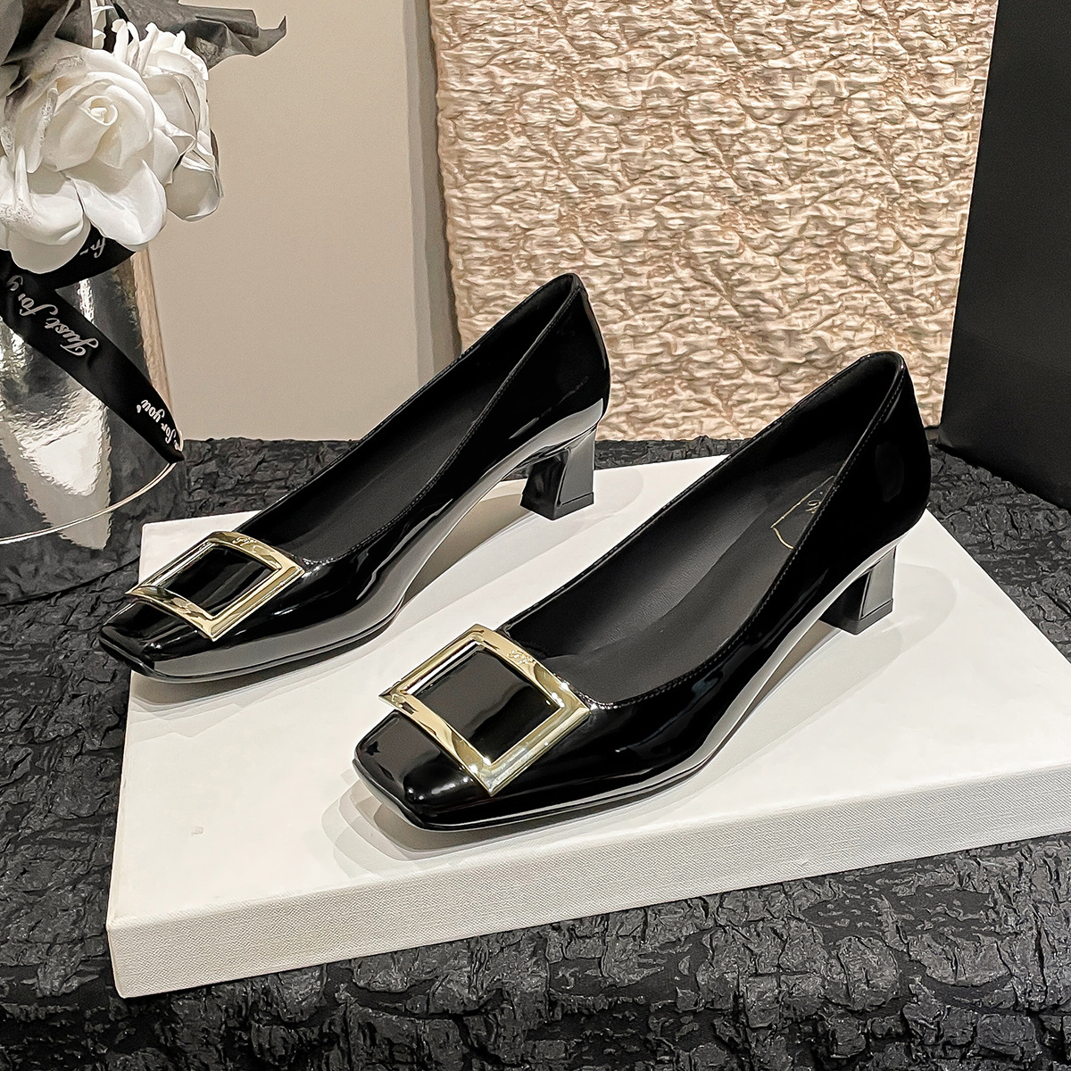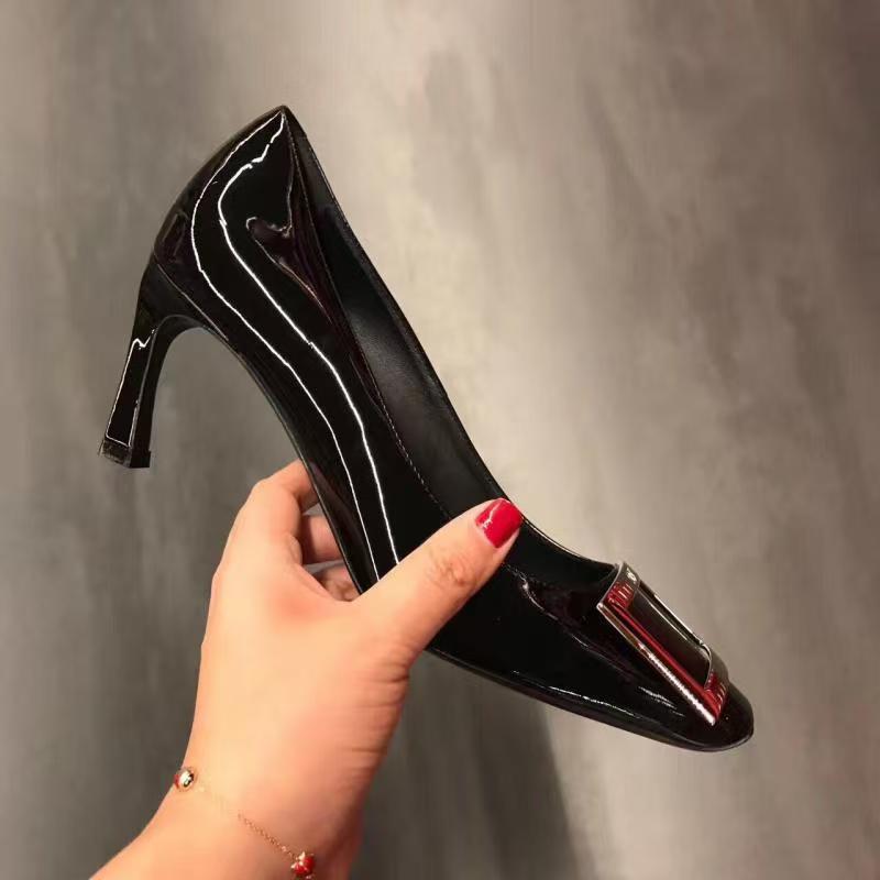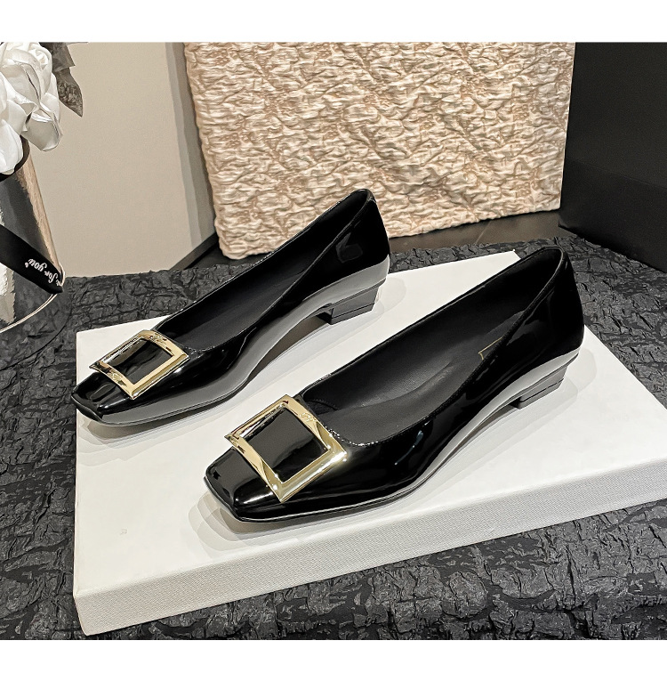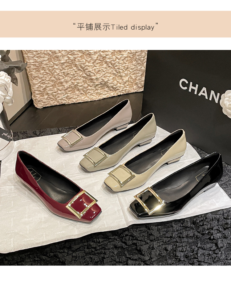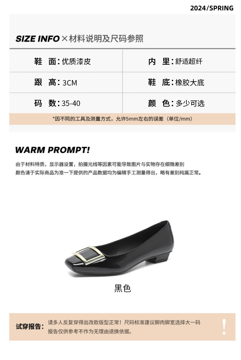 네드 스퀘어 토 여성 신발 사각 버클 블랙 두꺼운 힐 특허 가죽 신부 들러리 신발 통근 신발 웨딩 신발 rv 얕은 여성 신발스토어 가기