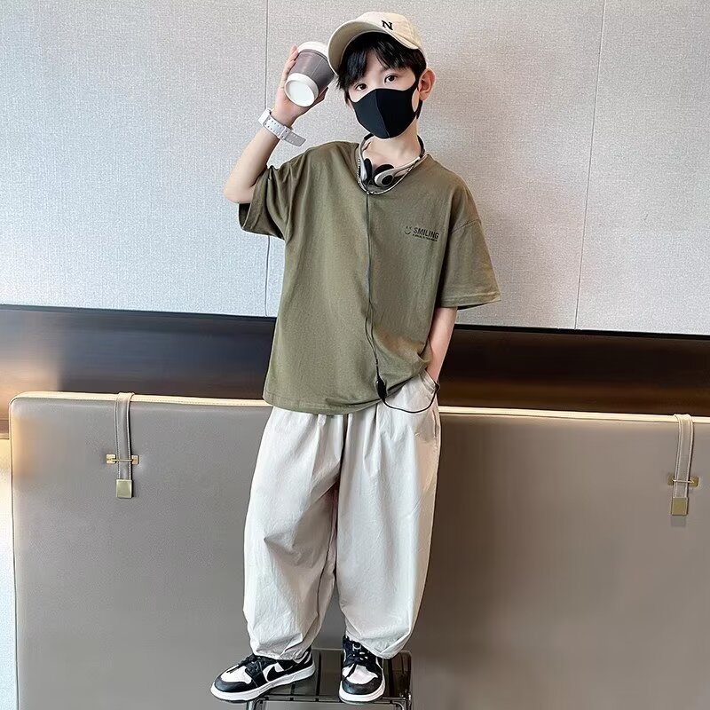 어린이 착용 소년 여름 착용 스포츠 세트 2024 새로운 스타일 큰 어린이 여름 잘 생긴 여름 소년의 서양식 패션 브랜드스토어 가기