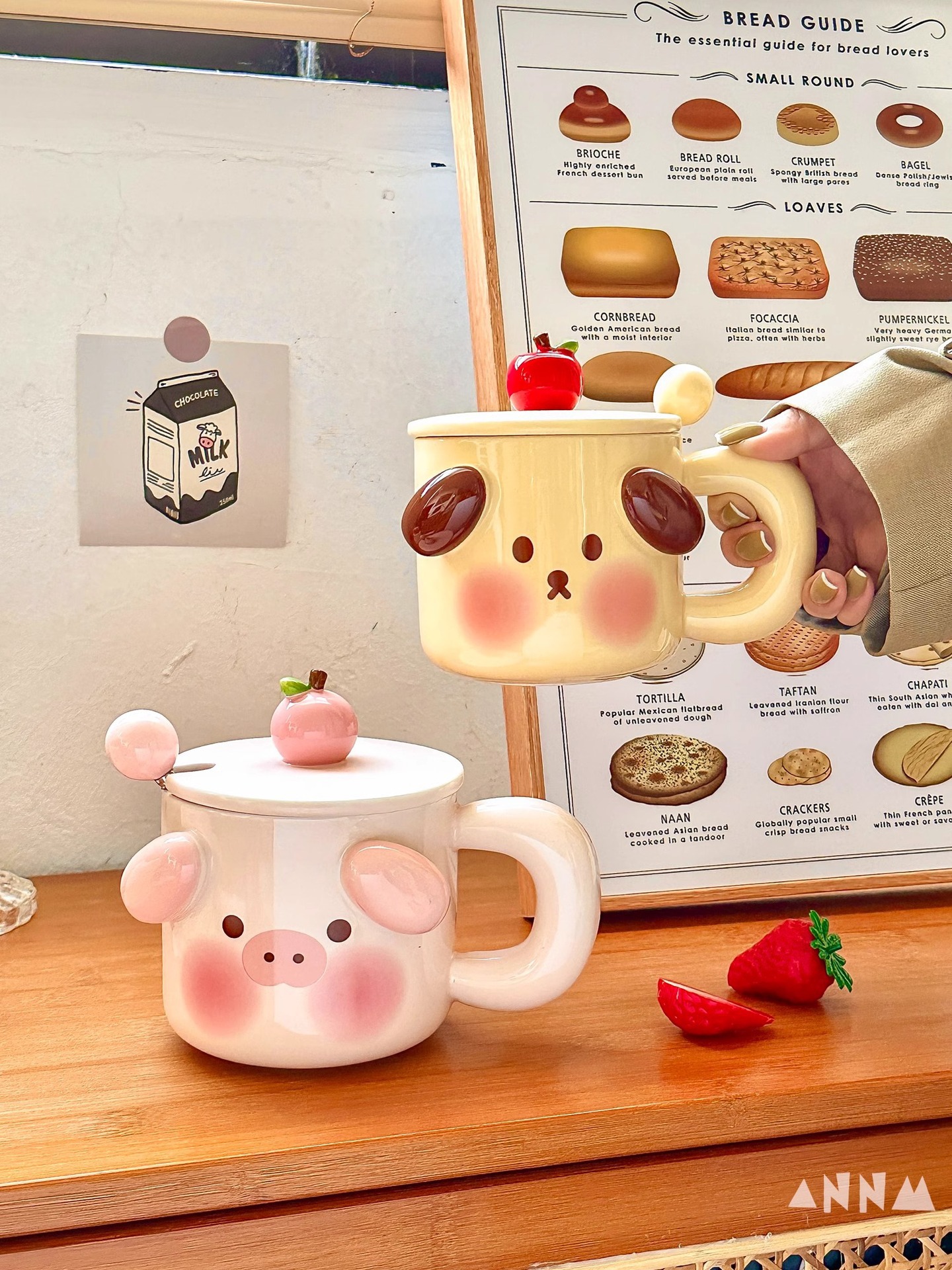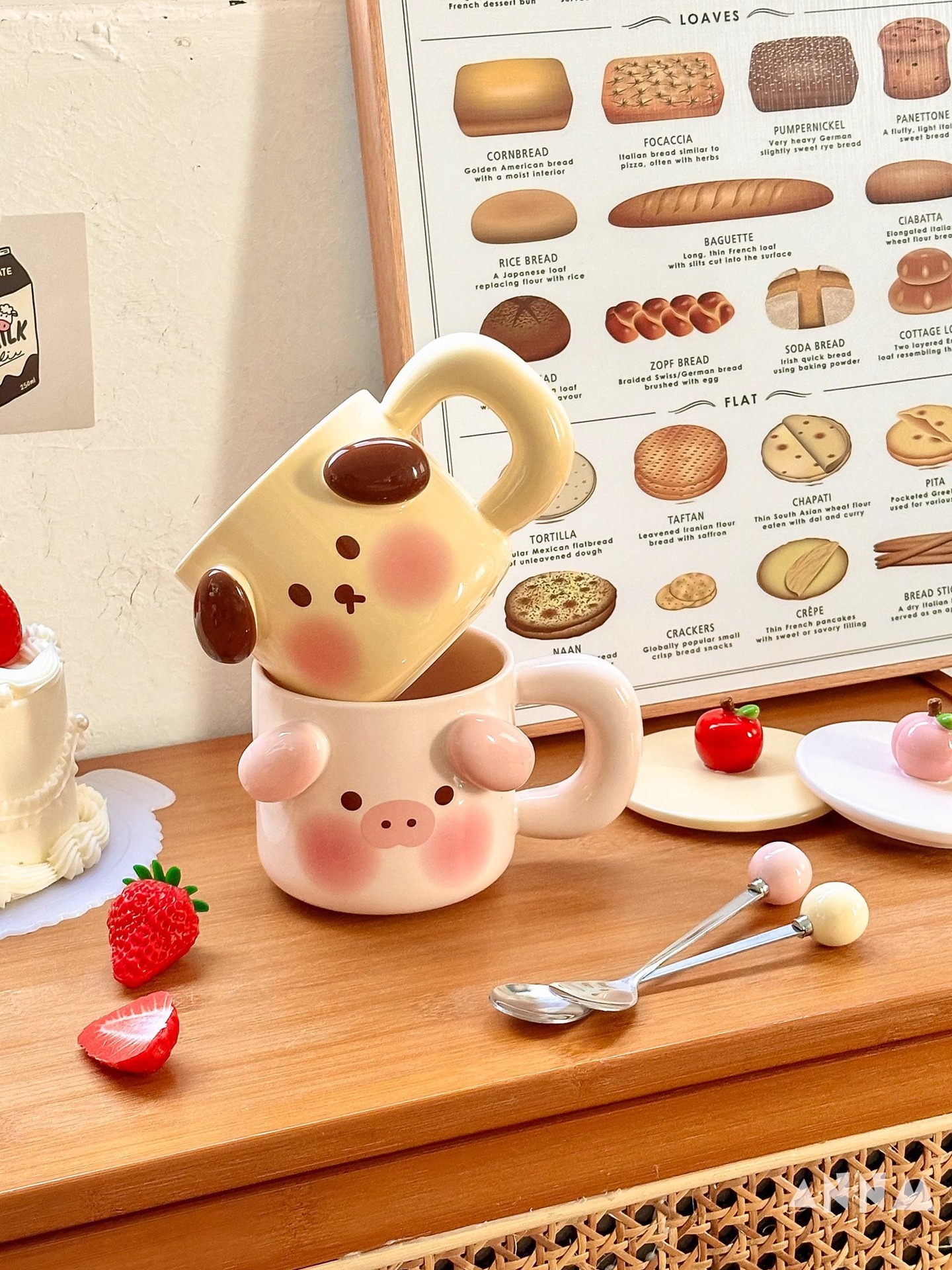 창조적 인 돼지 만화 귀여운 세라믹 컵 머그잔 홈 선물 컵 우유 컵 커플의 물 컵 아침 식사 컵