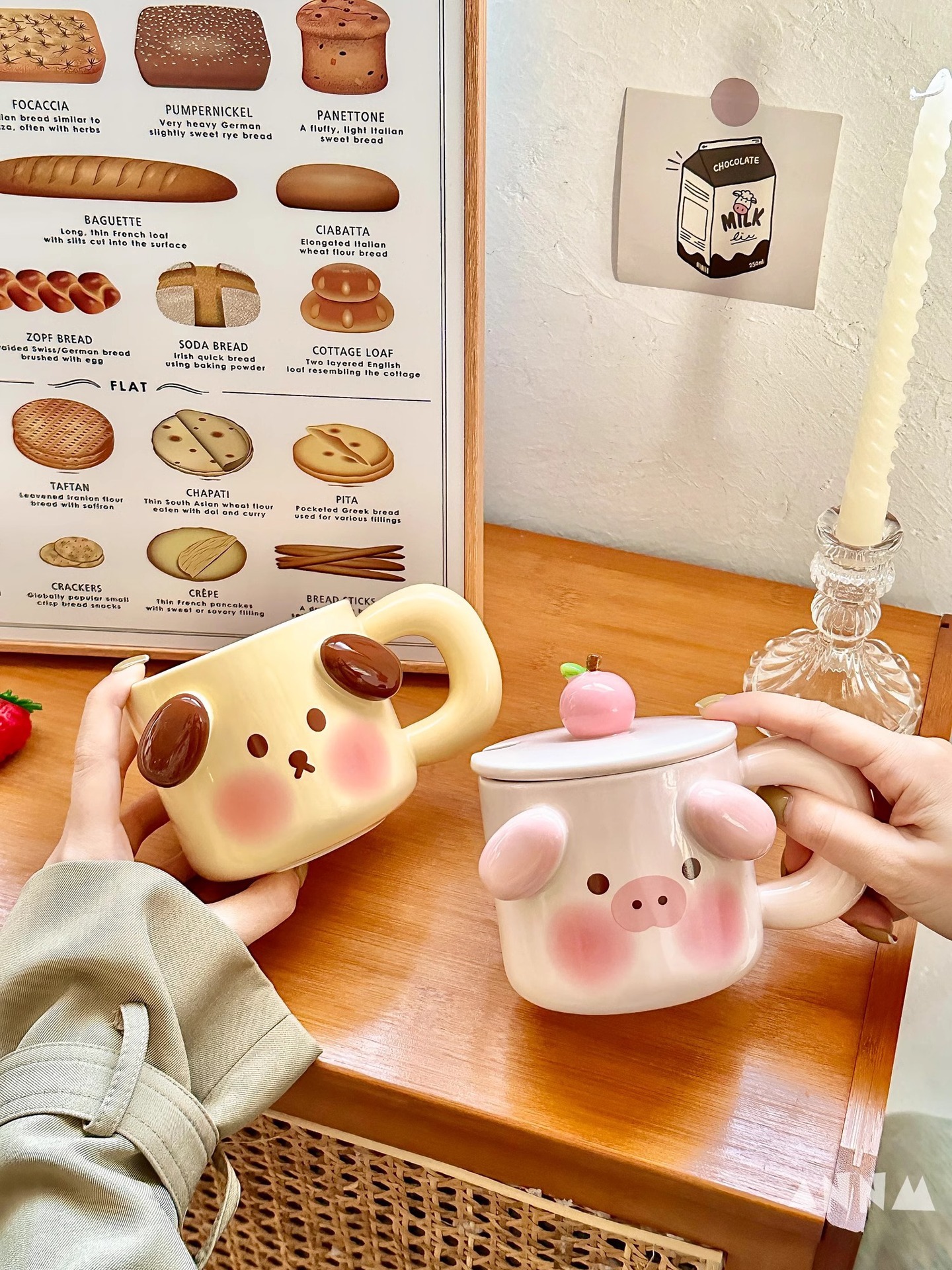 창조적 인 돼지 만화 귀여운 세라믹 컵 머그잔 홈 선물 컵 우유 컵 커플의 물 컵 아침 식사 컵스토어 가기