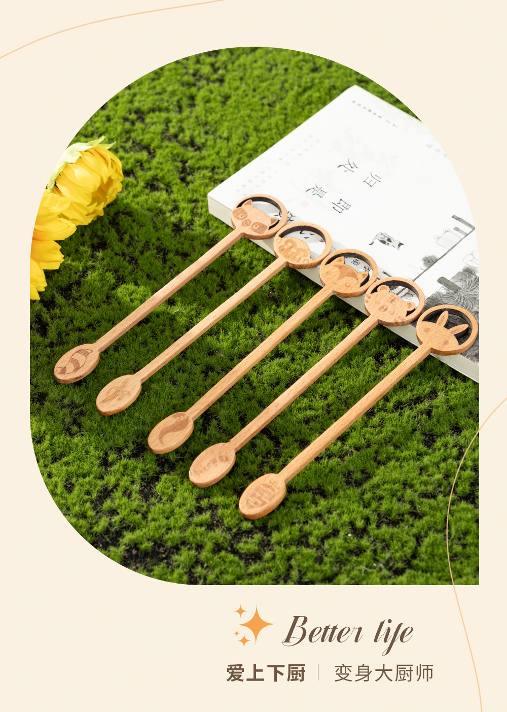 인터넷 축하 긴 손잡이 허니 스푼 너도밤 나무 혼합 숟가락 가구 창조적 인 커피 혼합 스틱 창조적 인 만화 동물 숟가락