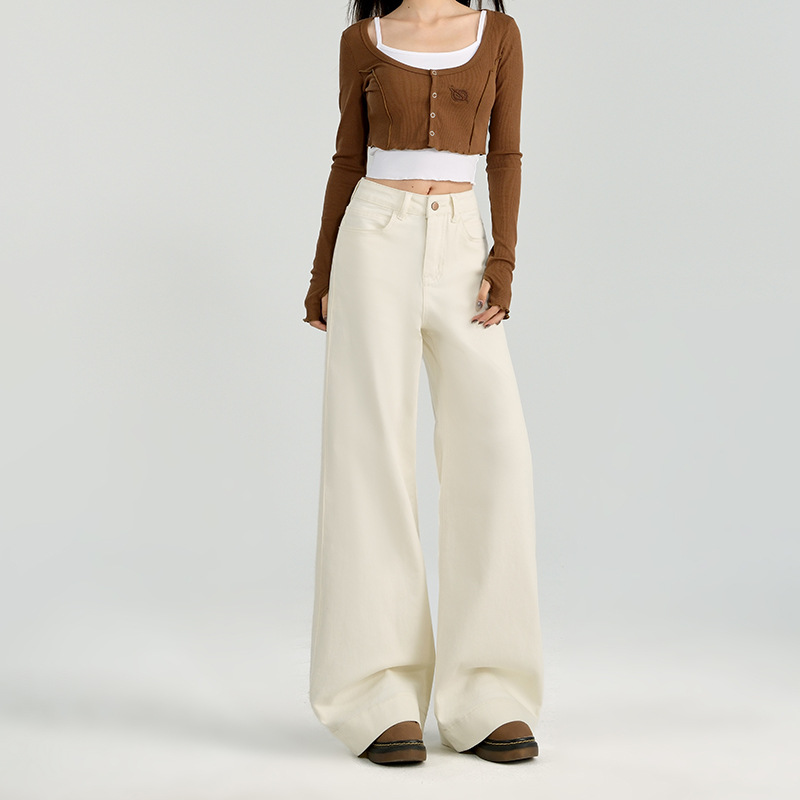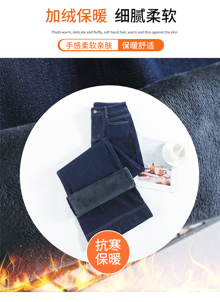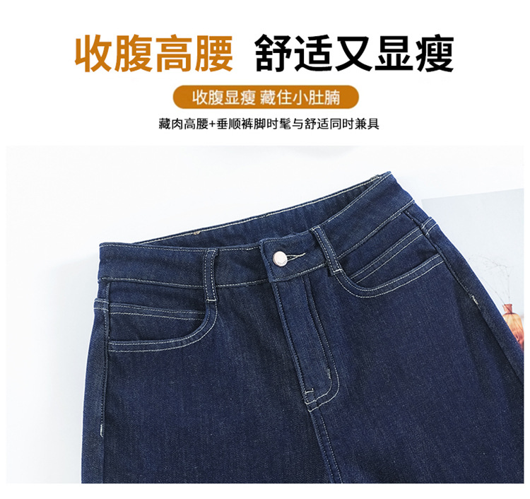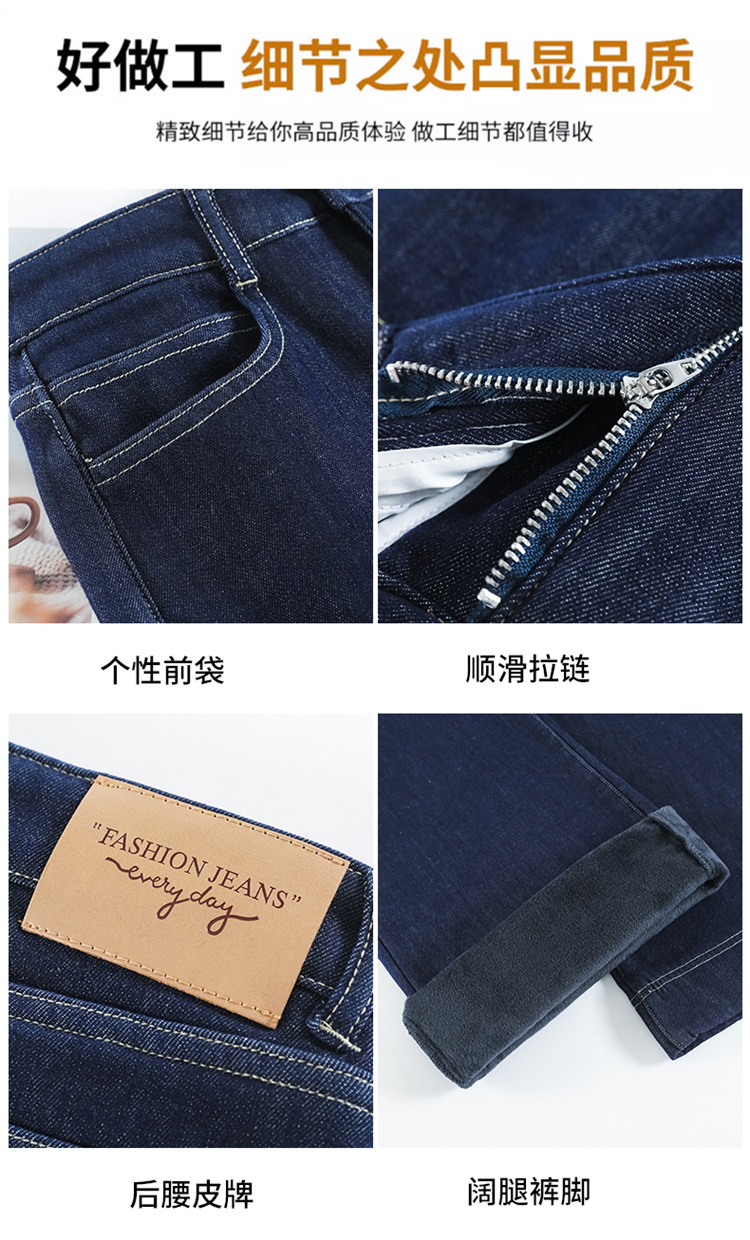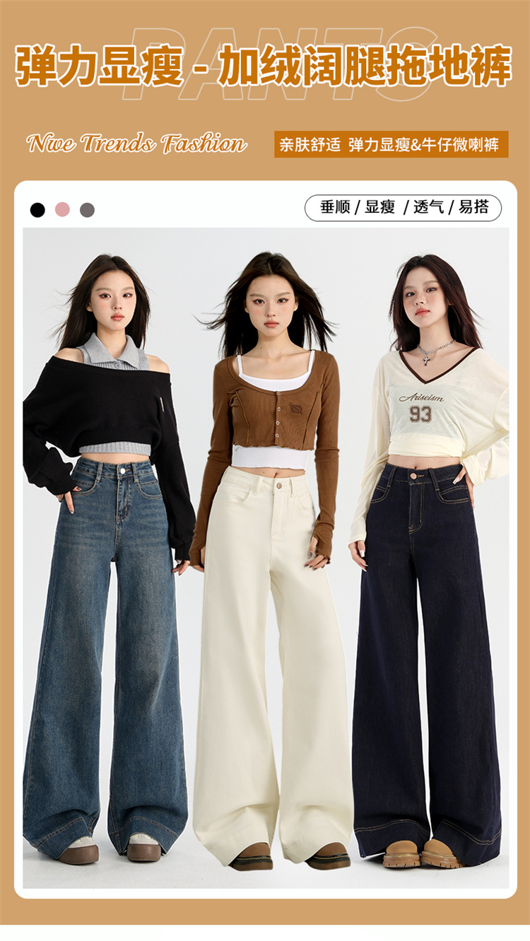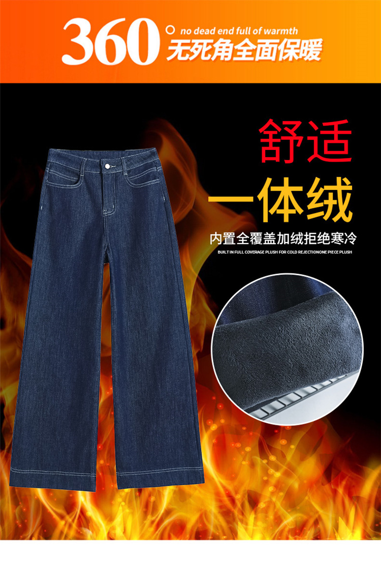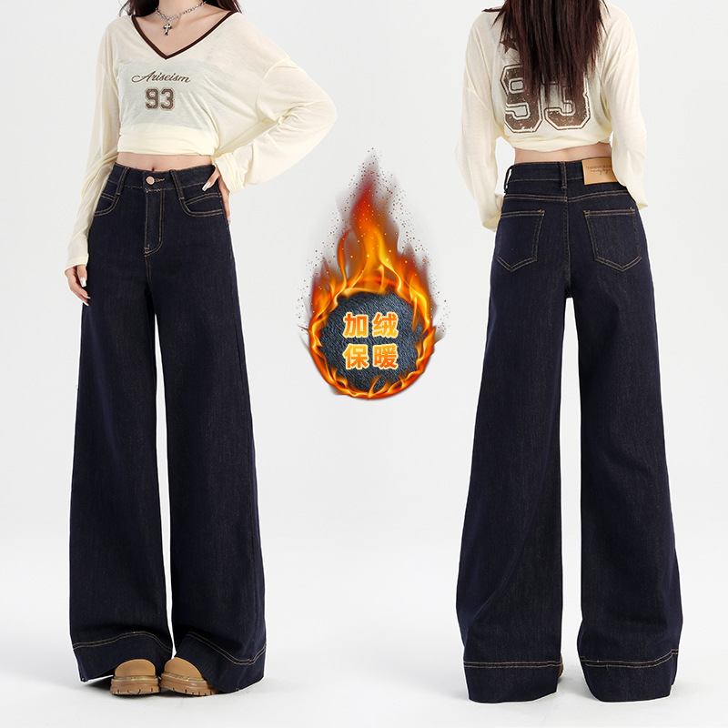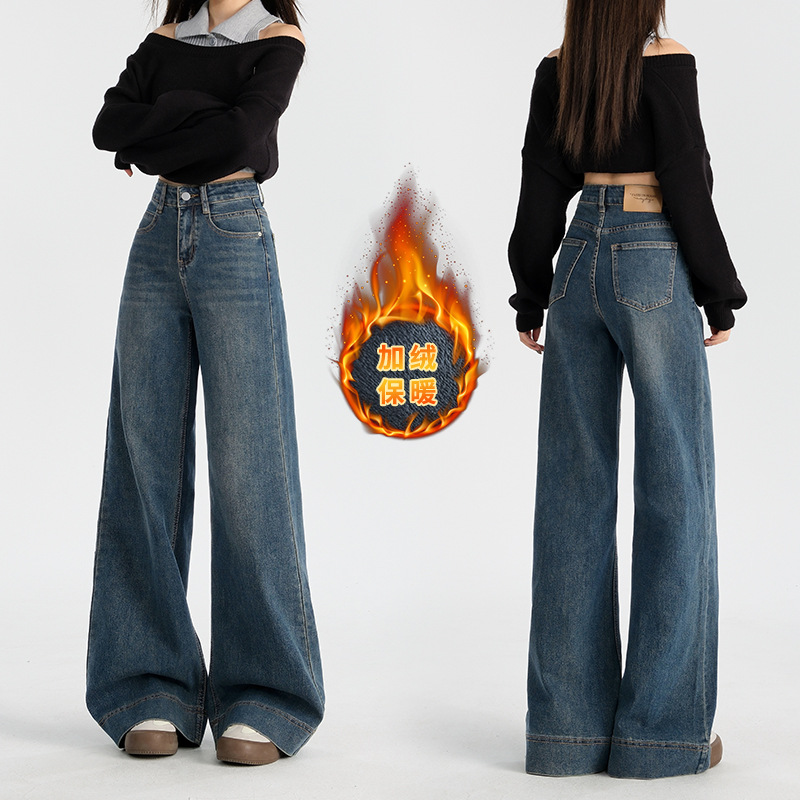 미국 타닌 블루 기모 청바지 여성의 가을과 겨울 새로운 스파이스 소녀 디자인 센스 스트레치 걸레 루즈 큰 플레어 바지스토어 가기