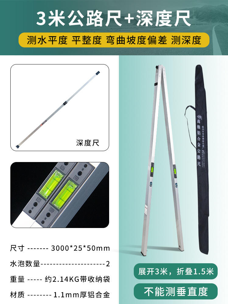 3 m 고속도로 통치자 3 m 통치자 알루미늄 합금 백킹 통치자 접이식 레벨 게이지 플러그 엔지니어링 고속도로 평탄도 탐지 통치자