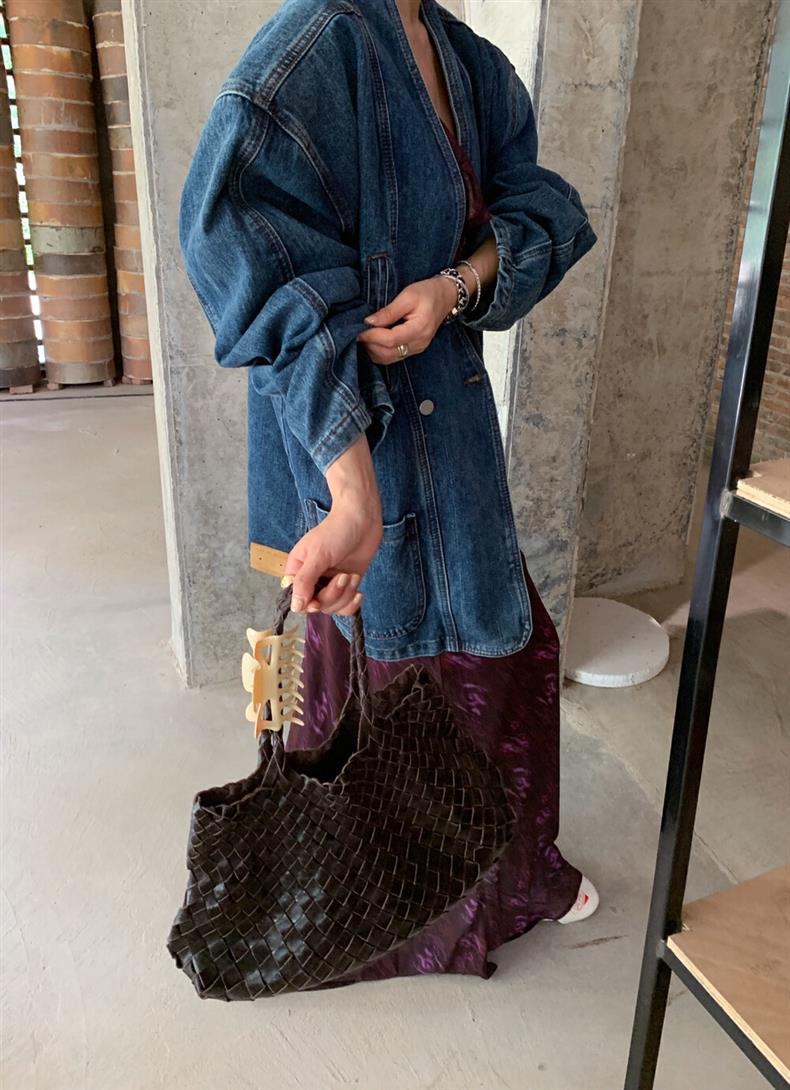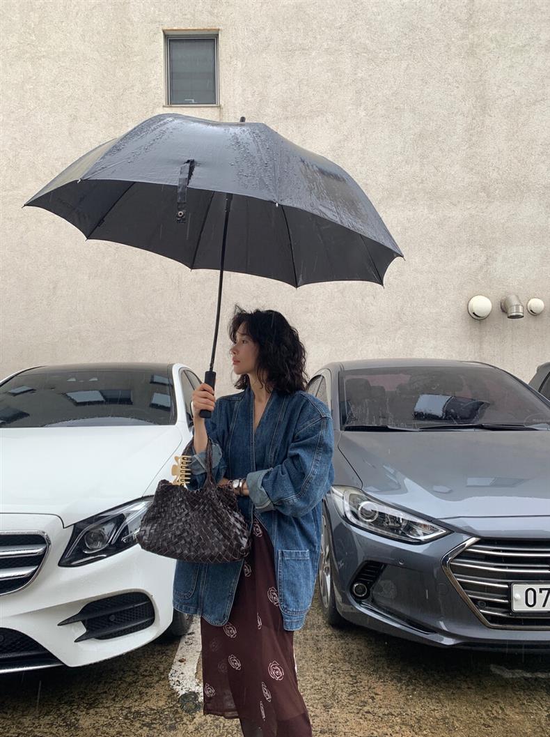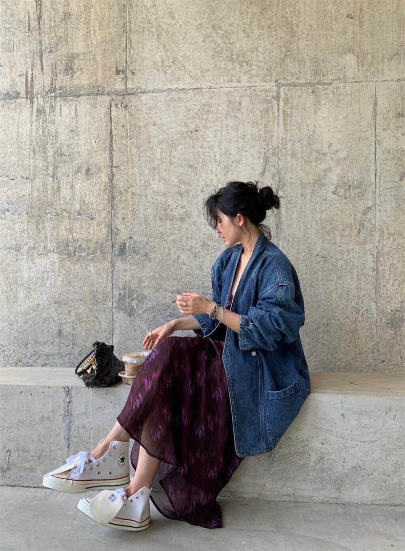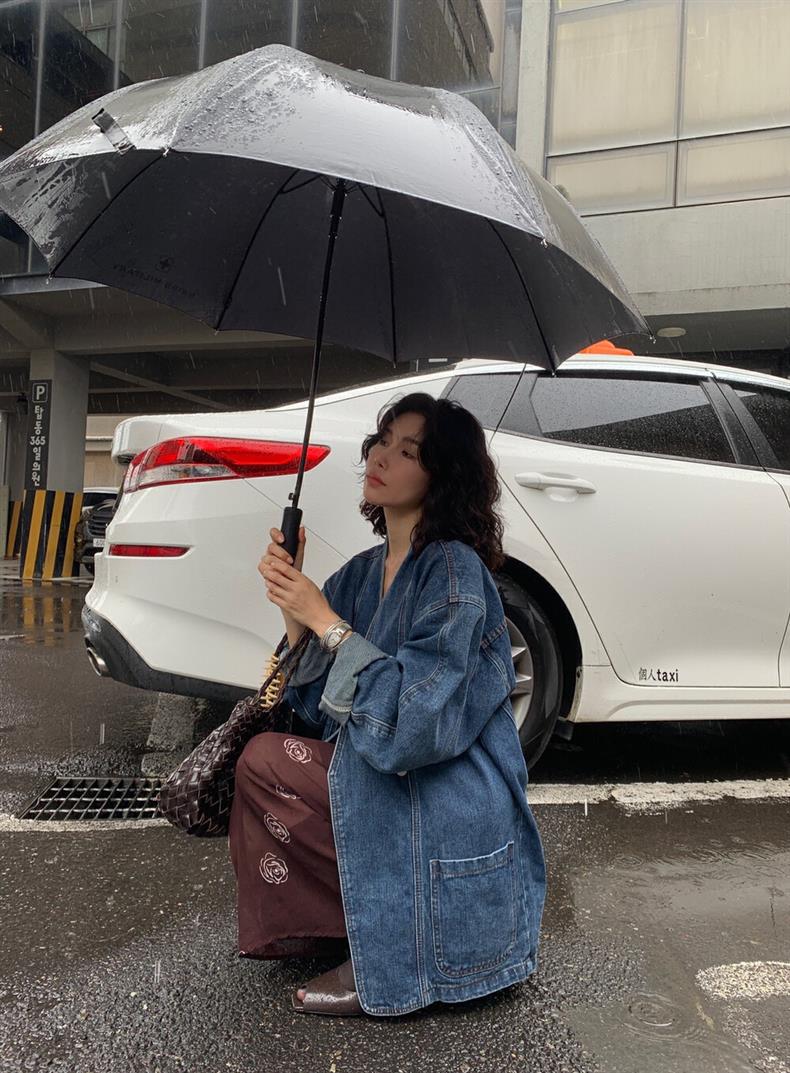 2025 년 이른 봄 새로운 레트로 스트리트 스타일의 느슨한 디자인 센스 더블 브레스트 패드 숄더 데님 코트 여성용 재킷 탑