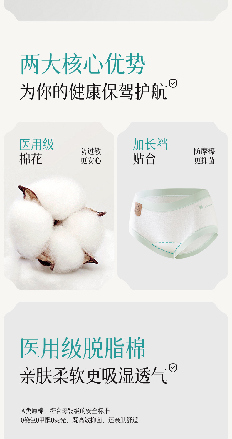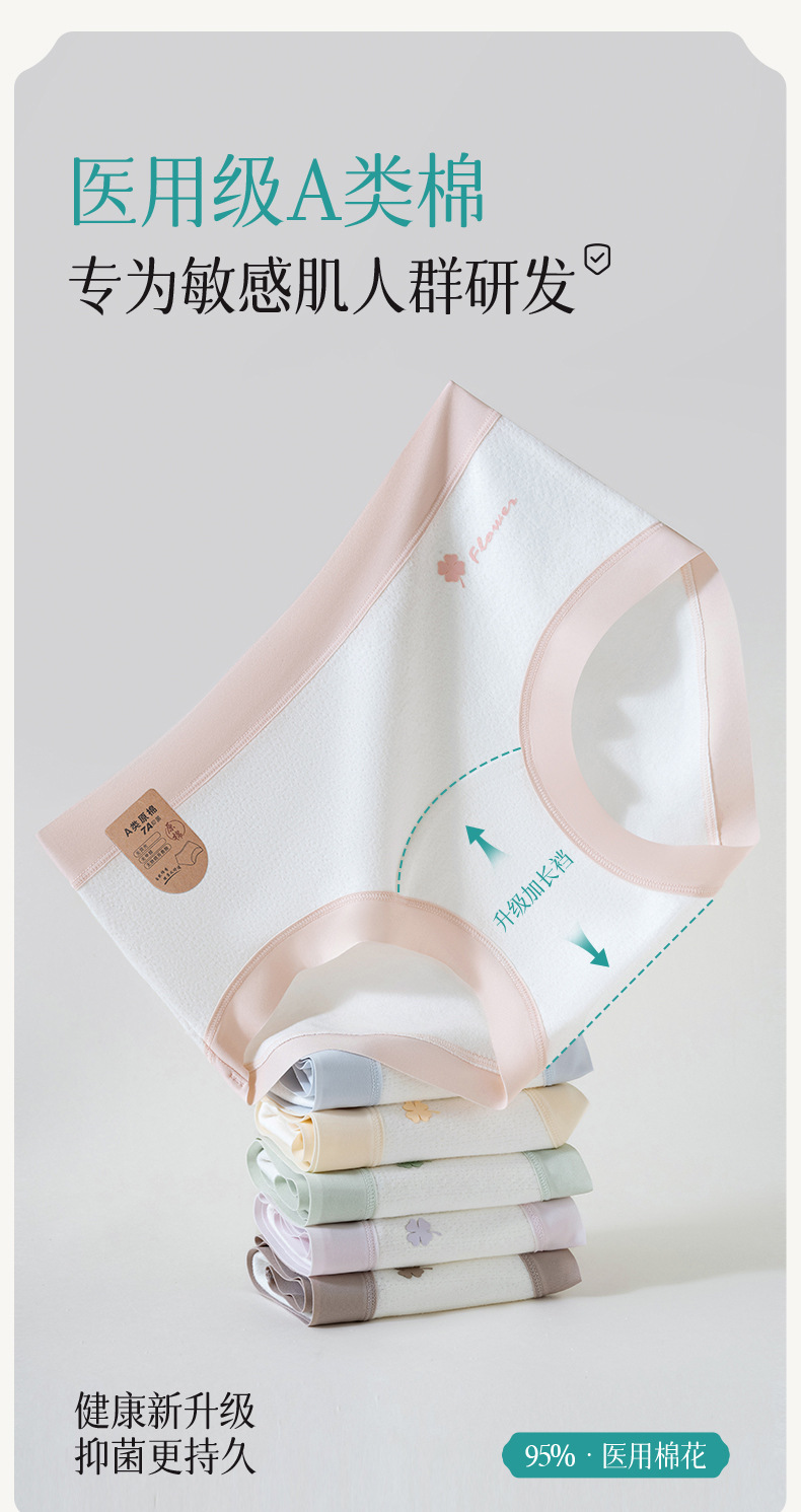 의료 면 7A 세균성 면 긴 Crotch 면 비 형광 통기성 높은 탄성 중간 허리 여성 브리프스토어 가기